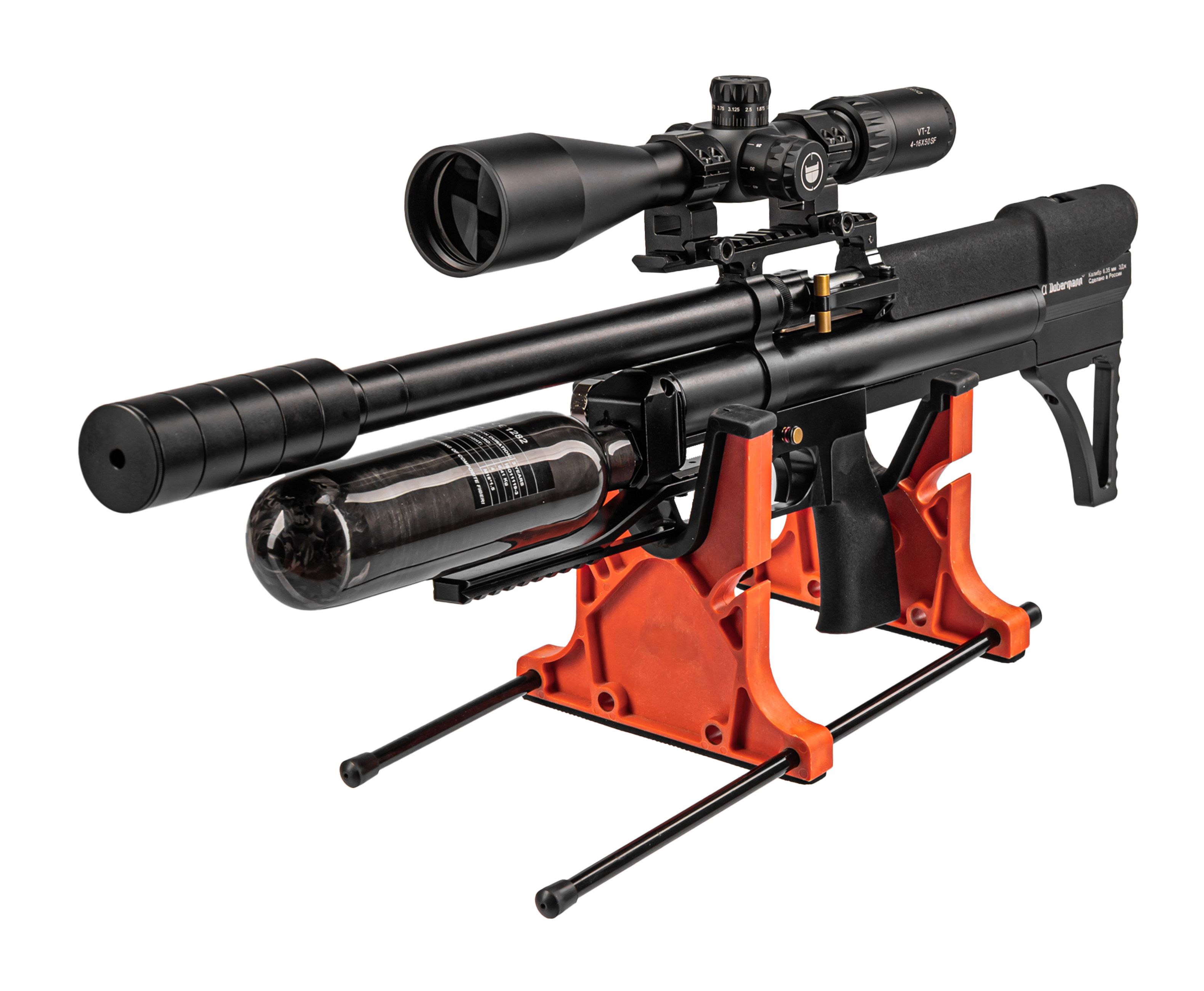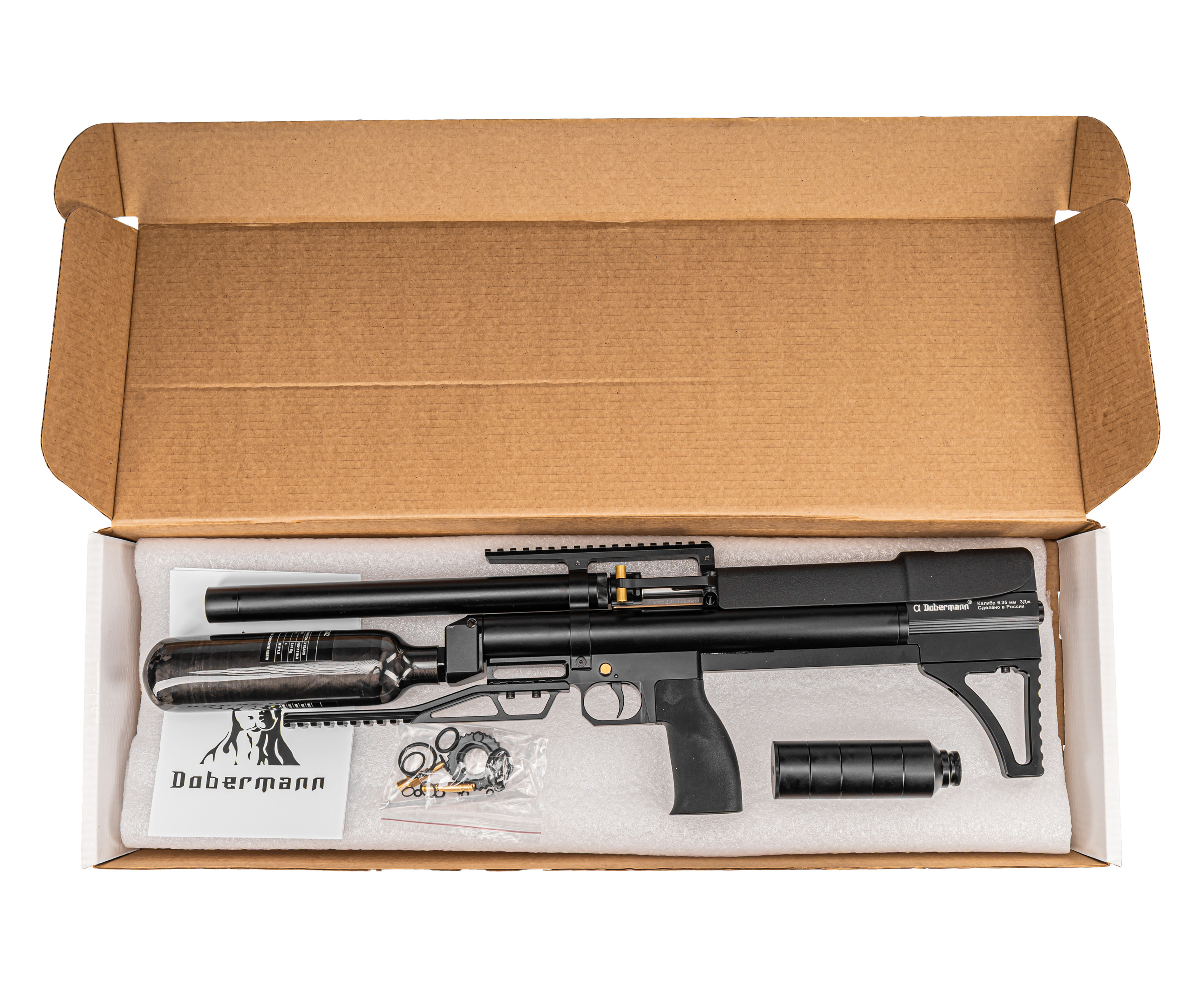 Пневматическая винтовка Dobermann Alfa Bull-Pup 6.35 мм (600 мм, прямоток, под полнотел, модератор 44 мм, передний взвод)