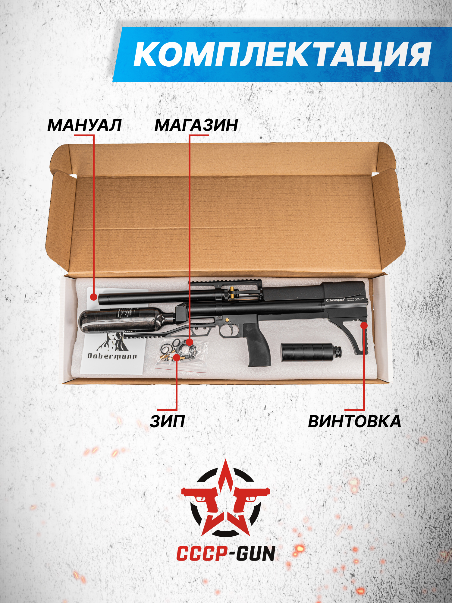 Пневматическая винтовка Dobermann Alfa Bull-Pup 5.5 мм (350 мм, полигональные нарезы, передний взвод)