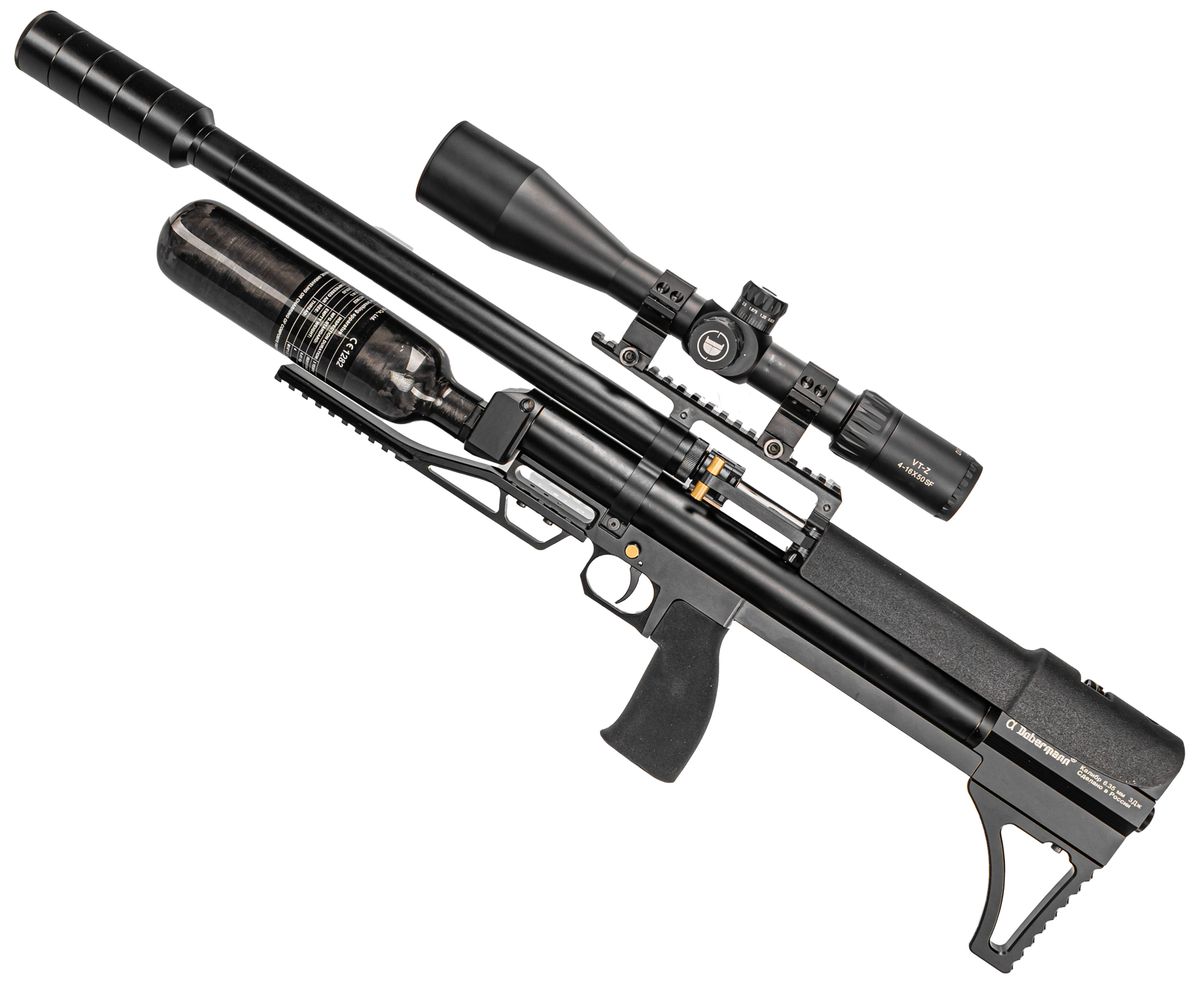 Пневматическая винтовка Dobermann Alfa Bull-Pup 6.35 мм (600 мм, прямоток, под полнотел, модератор 44 мм, передний взвод)