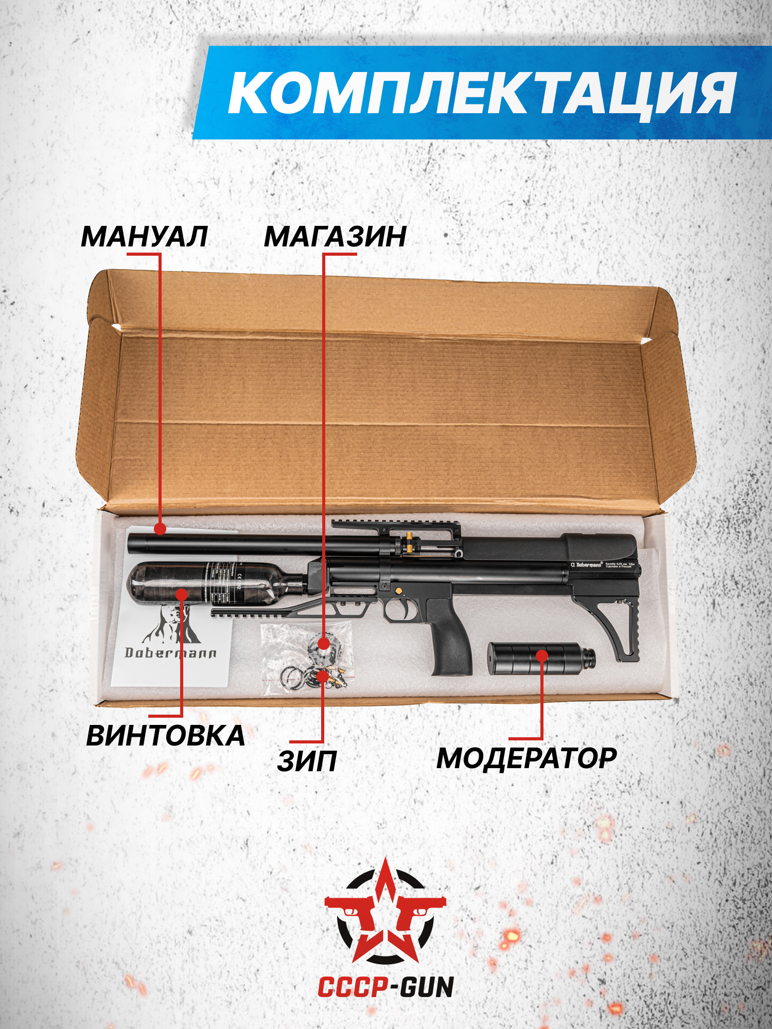 Пневматическая винтовка Dobermann Alfa Bull-Pup 6.35 мм (450 мм, стандартные нарезы, передний взвод)