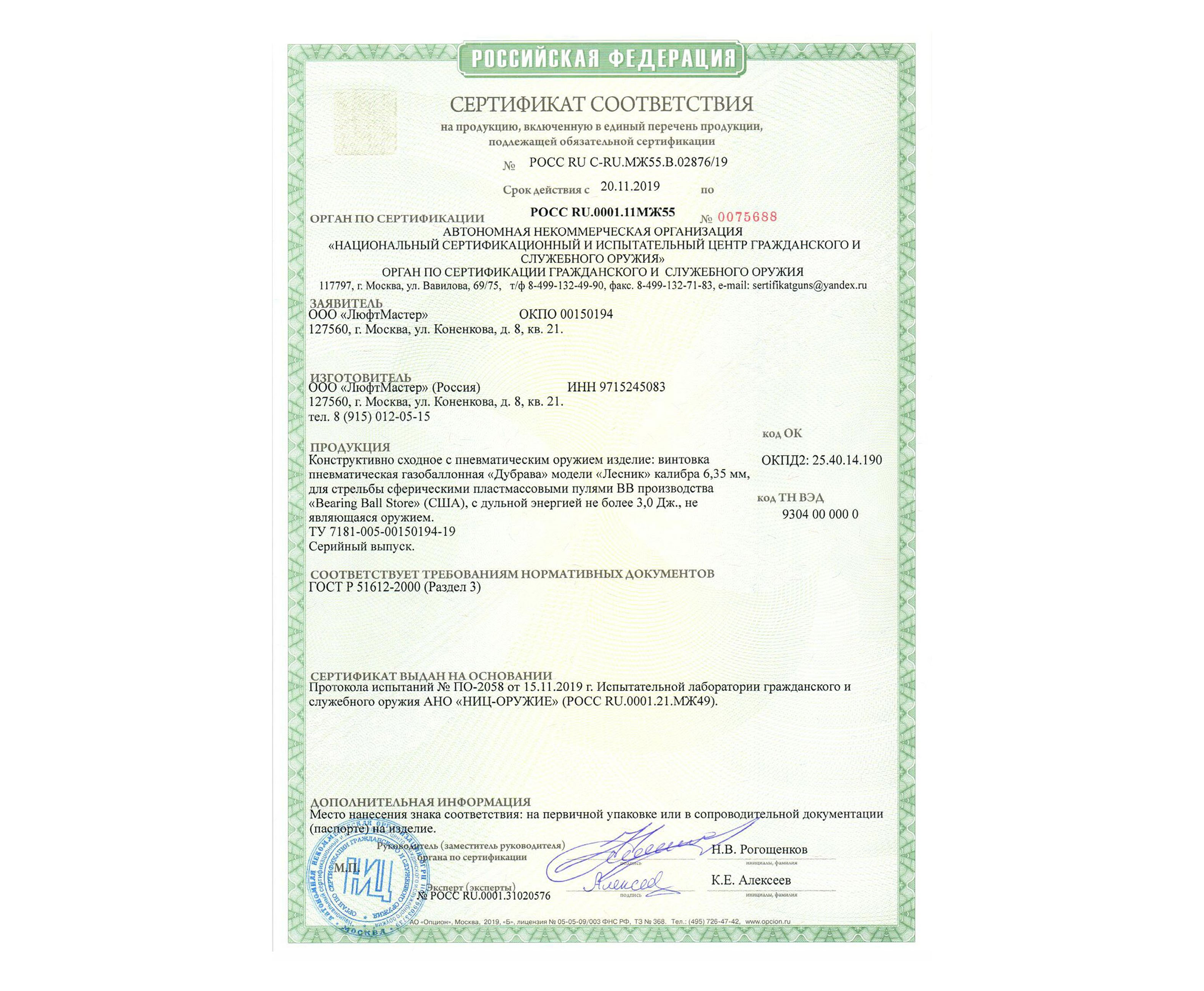 Пневматическая винтовка Дубрава Лесник выполнена с мощностью, не выходящей за рамки показателя в 3 Джоуля. Модель приобретается и используется без нужды в оформлении лицензии. После конструктивных модификаций, изделие способно разгонять боеприпас до скорости в 290 метров в секунду, ее хватит для результативной стрельбы по целям на дальних дистанциях.