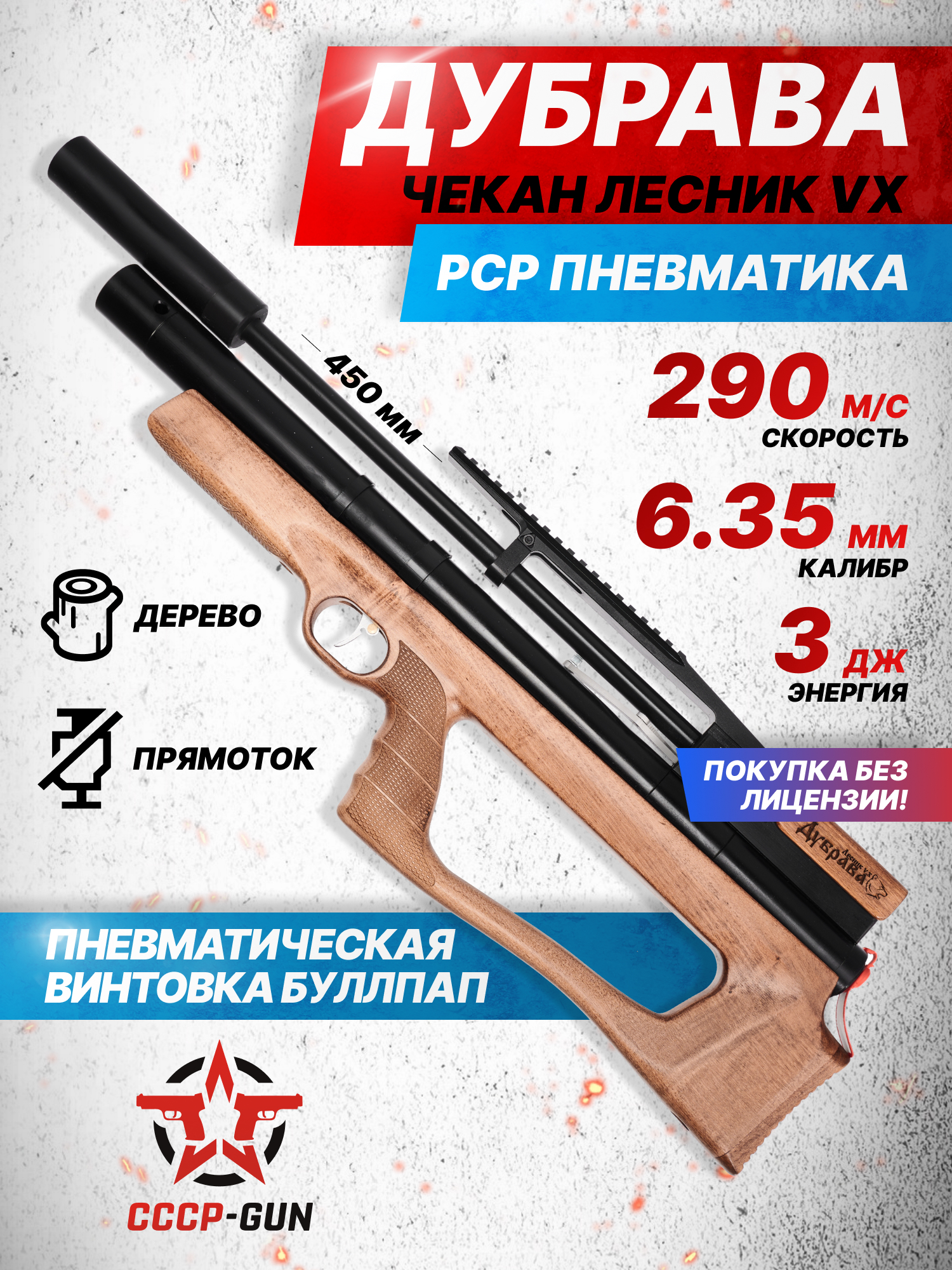 Российский производитель Дубрава известен среди стрелков благодаря созданию надежных и функциональных моделей пневматического оружия. Его экземпляры отличаются прочной конструкцией, вниманием к эргономике и высоким качеством обработки деталей, что делает их подходящими как для развлекательной стрельбы, так и для спортивных дисциплин. Одним из примеров такого подхода является обозреваемая винтовка Лесник Bull-Pup VX 6.35 мм, выполненная в укороченной компоновке.
