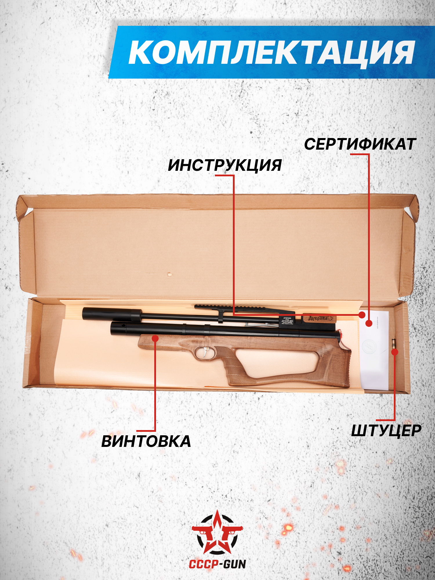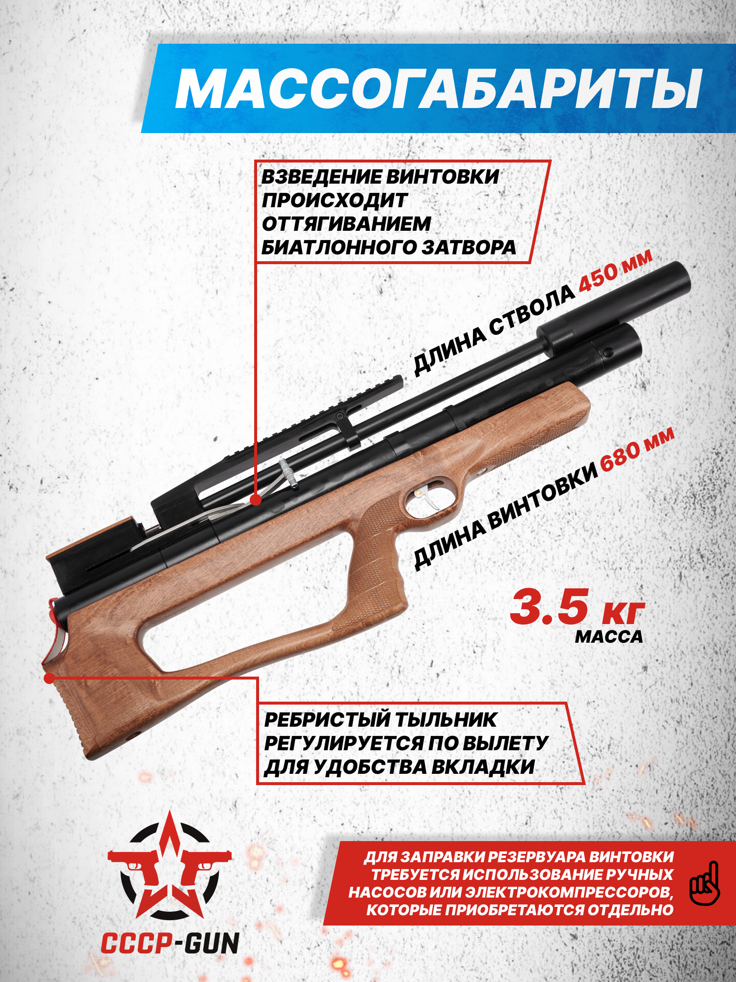Внимание! Данная модель поставляется в разрешенной мощности для свободного приобретения на территории Российской Федерации. При этом в модели имеется возможность увеличения мощности путем замены части деталей или настройки конструкции, однако не стоит забывать о Федеральном законе «Об оружии» № 150 - ФЗ. В случае необходимости, опираясь на данный закон и руководствуясь им, возможно, потребуется получить разрешение от ЛЛР ГУ МВД России после вмешательства в конструкцию.