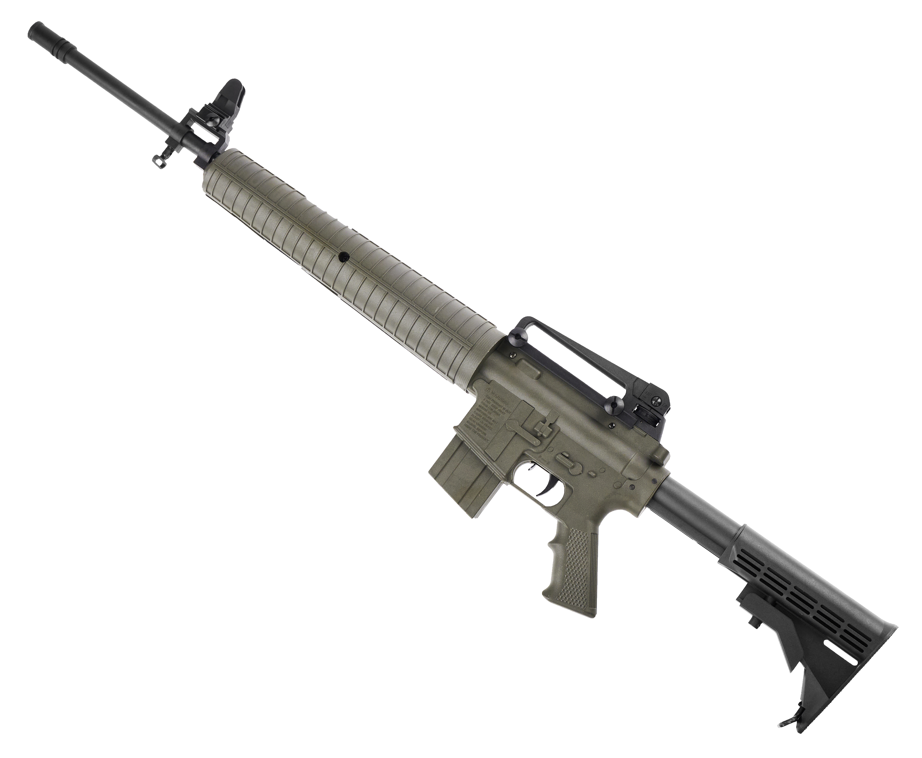 Внешние элементы отсылают обозреваемую пневматику к конструкции штурмовой винтовки M16, которая повлияла на развитие стрелкового оружия во всем мире. Ее боевой дебют состоялся во время войны во Вьетнаме, где изделие Юджина Стоунера показало себя точным и эргономичным. Преимуществами этой модели оружия стали малая масса и слабая отдача выстрела.