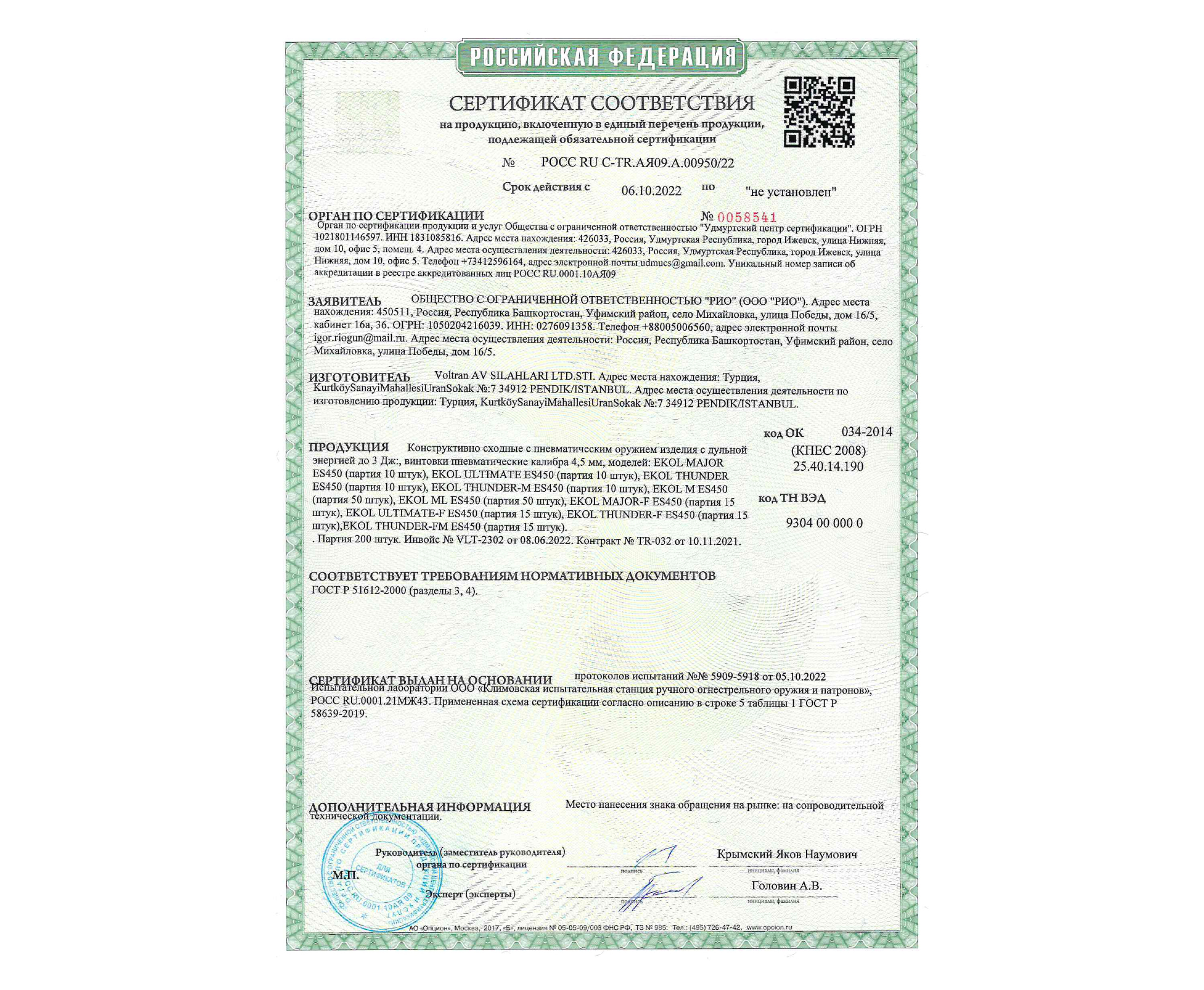 Внимание! Данная модель поставляется в разрешенной мощности для свободного приобретения на территории Российской Федерации. При этом в модели имеется возможность увеличения мощности путем замены части деталей или настройки конструкции, однако не стоит забывать о Федеральном законе «Об оружии» № 150 - ФЗ. В случае необходимости, опираясь на данный закон и руководствуясь им, возможно, потребуется получить разрешение от ЛЛР ГУ МВД России после вмешательства в конструкцию.