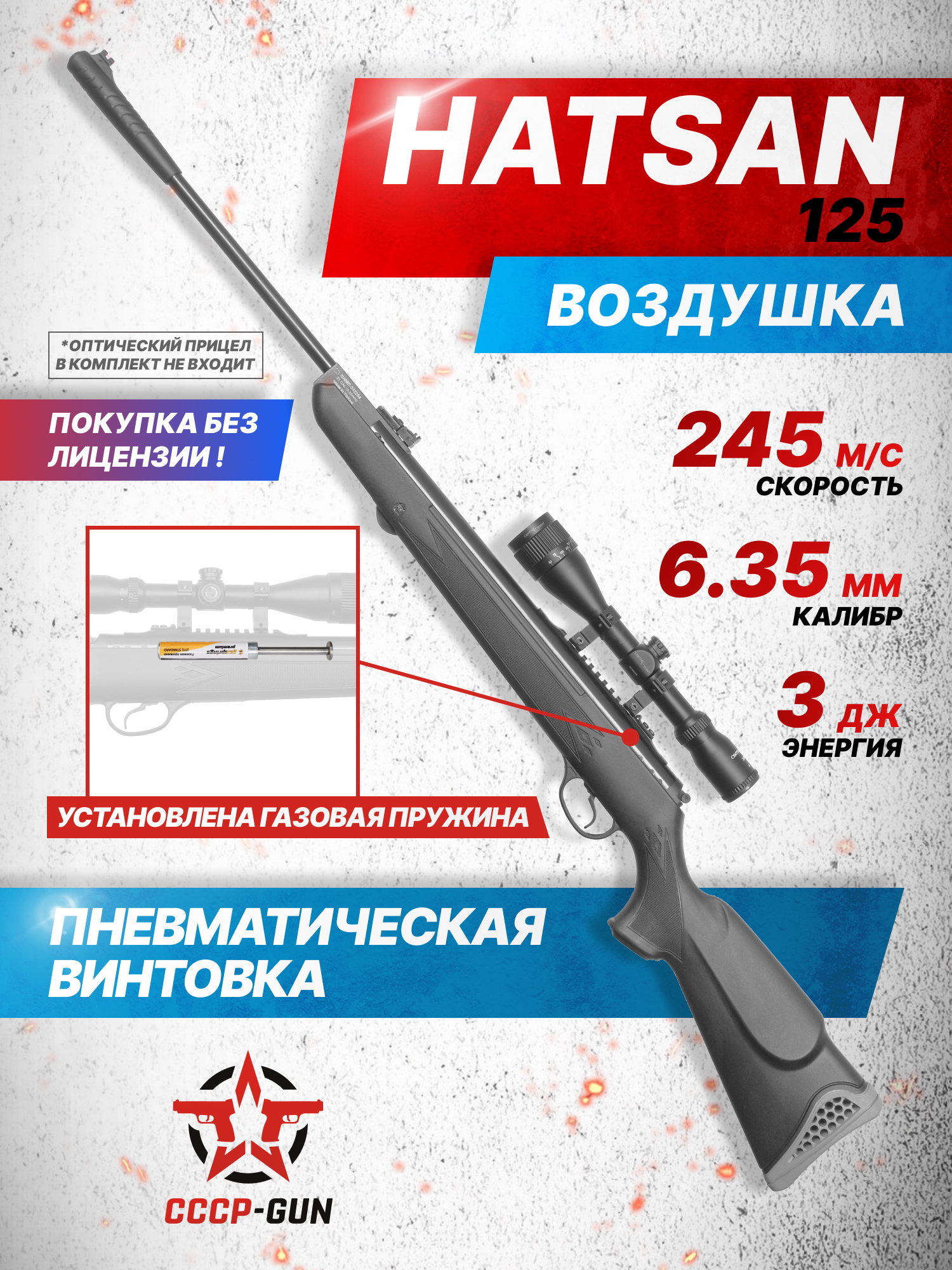К примерам относится представленная пневматическая винтовка Hatsan 125. В конкретном случае производитель решил оснастить отмеченную модель нарезным бланком под свинцовые пули «воланчик» калибра 6.35 миллиметра. Длина бланка осталась такой же - она составляет 500 миллиметров, материалом выступила высокопрочная сталь.