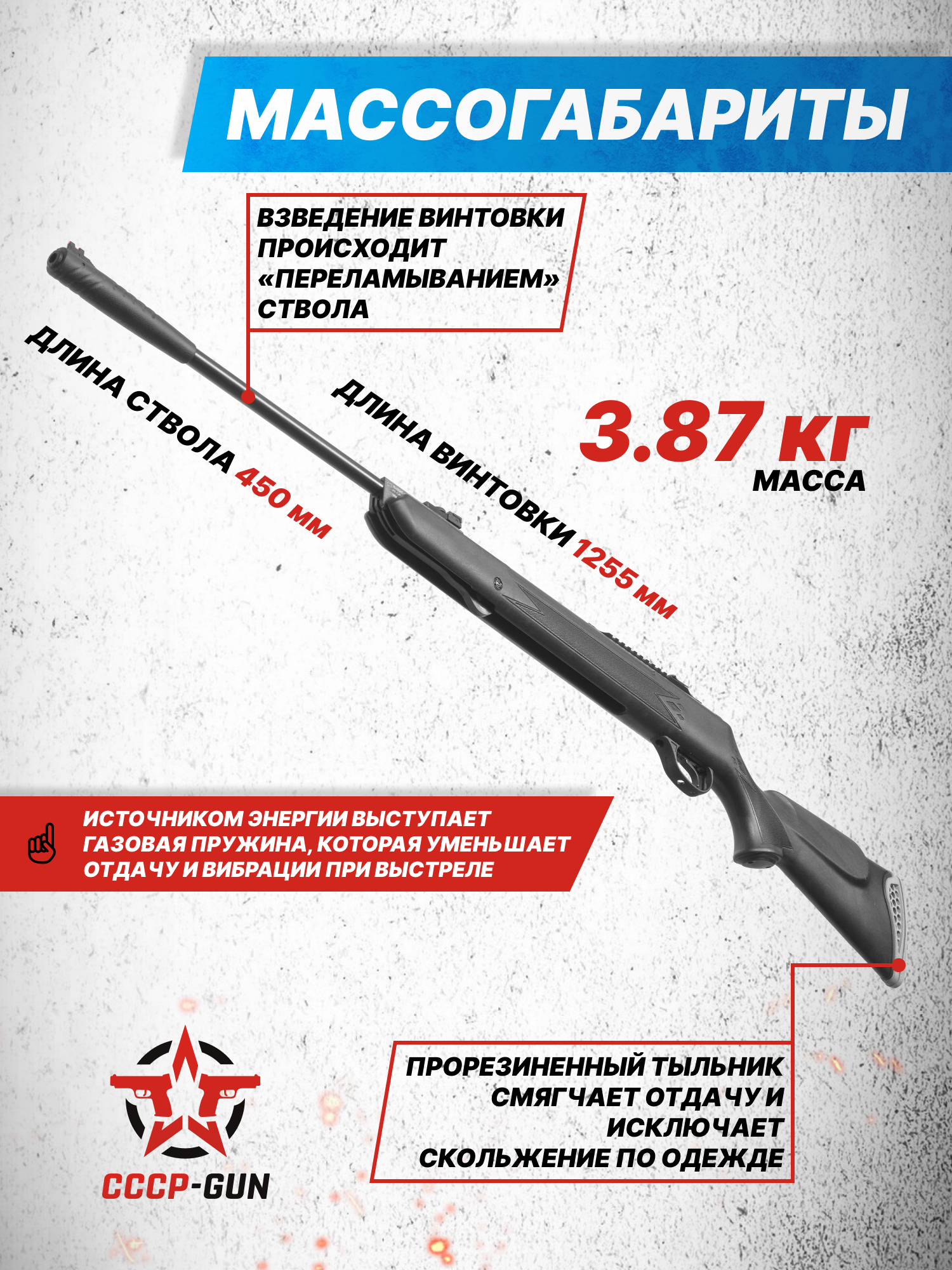 Метаемый элемент также размещается в казенной части вручную поштучно при взведении пружины - для выполнения указанной операции требуется «переломить» ствол вниз в основании за счет приложения физического усилия пользователем. Обозреваемая модификация позволяет обращаться к чувствительной оптике, поскольку ударные воздействия минимизированы, чему поспособствовала предварительно установленная газовая пружина вместо стандартной витой.
