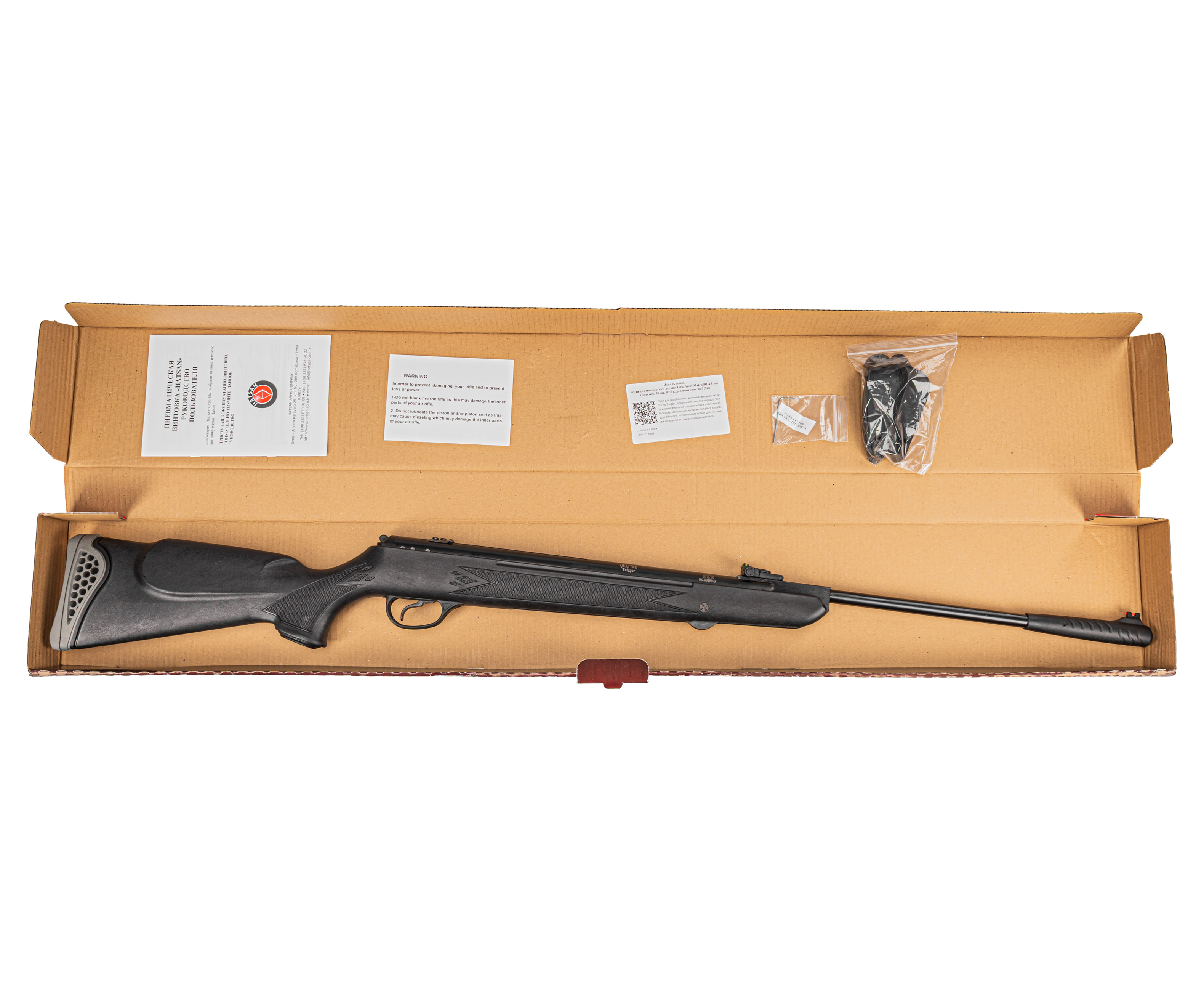 Hatsan 125 E 4.5 относится к классической пневматике с пружинно-поршневым методом работы и, по оценкам владельцев модели, характеризуется большим ресурсом за счет прочных деталей механизма. В рассматриваемом изделии используется технология системы Quattro Trigger, которая не только помогает точнее регулировать спуск, но и гарантирует более безопасную эксплуатацию пневматики.
