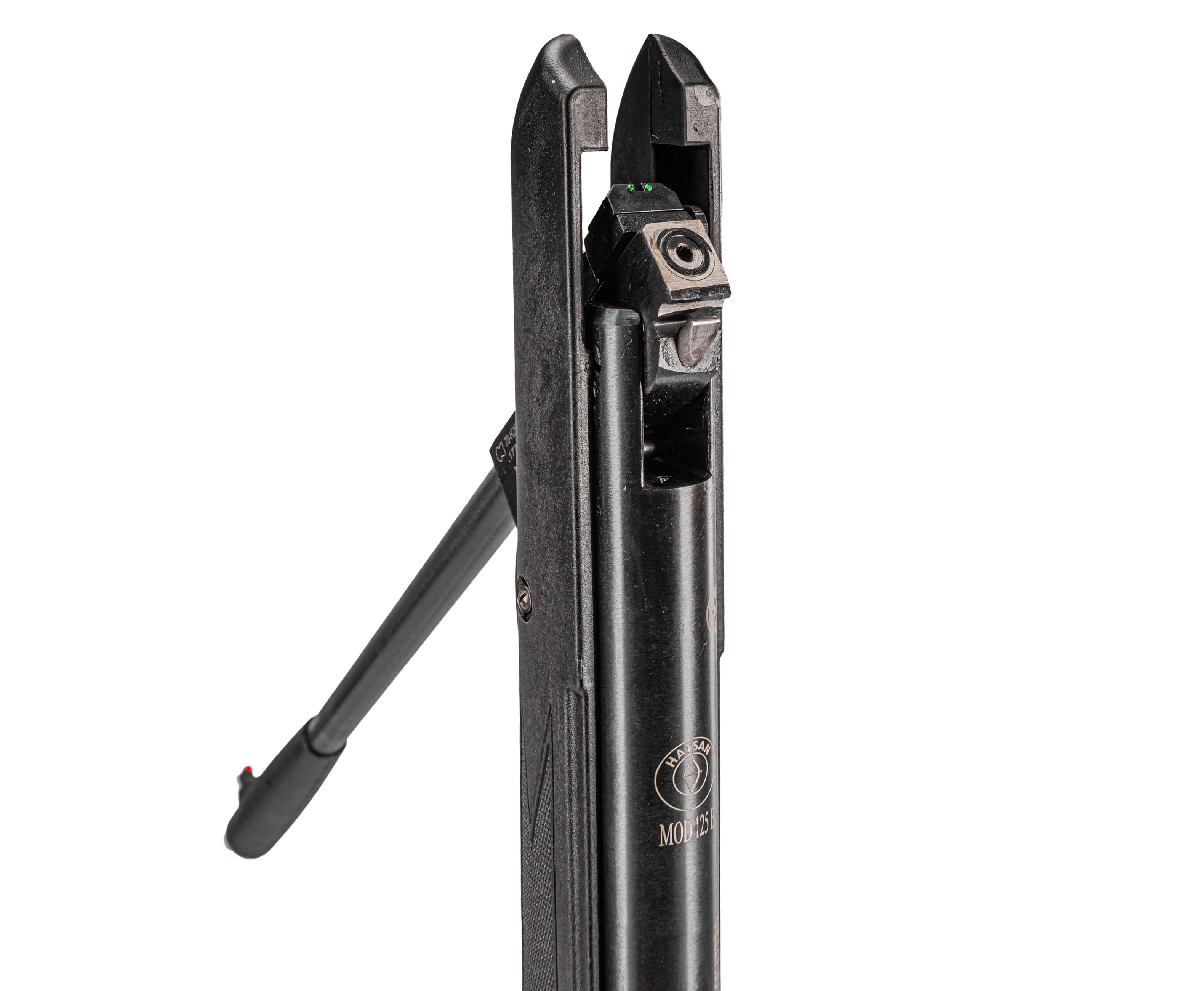 Перед выстрелом Хатсан 125 Е взводится путем переламывания ствола, что заставляет сжиматься витую пружину, которая, после нажатия на спусковой крючок, выталкивает поршень для создания высокого давления в камере. Появившаяся энергия заставляет снаряд разгоняться по 500-миллиметровому нарезному бланку, закручивающему пулю для того, чтобы задать ей предсказуемую траекторию. Непреднамеренного выстрела поможет избежать предохранитель автоматического вида, который инженеры установили на корпусе оружия.
