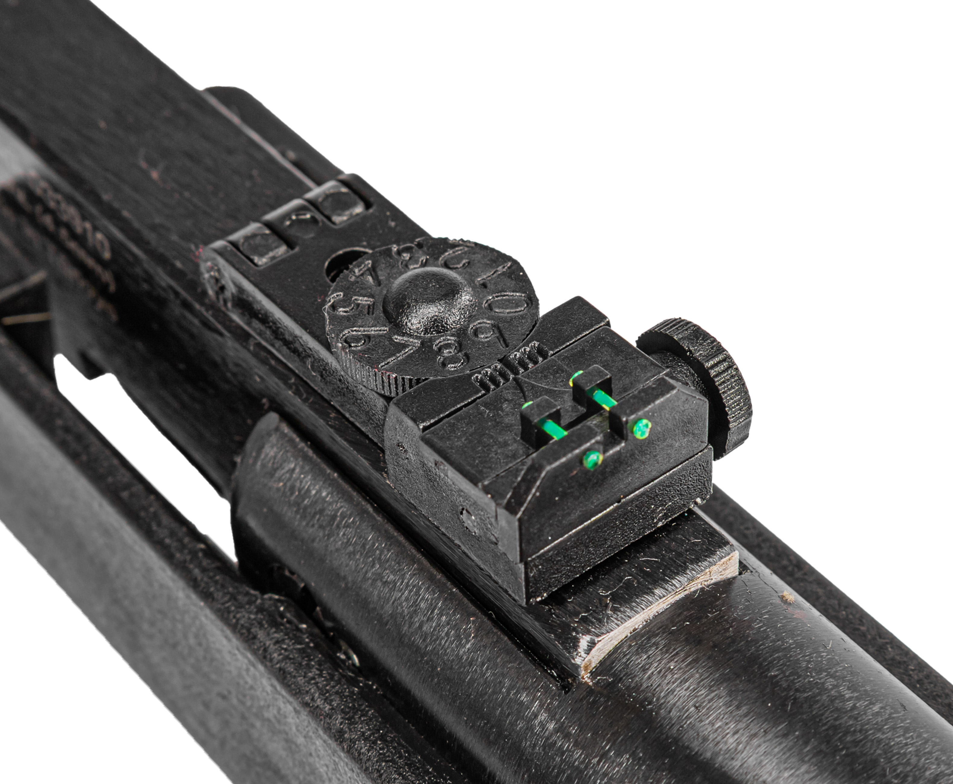 Штатно винтовка оснащена мушкой и целиком типа Truglo, благодаря чему работать с оружием получится в помещениях с недостаточной освещенностью. Также на пневматике спроектирована направляющая планка «Ласточкин хвост», которая требуется для монтажа прицельных приспособлений с шириной посадочного крепежа 11 мм. Таким образом стрелок сам решает какой прибор из вариантов оптики или коллиматоров установить на винтовку.