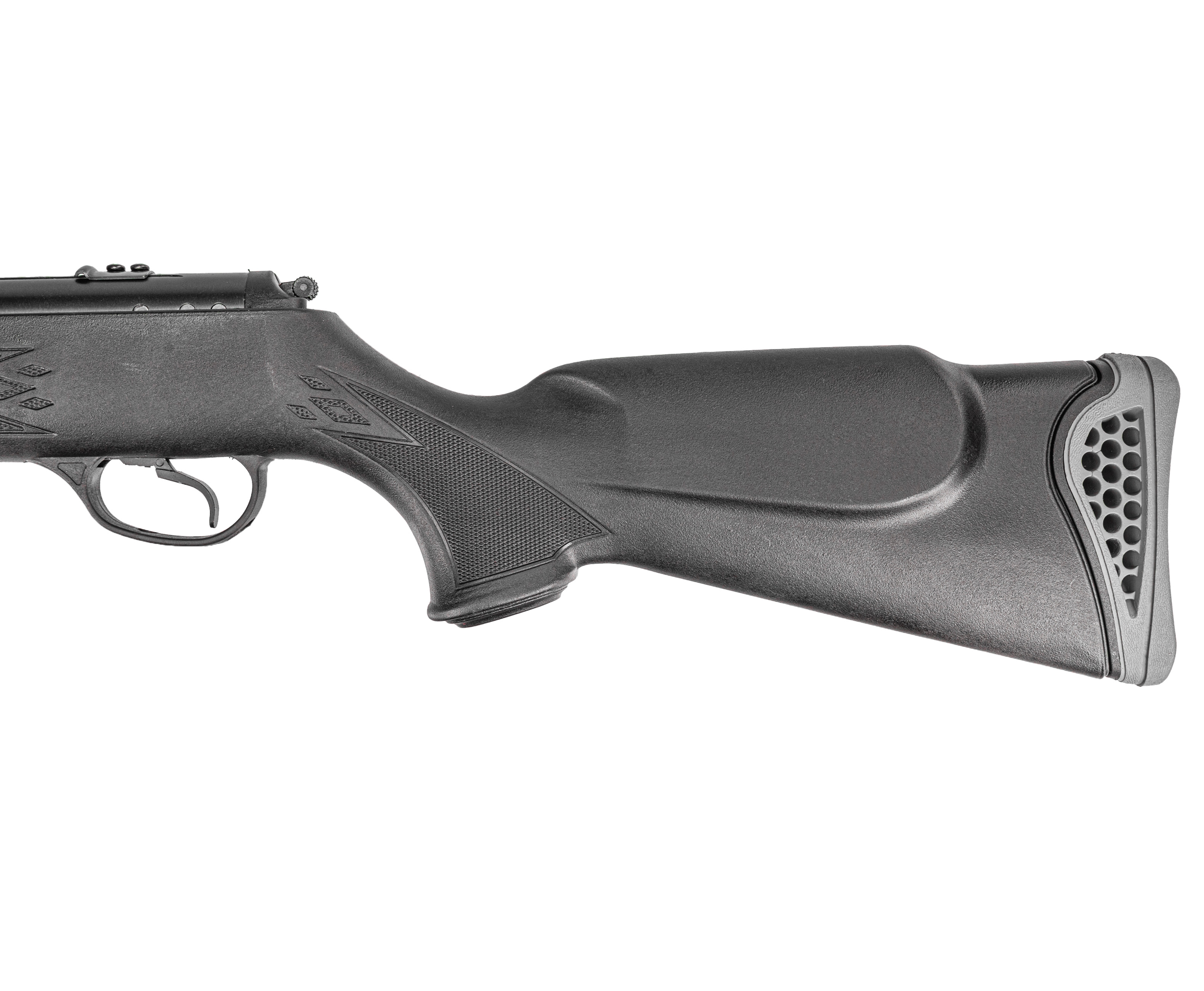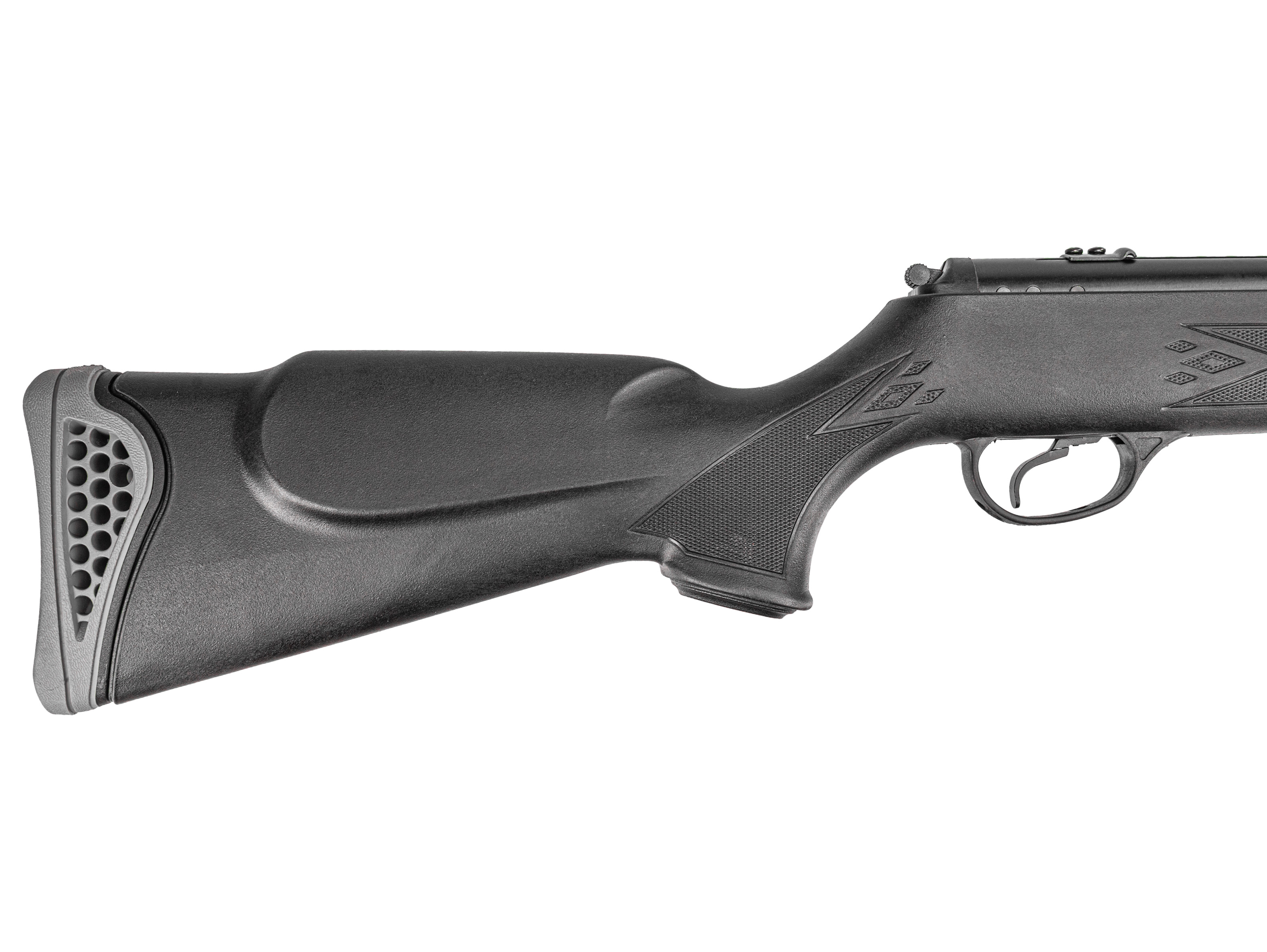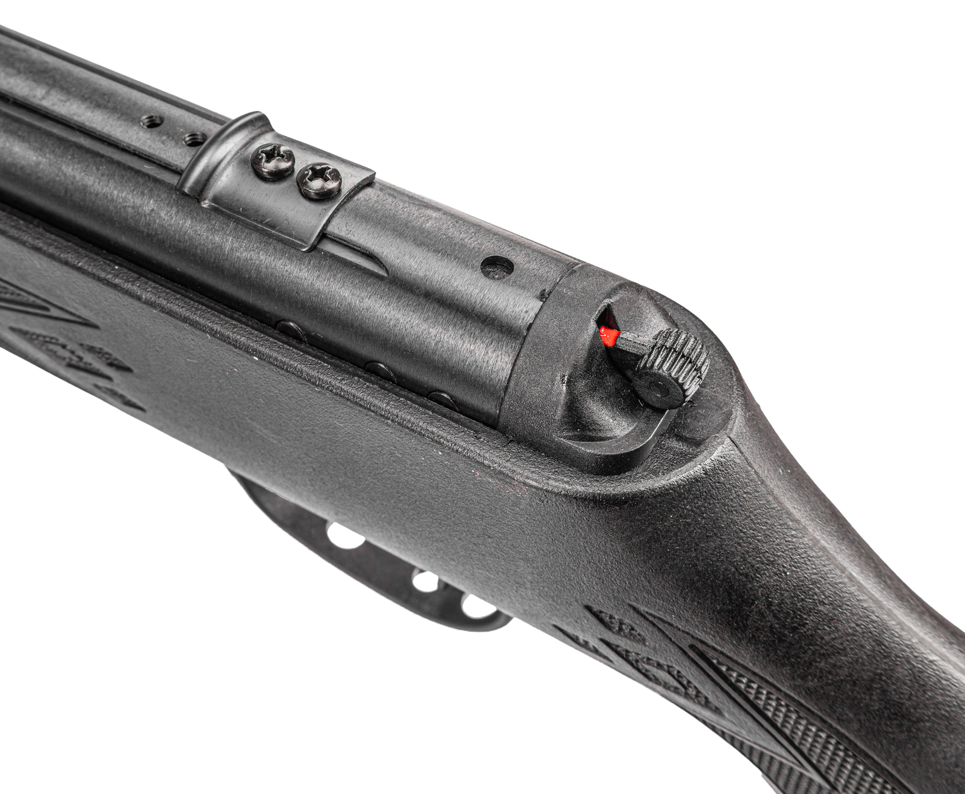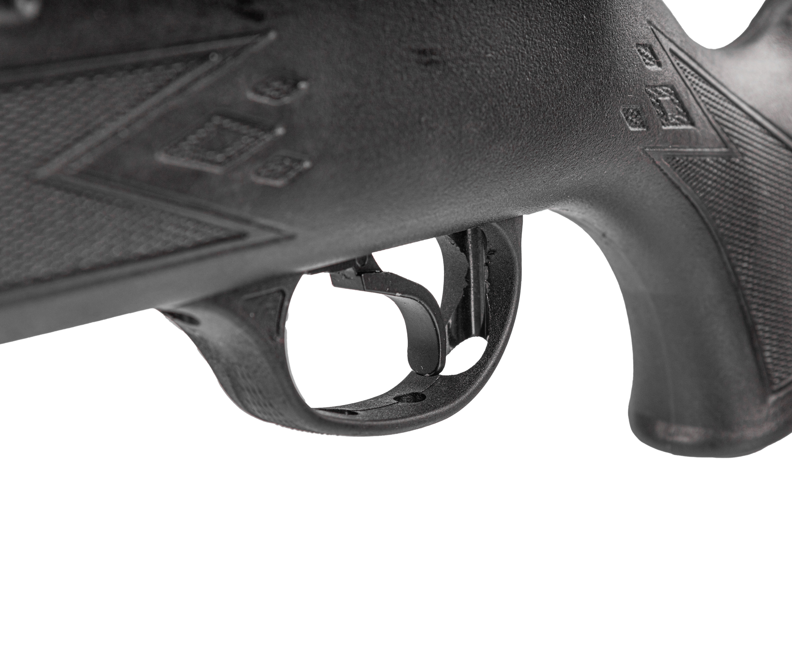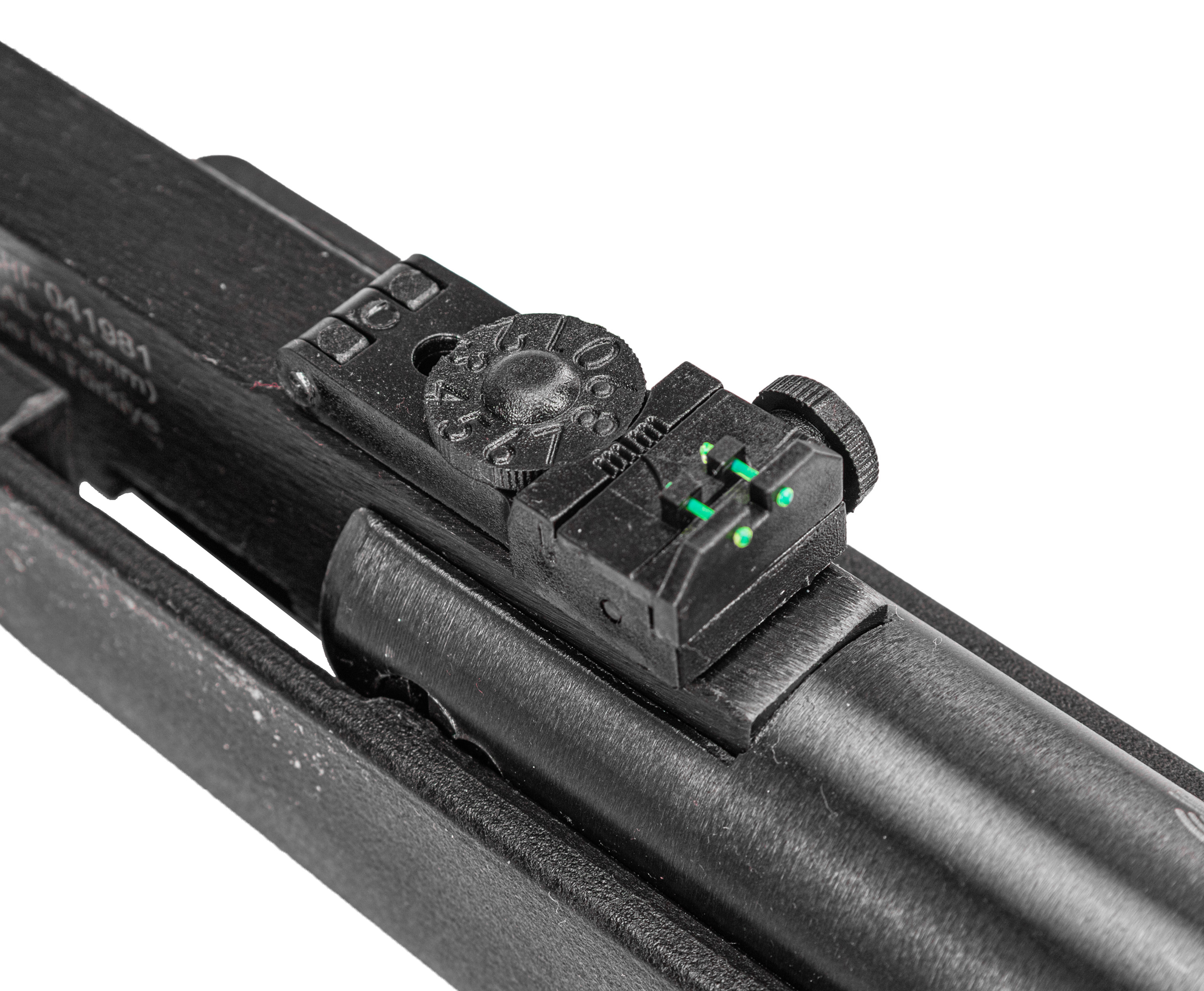 Таким образом, обозреваемая модель не требует предварительной подкачки или применения альтернативных энергоисточников для эксплуатации. При возвращении бланка в исходную позицию автоматически активируется предохранительный механизм, предотвращающий непреднамеренное срабатывание винтовки. Для деактивации блокировки необходимо отвести переключатель, расположенный на торцевой части ствольной коробки.