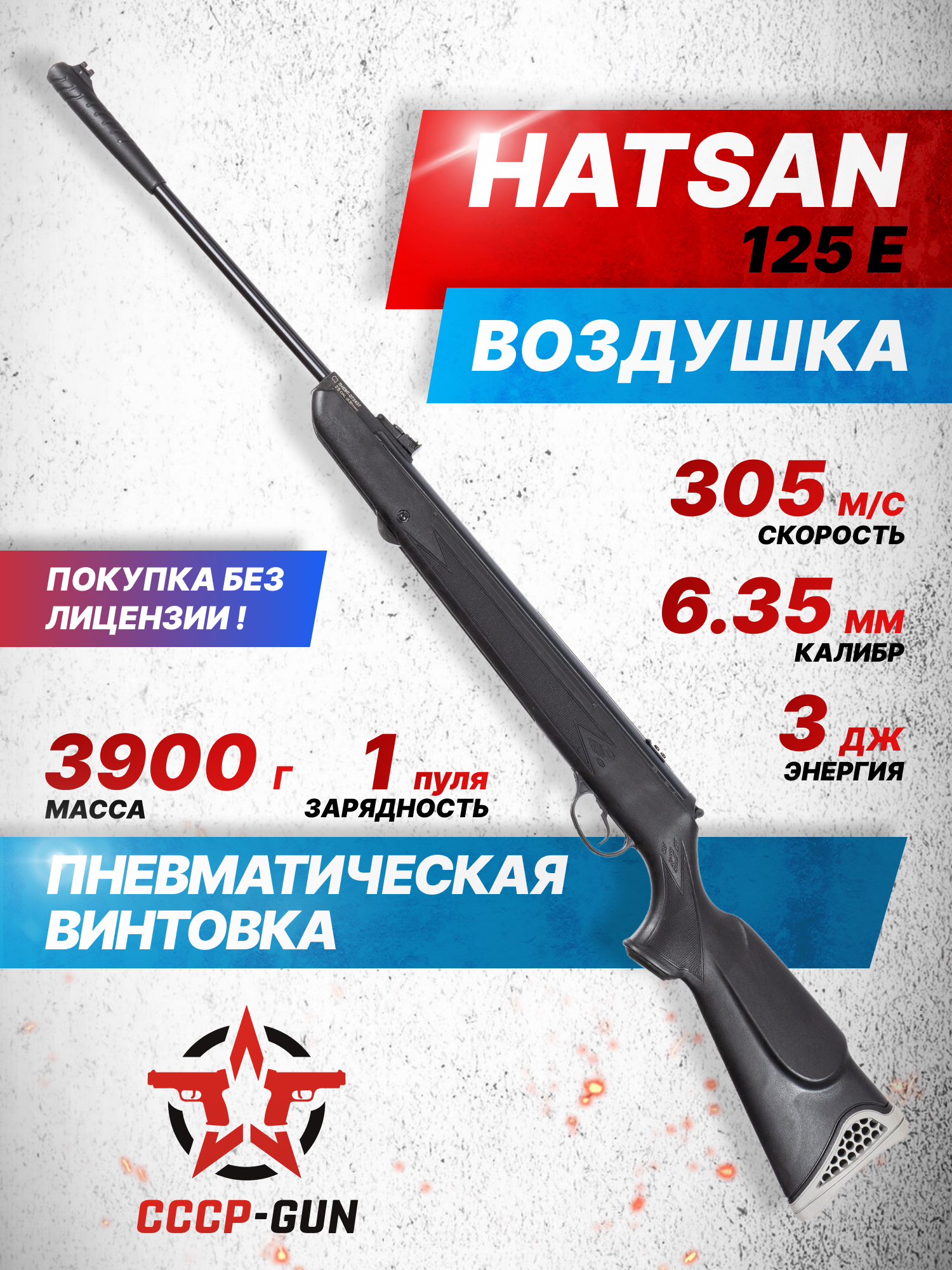Винтовка рассчитана на однозарядный режим с ручной подачей пули в казенник. В качестве боеприпаса используются свинцовые «воланчики». Ствол 6.35 мм на Хатсан 125 длиной 500 мм изготовлен с нарезами, что помогает стабилизировать вектор движения снаряда, придавая ему устойчивость в полете.