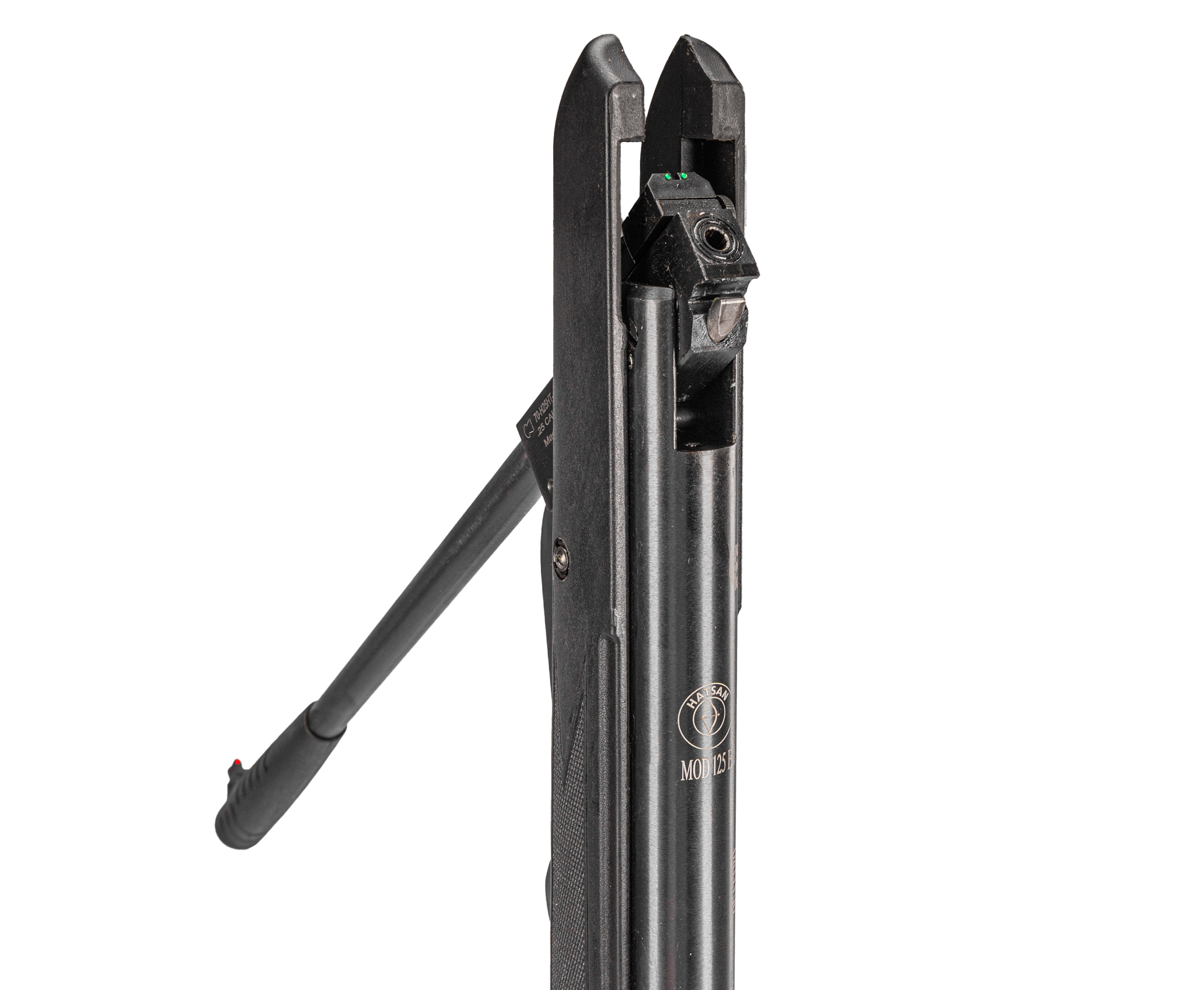 Одной из универсальных моделей в линейке остается пружинно-поршневой экземпляр 125 E 6.35 мм - высокоэнергетичный и сбалансированный вариант. Платформа построена на классической схеме ППП - взвод осуществляется за счет перелома ствола, в результате чего сжимается витая пружина. Это позволяет работать автономно без необходимости применения баллонов или резервуаров.