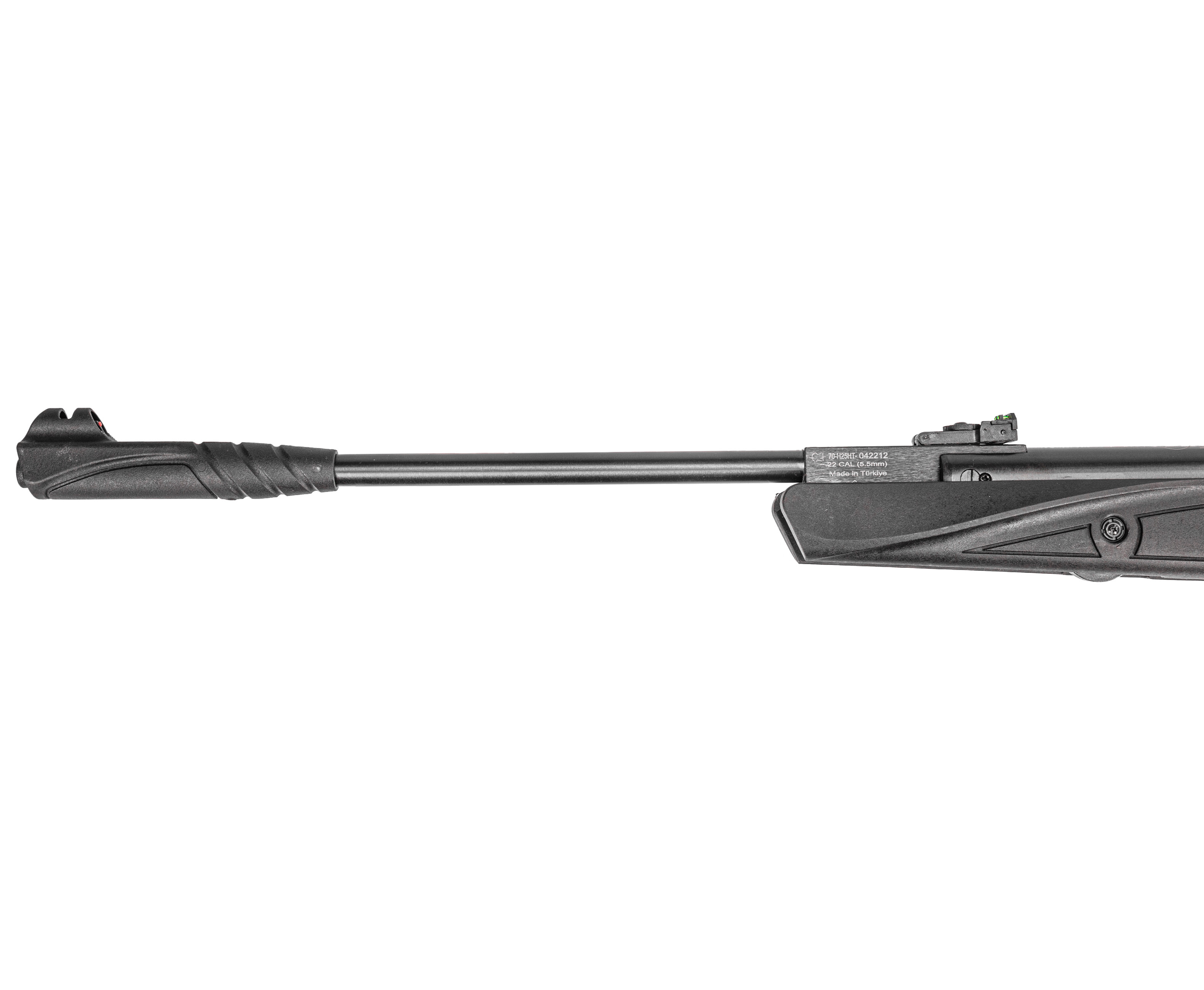 В качестве элементов боепитания используется свинцовой боеприпас калибра 5.5 мм, подаваемый вручную в ствол длиной 450 мм. Такой габарит создает нужный баланс между компактностью винтовки и эффективным использованием энергии поршня. Нарезы стабилизируют полет пули, формируя плотную кучность даже при работе на открытом воздухе.