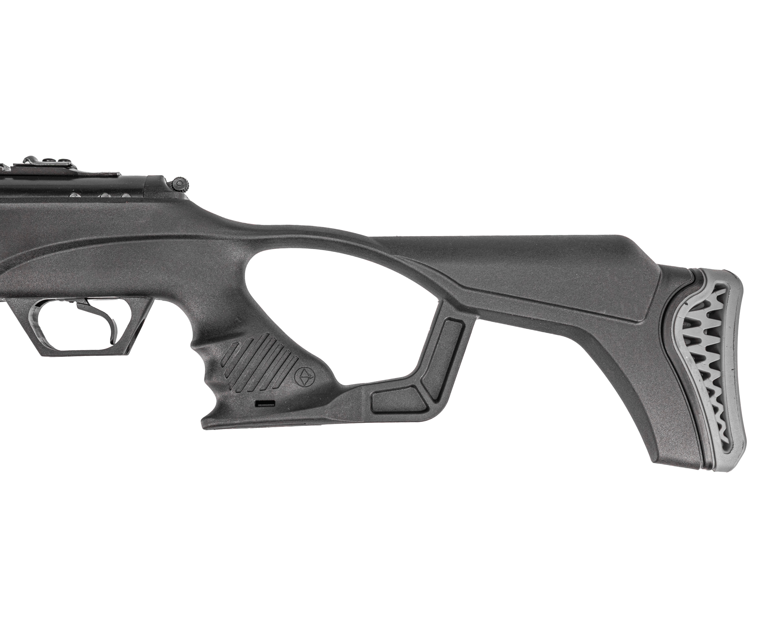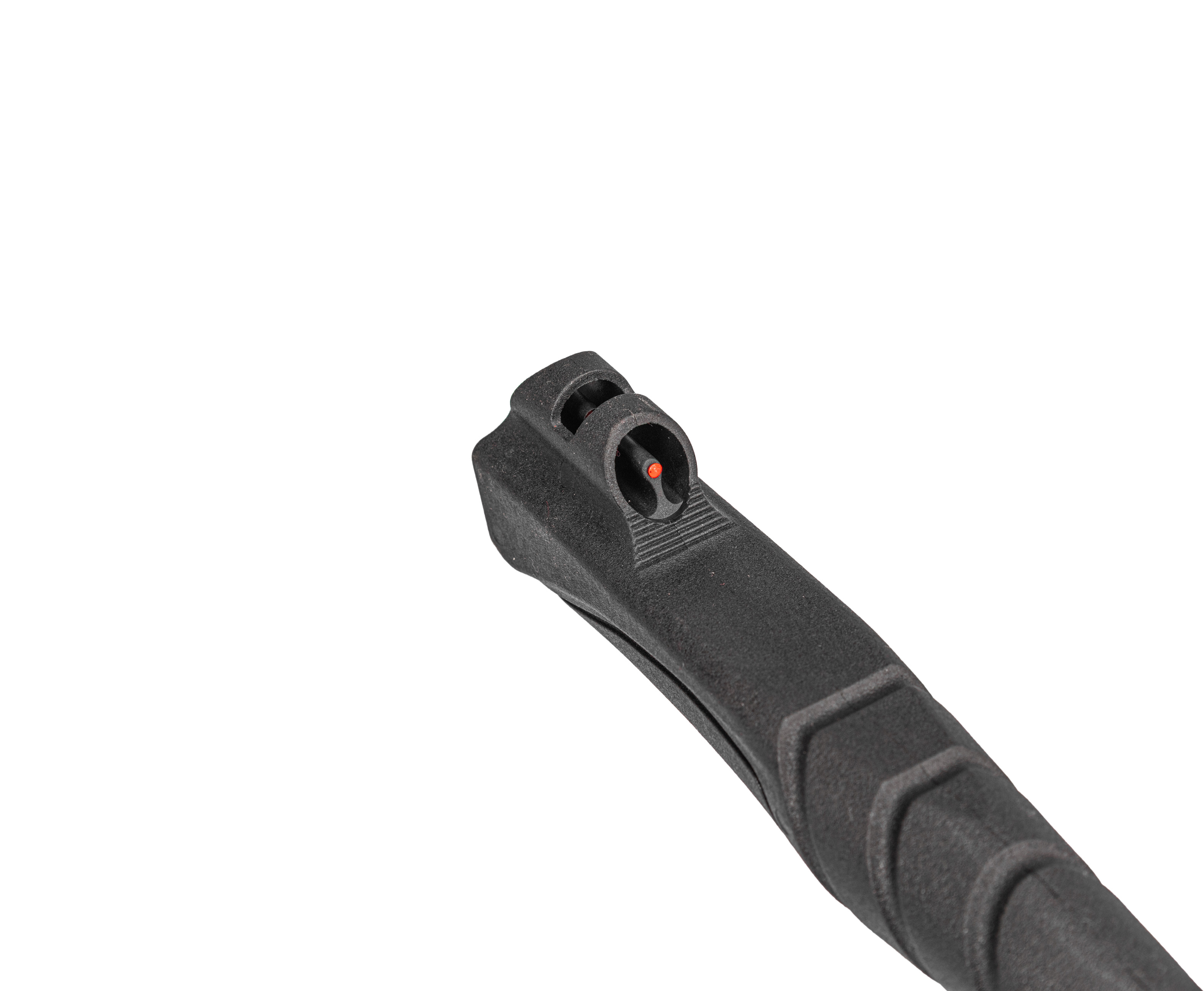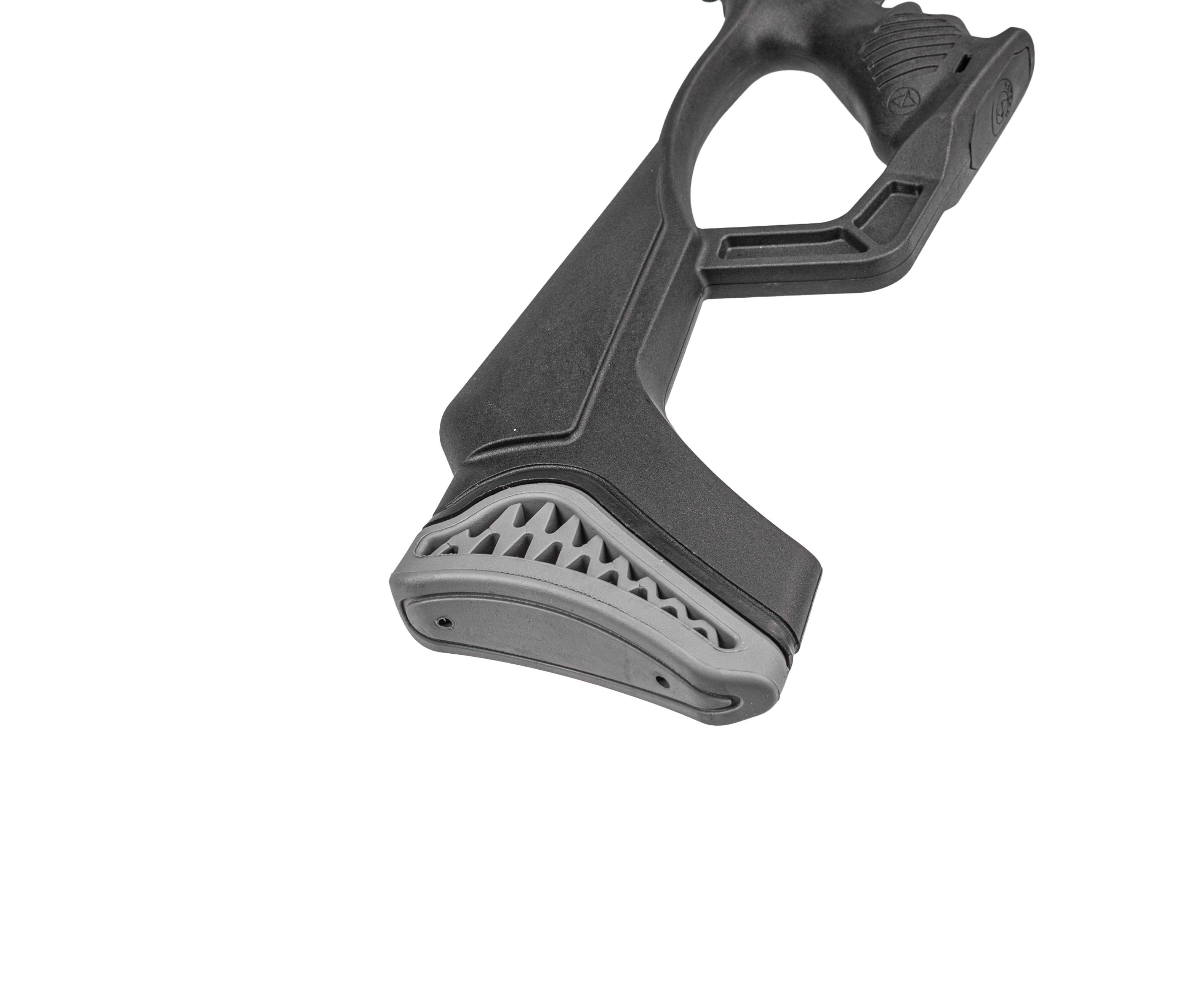 Ложе модели изготовлено из ударопрочного пластика, противостоящего внешним воздействиям и перепадам температур. Поверхность выполнена с учетом возможного хвата в перчатках - присутствуют зоны с текстурой для устойчивости удержания.