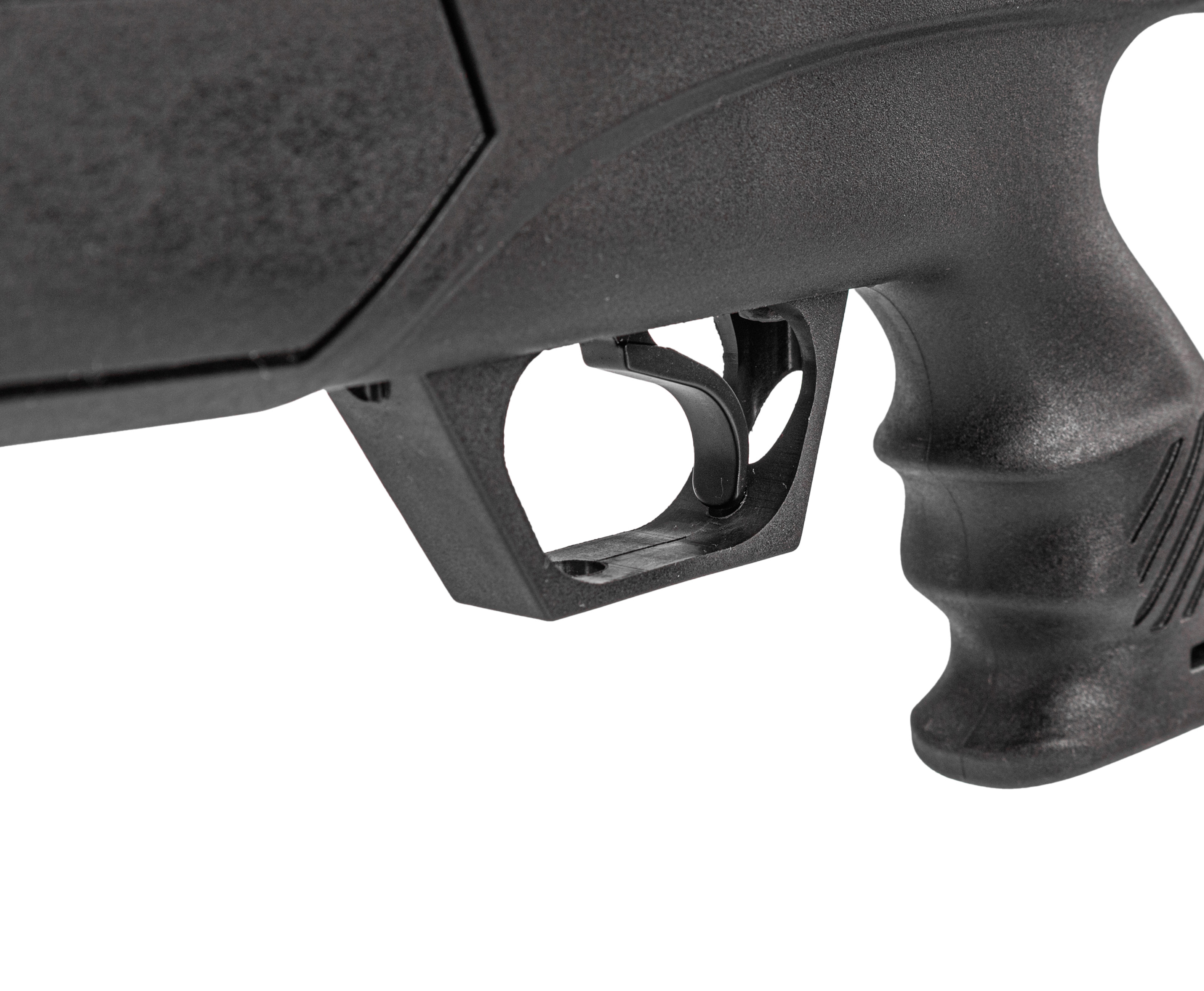 Ключевым элементом платформы стала спусковая система Quattro Trigger, которая предоставляет стрелку возможность регулировки усилия, длины свободного хода и момента срабатывания. Это помогает настроить УСМ под личные предпочтения и добиться результативного выстрела. Пневматическая винтовка Хатсан 125 Про оборудована автоматическим предохранителем, блокирующим спуск после взвода до момента ручного отключения.