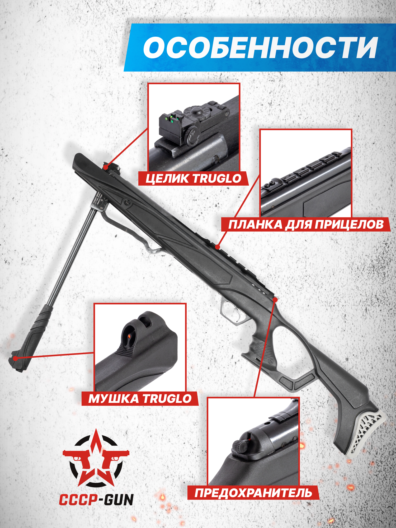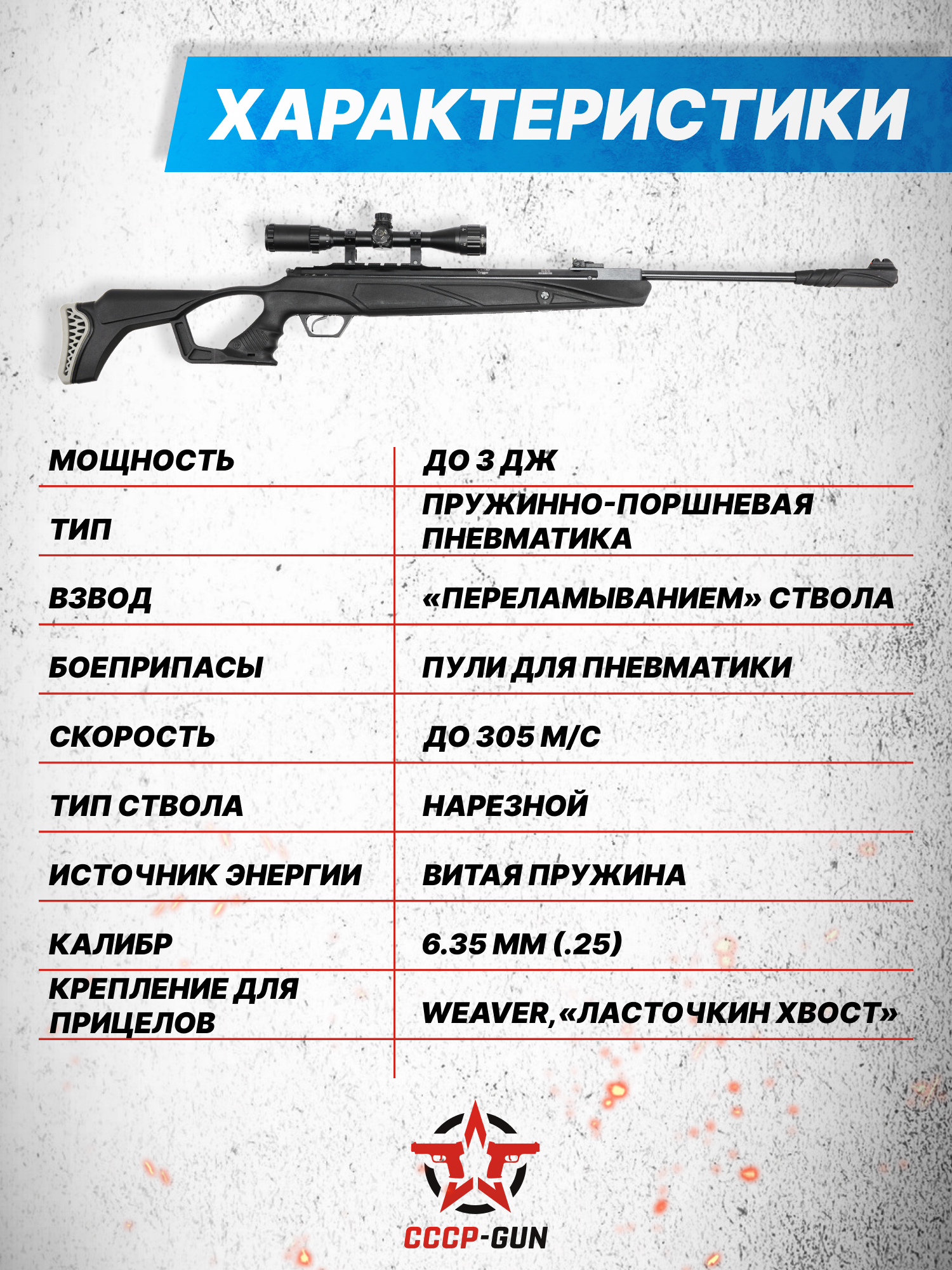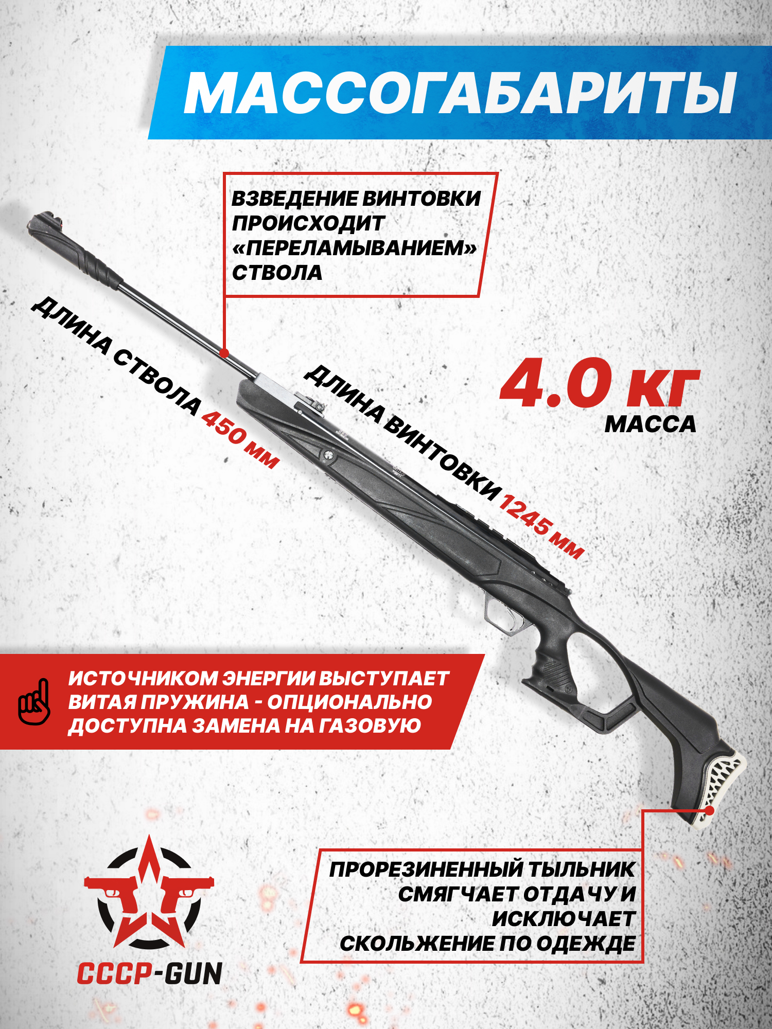 Длина в 1245 мм и масса 4 кг делают винтовку устойчивой при выстреле, помогая гасить отдачу без необходимости установки дополнительного оборудования в виде сошек. Платформа подойдет для тех, кто ищет серьезное стрелковое решение в пружинно-поршневом сегменте.