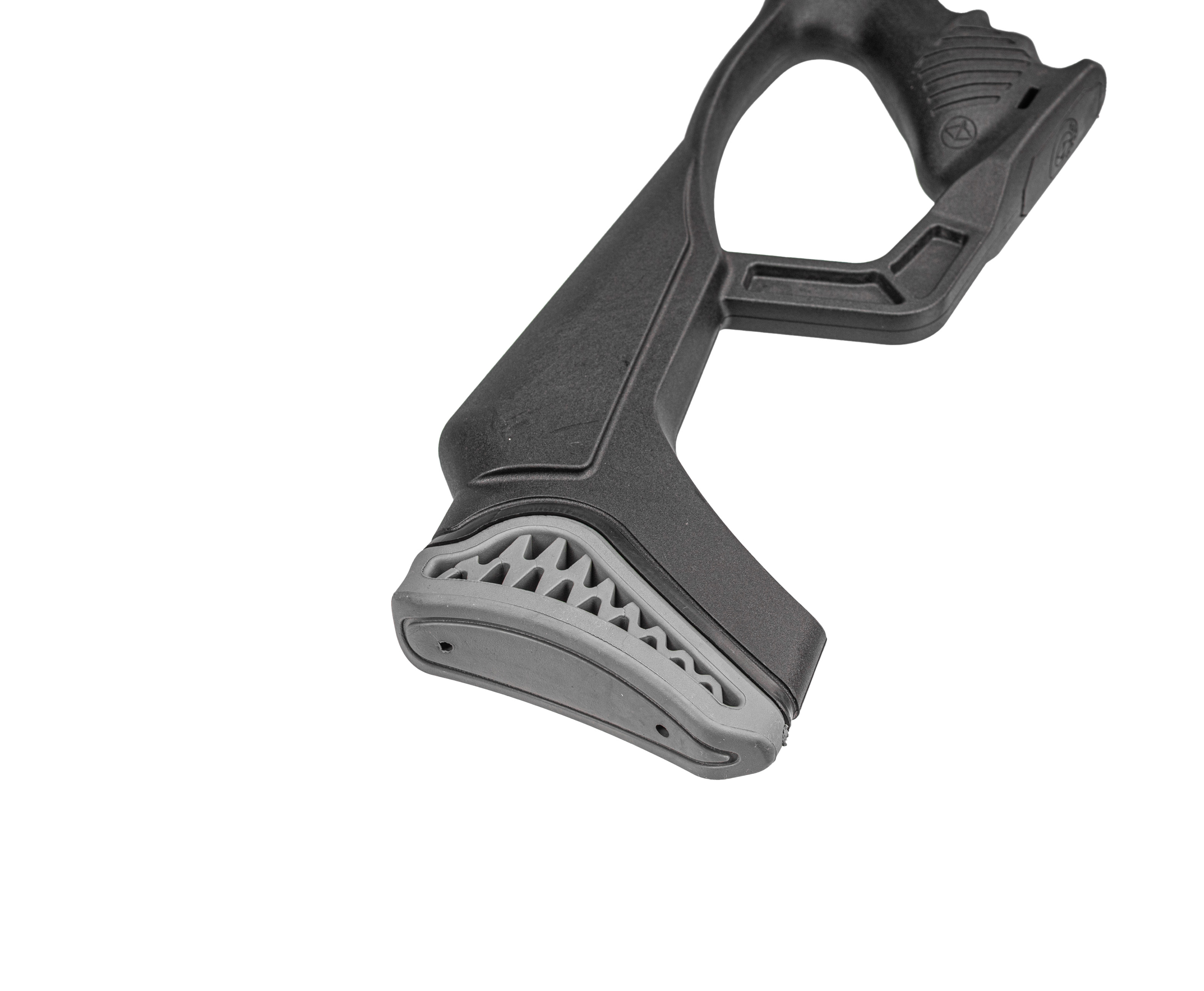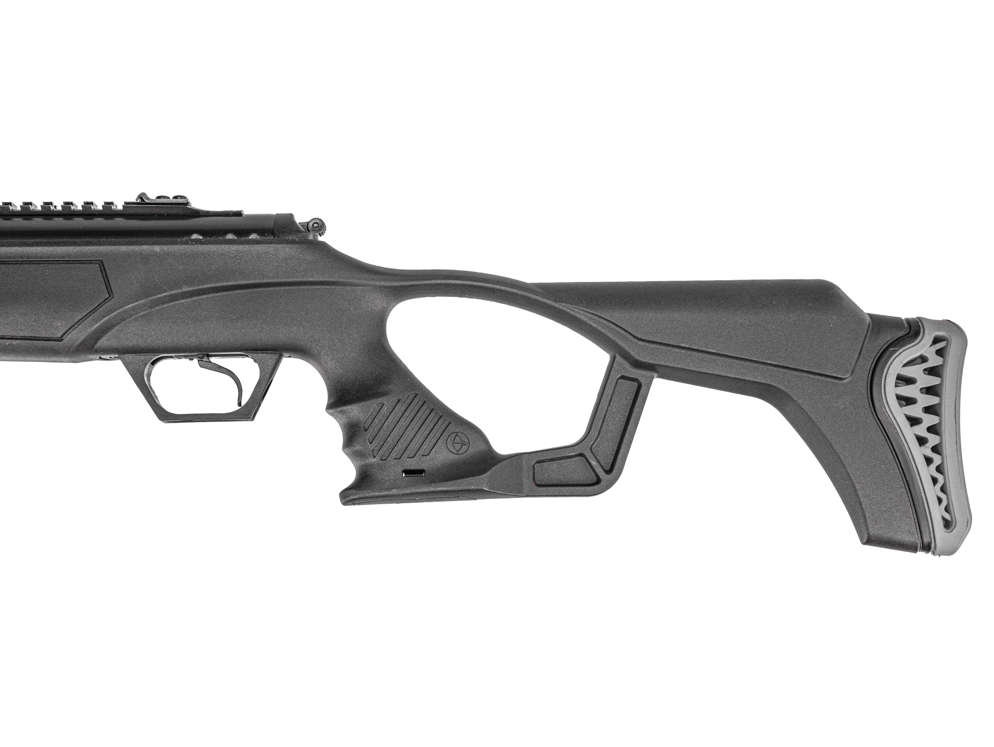 Ложе выполнено из высокопрочного полимера, должным образом противостоящего ударам и царапинам. Оно имеет эргономичную форму, подходящую как для правшей, так и для левшей, и способствует комфортной вкладке при стрельбе стоя или с упора. Пластик облегчает вес конструкции, снижая утомляемость при продолжительной практике.