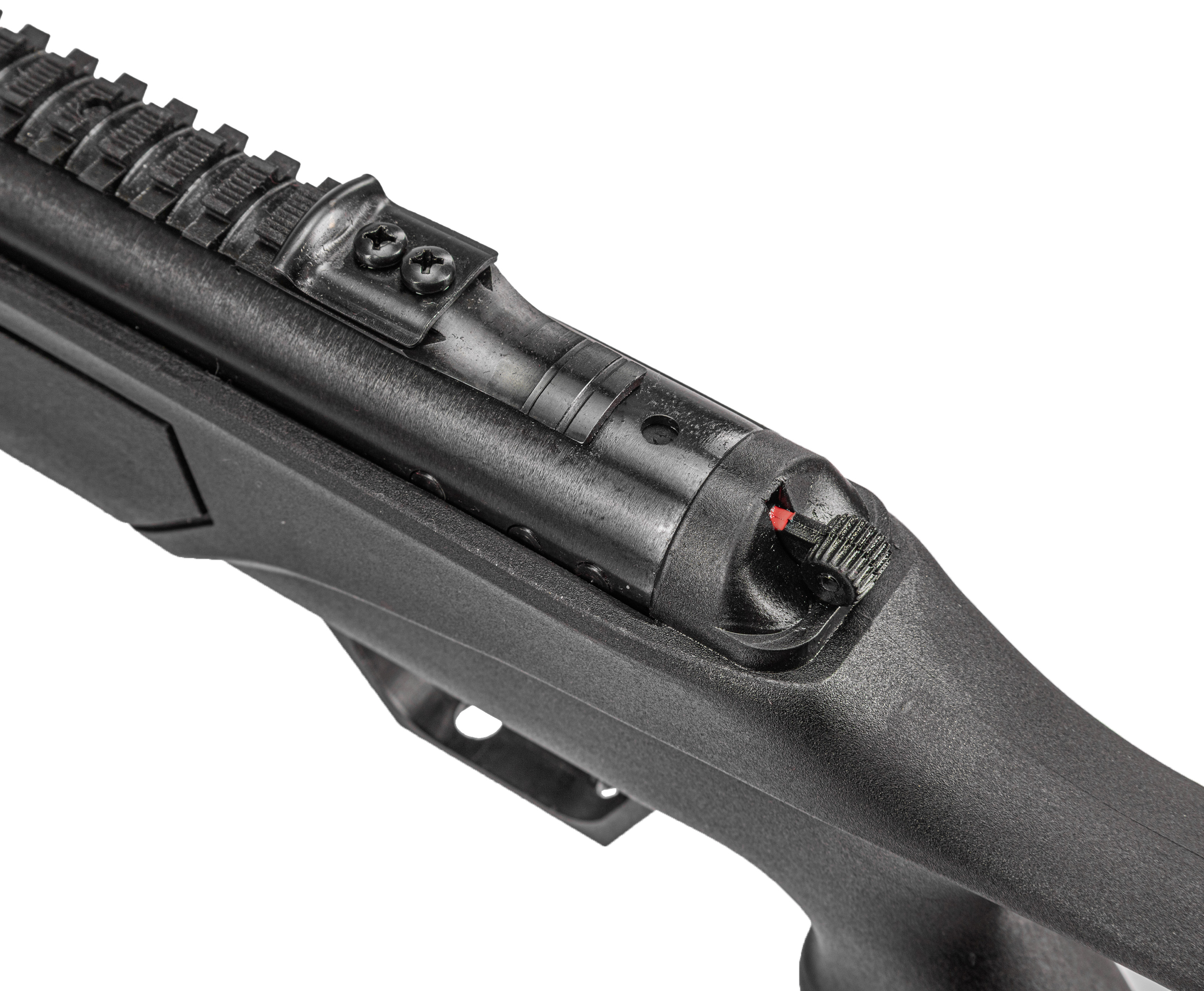 Однозарядный режим обеспечивает прямой контроль над каждым выстрелом. Используется нарезной ствол длиной 450 мм, рассчитанный на стрельбу свинцовыми "воланчиками" калибра 6.35 мм. Такой диаметр характерен для пневматики с повышенной пробивной способностью и уверенной баллистикой.