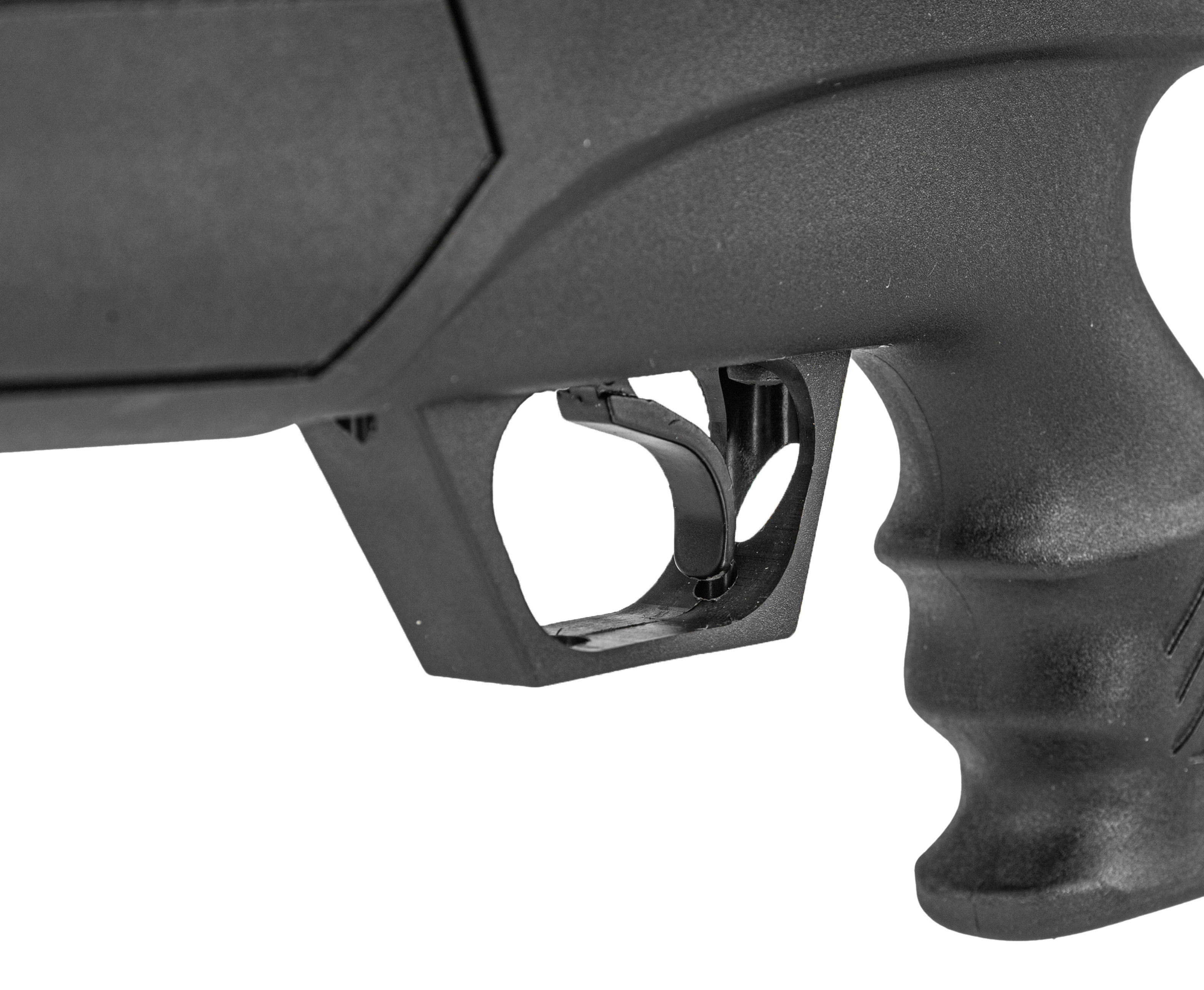 Версия PRO в линейке Hatsan отличается рядом апгрейдов, направленных на улучшение точности стрельбы и удобства эксплуатации. Ключевым элементом стала установка УСМ Quattro Trigger - регулируемого спускового механизма, позволяющего адаптировать усилие и ход под требования стрелка. Также изменена длина ствола: вместо стандартного 500-миллиметрового используется укороченный бланк, что положительно отражается на развесовке и облегчает прицеливание с рук.