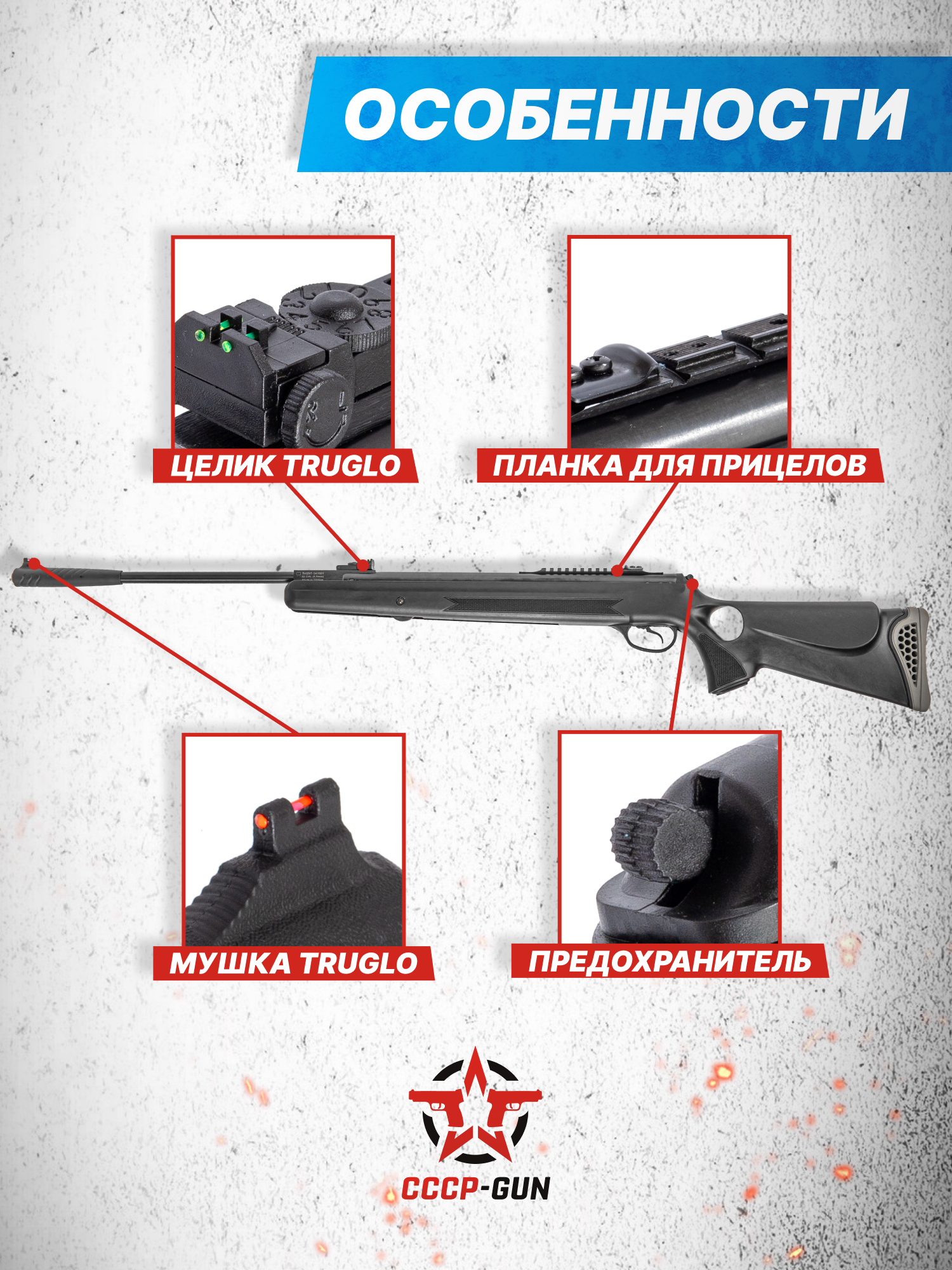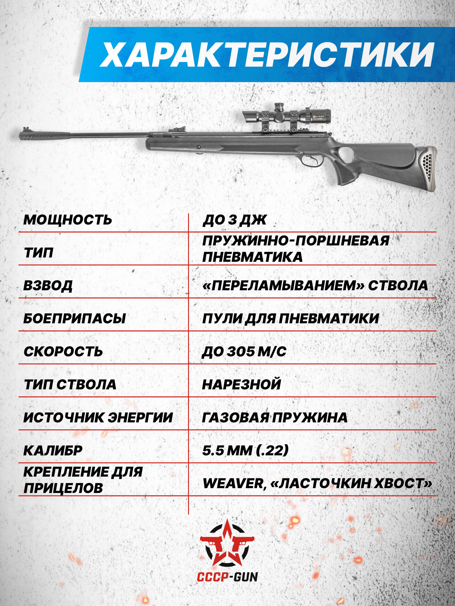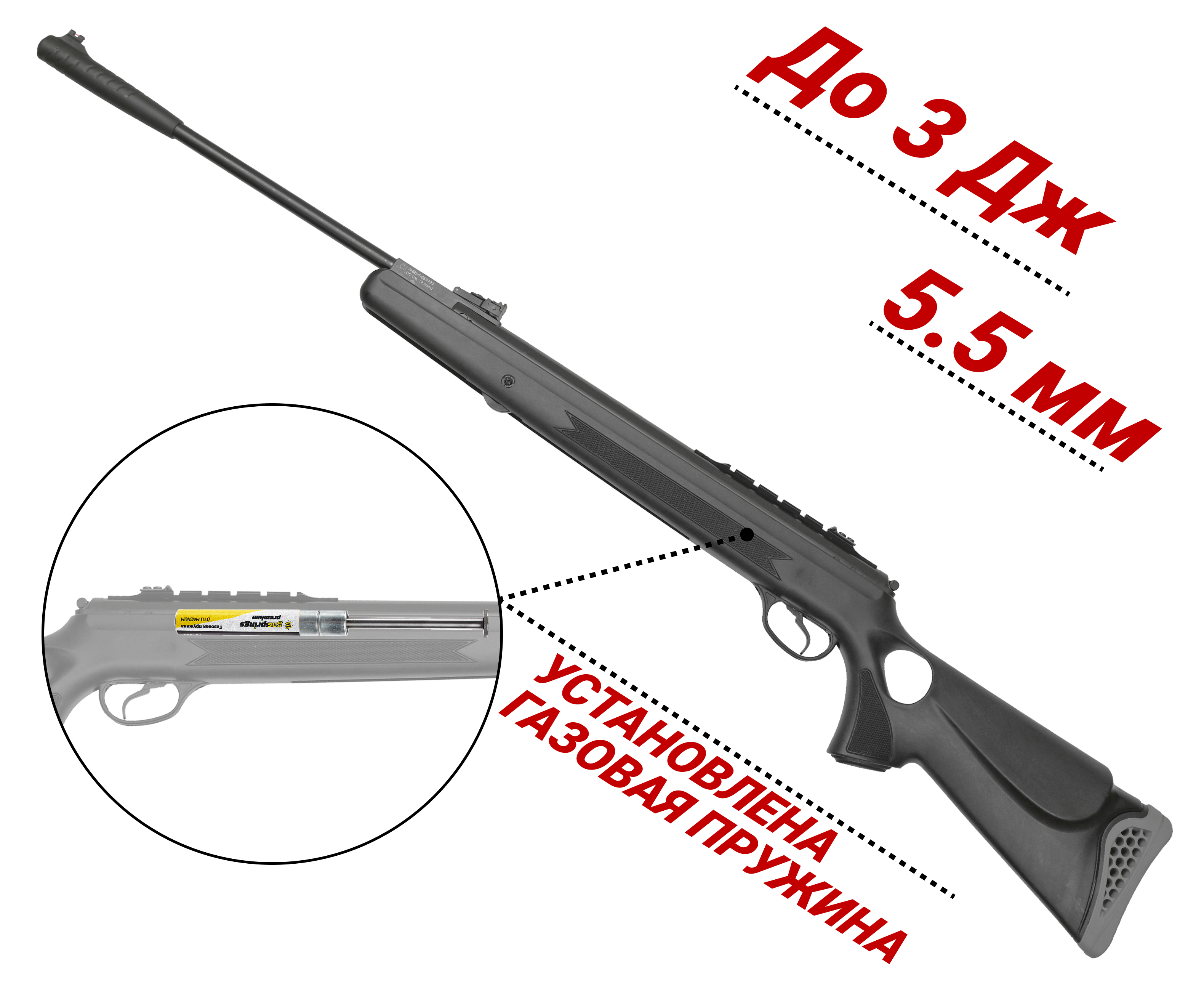 Внимание! Данная модель поставляется в разрешенной мощности для свободного приобретения на территории Российской Федерации. При этом в модели имеется возможность увеличения мощности путем замены части деталей или настройки конструкции, однако не стоит забывать о Федеральном законе «Об оружии» № 150 - ФЗ. В случае необходимости, опираясь на данный закон и руководствуясь им, возможно, потребуется получить разрешение от ЛЛР ГУ МВД России после вмешательства в конструкцию.