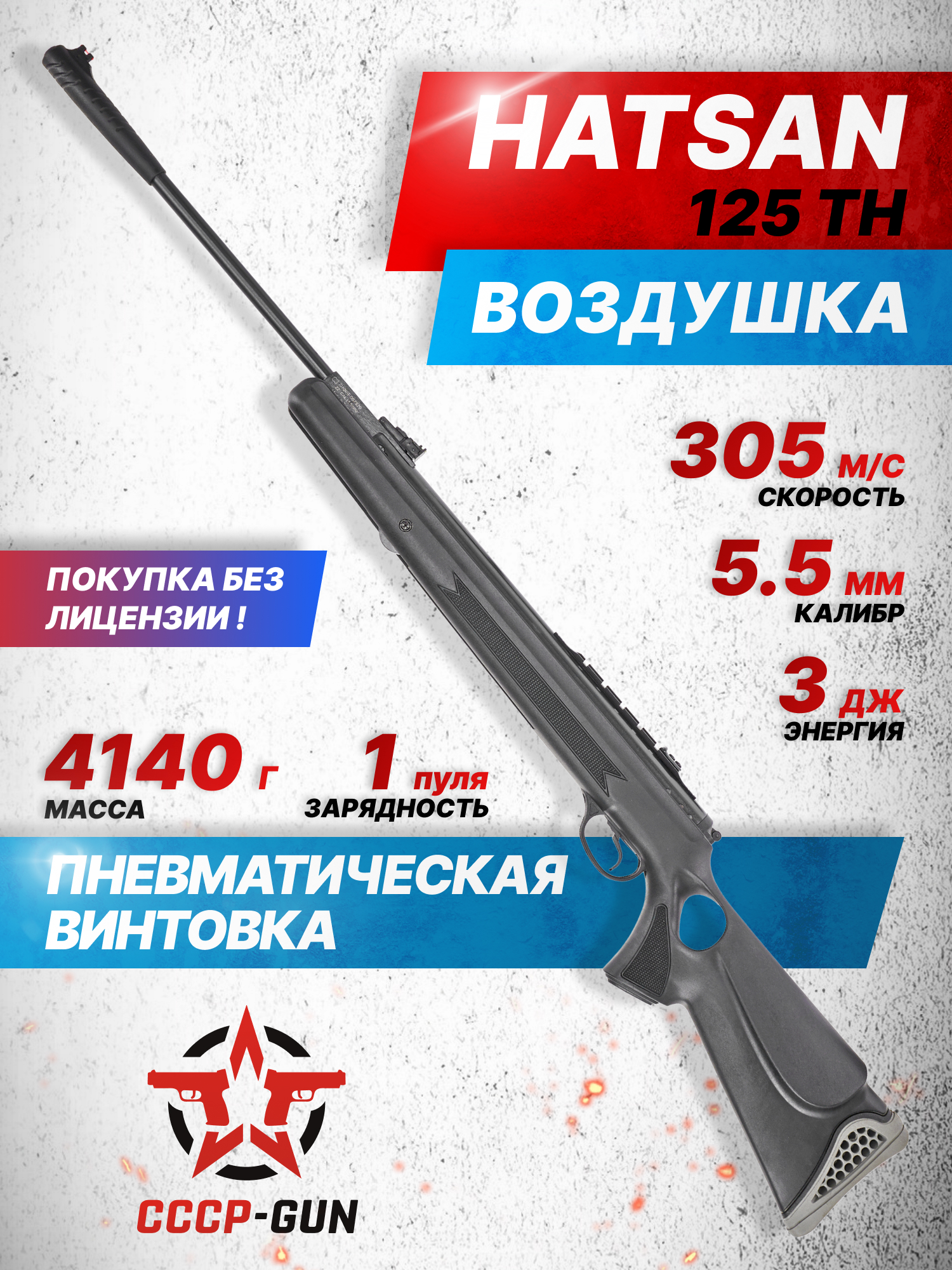 Турецкий бренд Hatsan давно проявил себя на рынке пневматического оружия как производитель выносливых и высокоэнергетичных винтовок, предназначенных для использования в самых разных условиях. Продукция компании сочетает достаточный ресурс и удобство при эксплуатации. Одной из таких моделей является «переломка» 125TH калибра 5.5 мм - вариант популярной линейки с тактическим ложем продвинутого формата.
