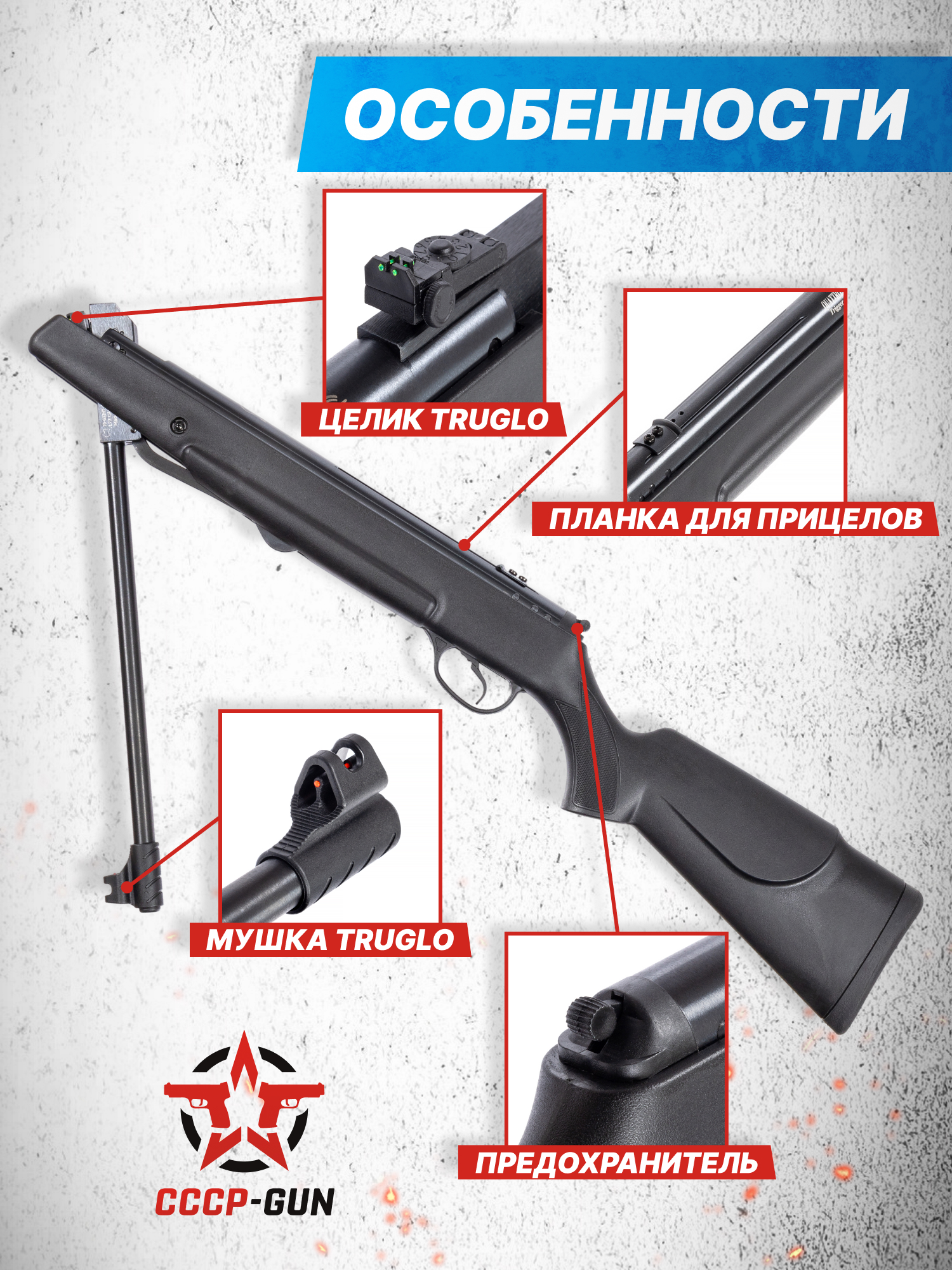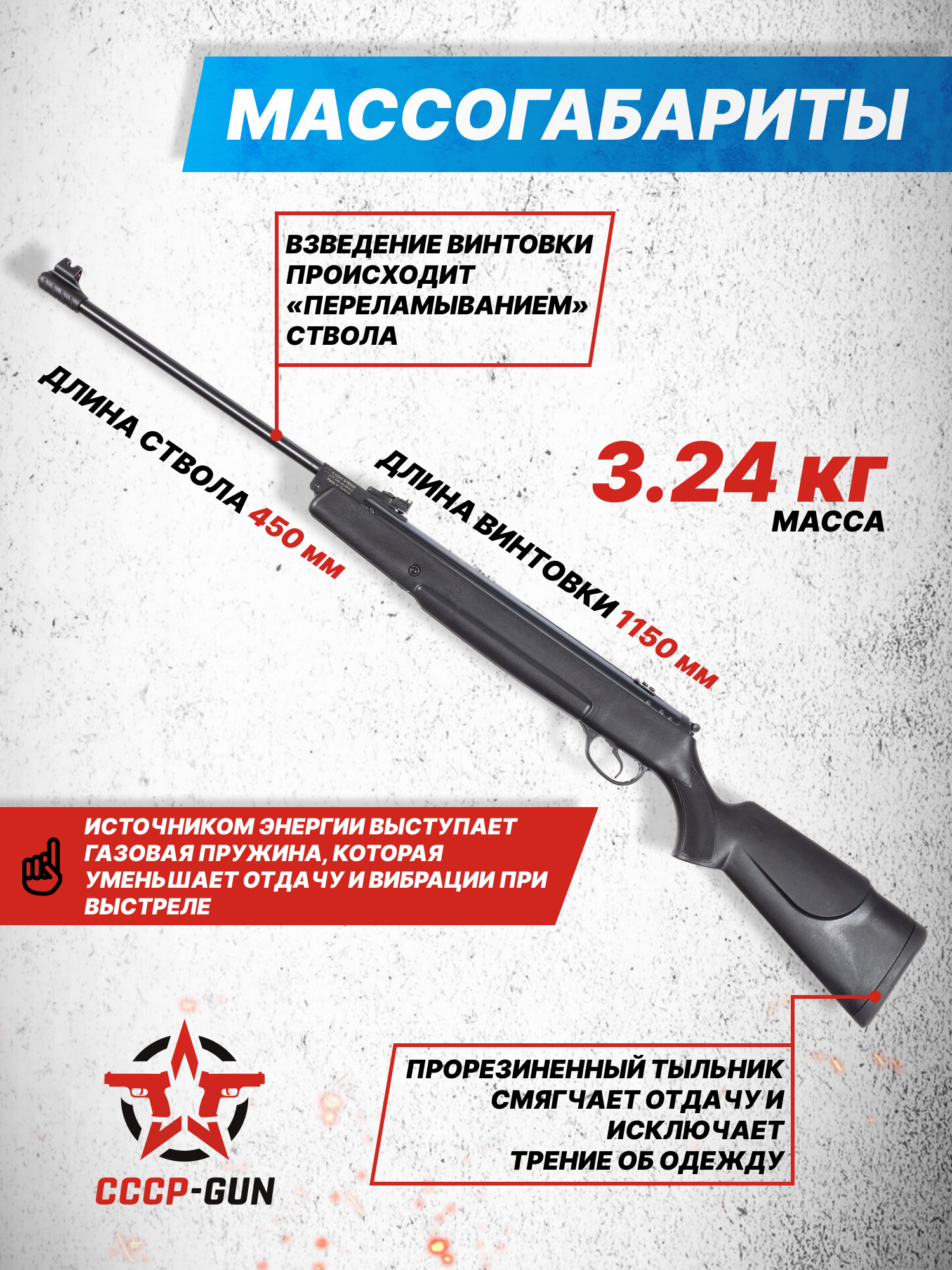 Внимание! Данная модель поставляется в разрешенной мощности для свободного приобретения на территории Российской Федерации. При этом в модели имеется возможность увеличения мощности путем замены части деталей или настройки конструкции, однако не стоит забывать о Федеральном законе «Об оружии» № 150 - ФЗ. В случае необходимости, опираясь на данный закон и руководствуясь им, возможно, потребуется получить разрешение от ЛЛР ГУ МВД России после вмешательства в конструкцию.