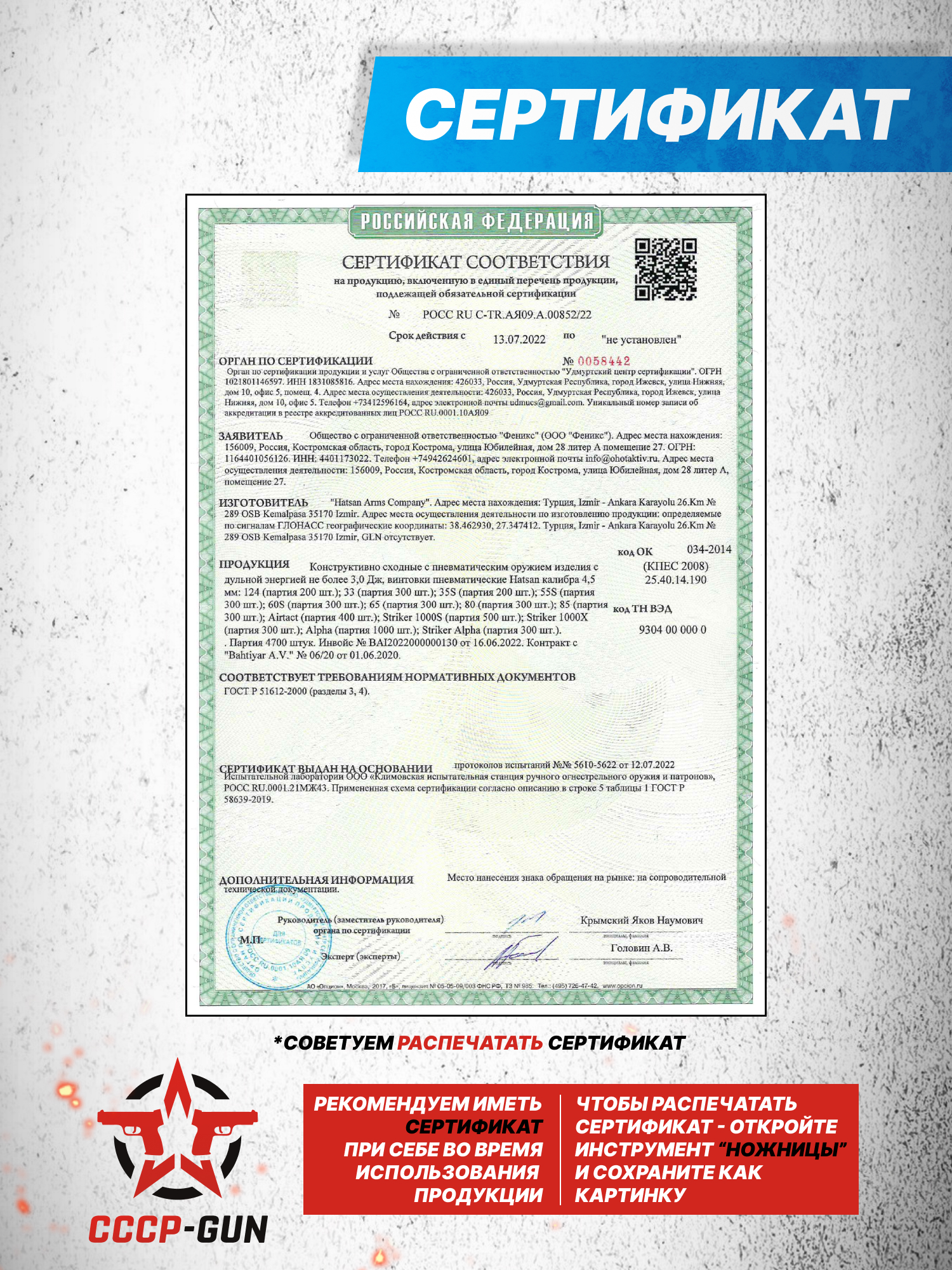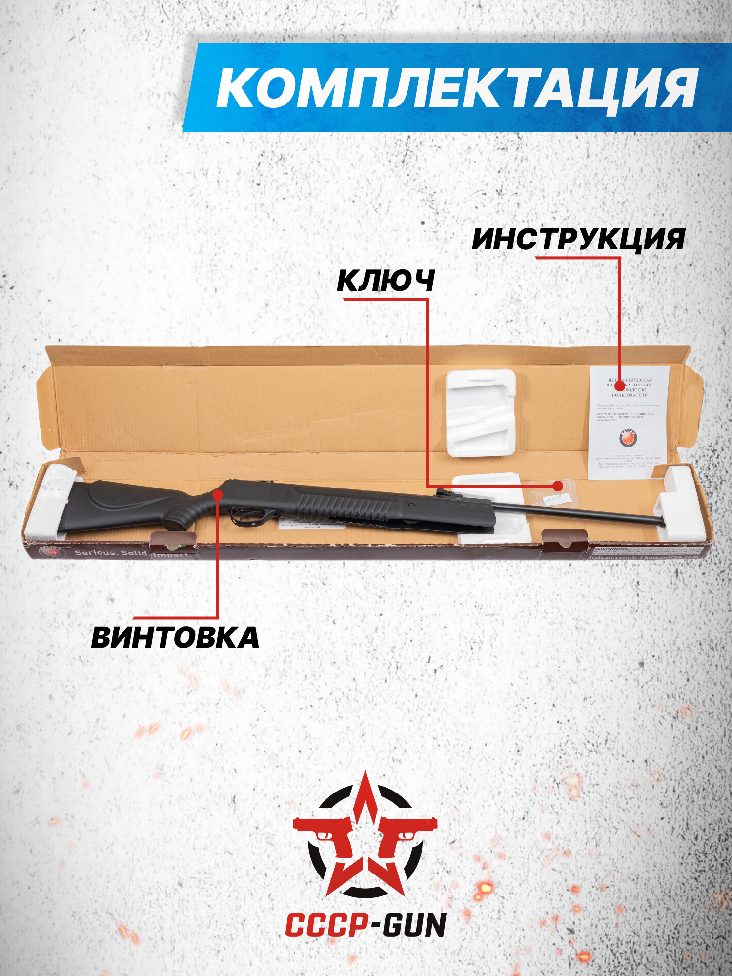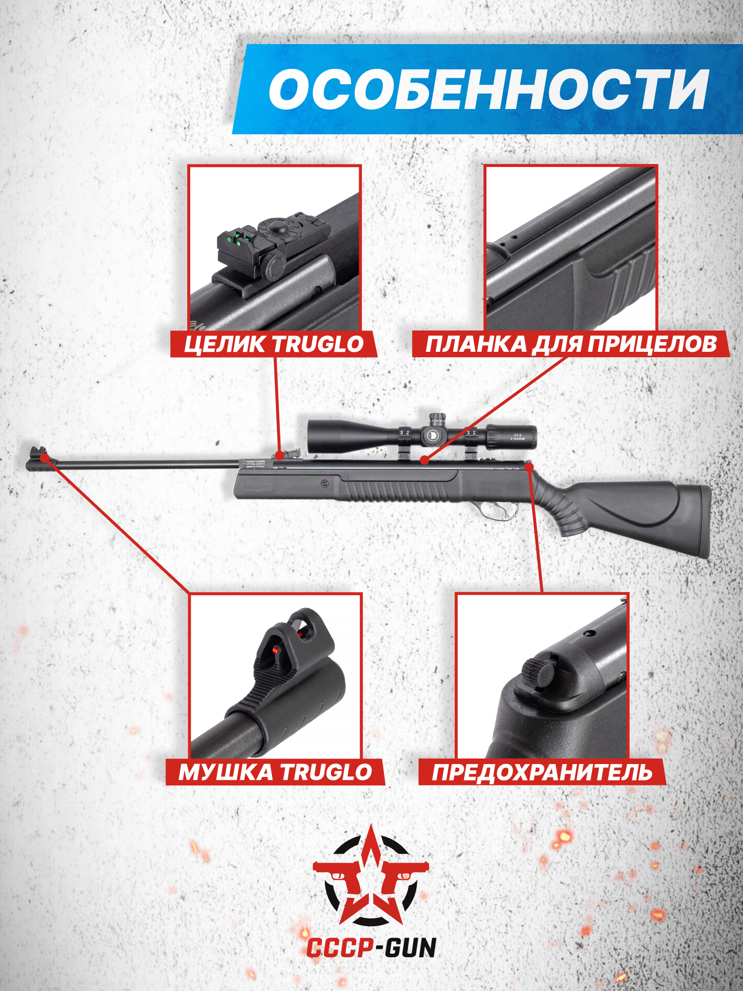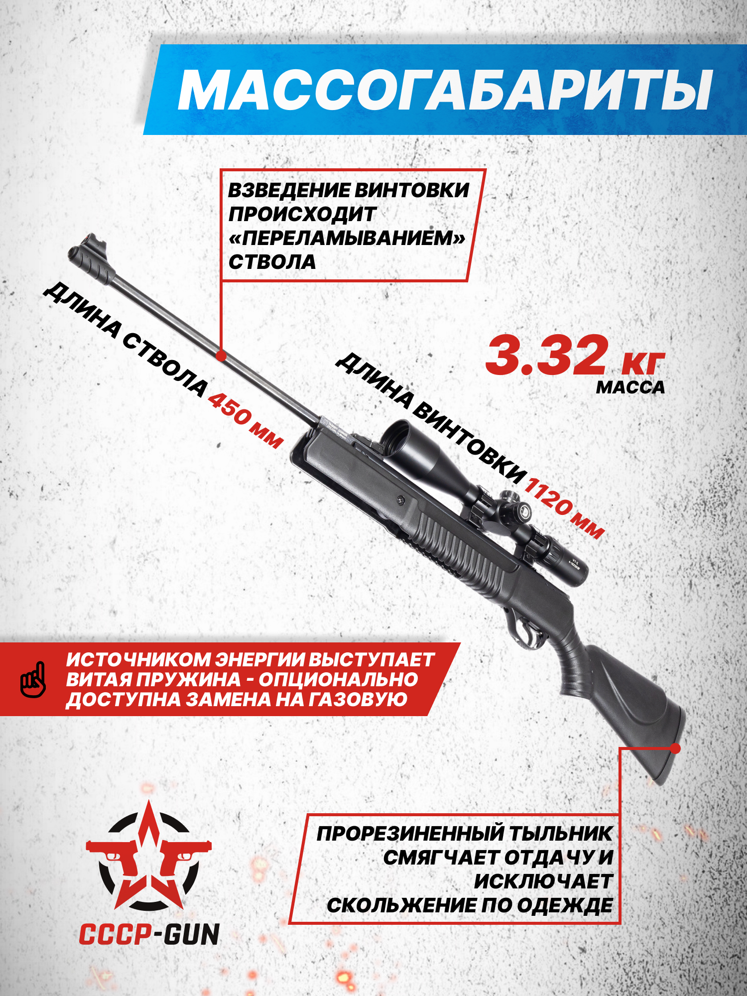 Внимание! Данная модель поставляется в разрешенной мощности для свободного приобретения на территории Российской Федерации. При этом в модели имеется возможность увеличения мощности путем замены части деталей или настройки конструкции, однако не стоит забывать о Федеральном законе «Об оружии» № 150 - ФЗ. В случае необходимости, опираясь на данный закон и руководствуясь им, возможно, потребуется получить разрешение от ЛЛР ГУ МВД России после вмешательства в конструкцию.