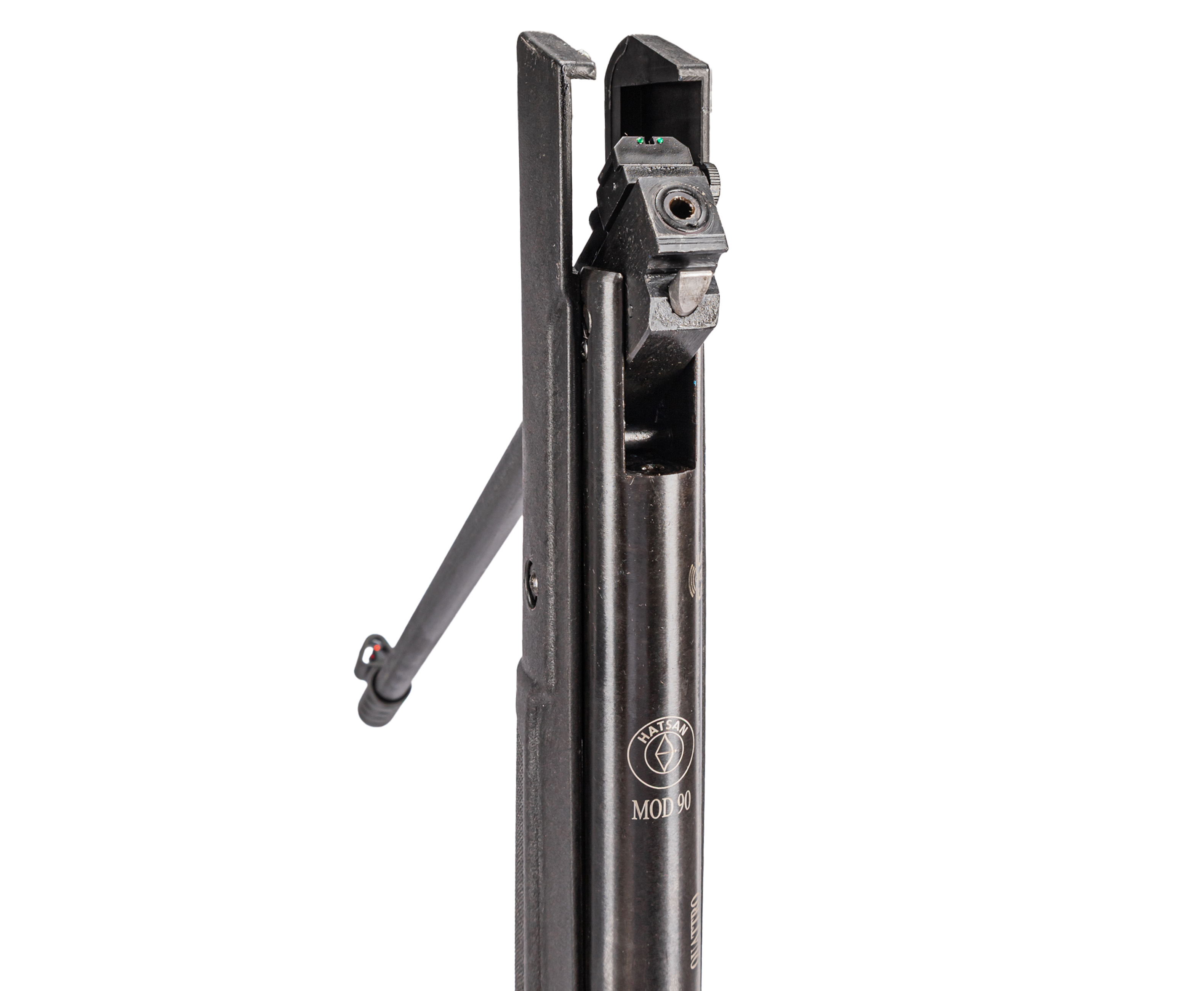 Пневматическая винтовка Хатсан 90 ТР оснащена пружинно-поршневым механизмом с классическим переломным взводом, позволяющим использовать оружие автономно, без дополнительного оборудования в виде резервуаров и насосов. Заряжание осуществляется вручную - достаточно открыть ствол, после чего сжимается витая пружина. Поршень остается в готовом к работе положении до момента взаимодействия со спусковым крючком.