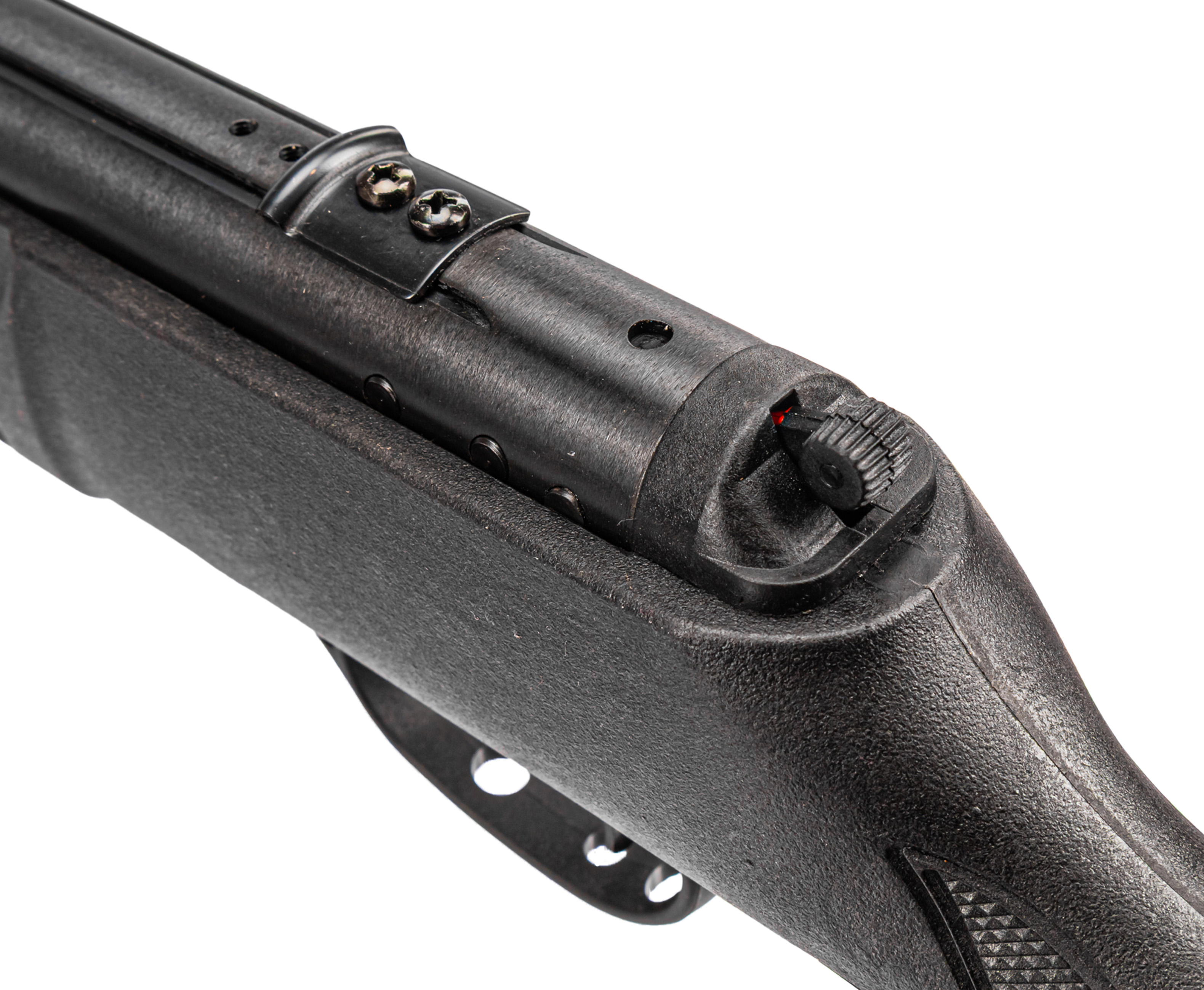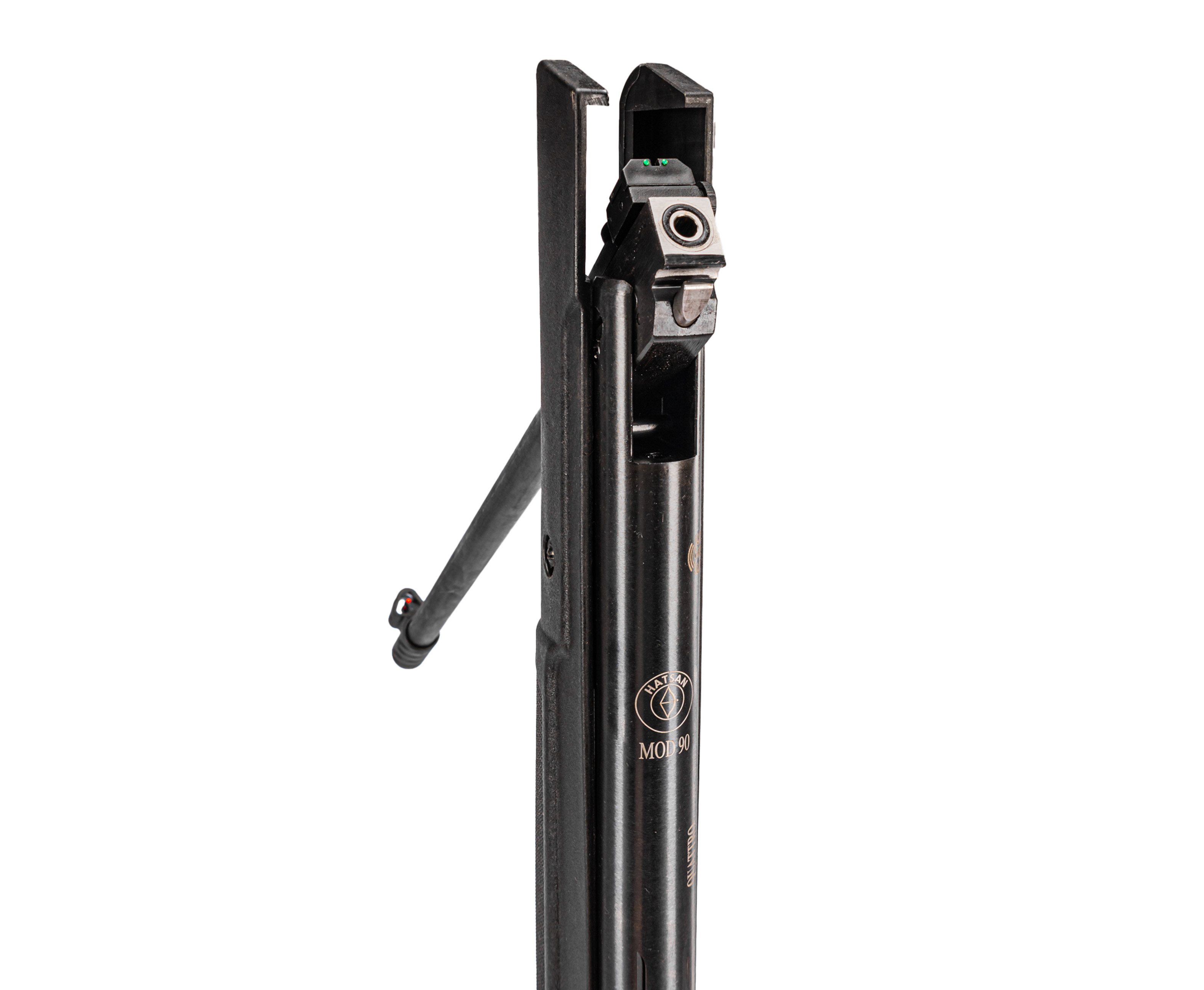 Ствол с нарезной геометрией калибра 6.35 мм выполнен из стали и имеет длину 450 мм, что обеспечивает плотную кучность. Пневматическая Хатсан 90 работает в одиночном режиме. Такое решение исключает вероятность перекоса и упрощает контроль за каждым выстрелом.