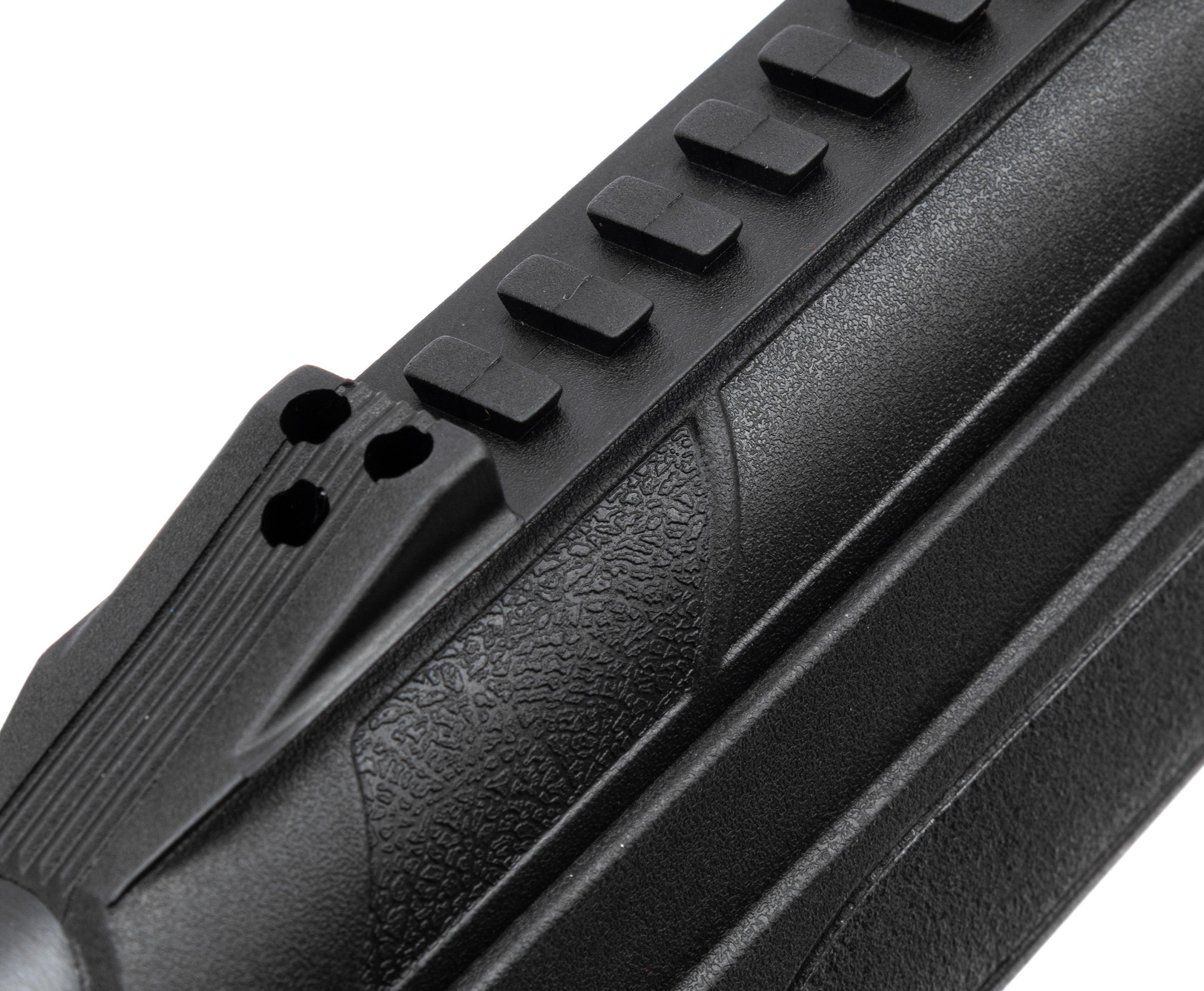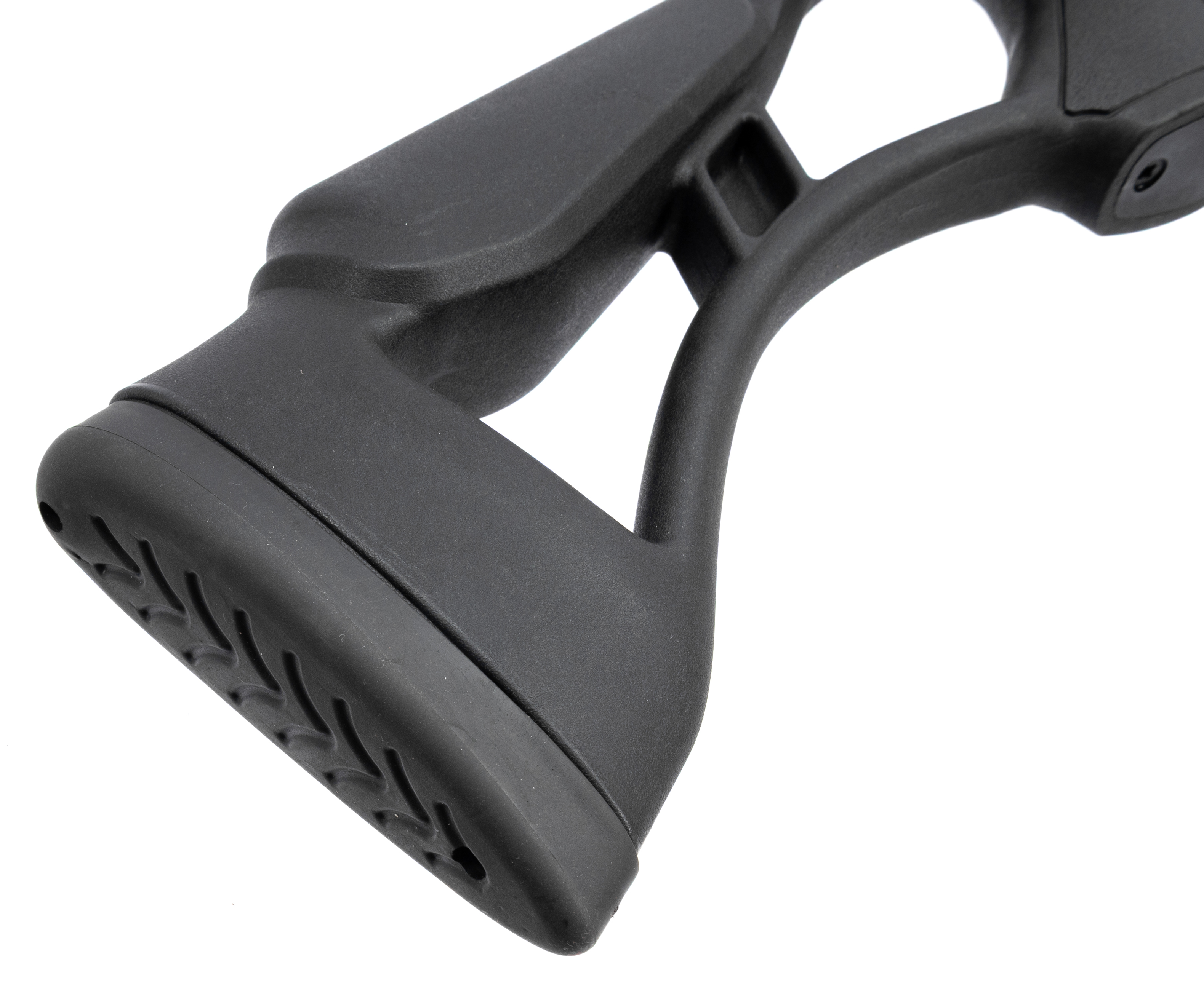 В качестве материала для ложа, изготовитель выбрал ударопрочный черный пластик, который снижает полный вес изделия до 2.75 килограмм. Пистолетная рукоять и ортопедический приклад помогут сформировать комфортную вкладку при использовании данного образца. Классическая компоновка винтовки создает привычный форм-фактор оружия общей длиной 1135 миллиметров.