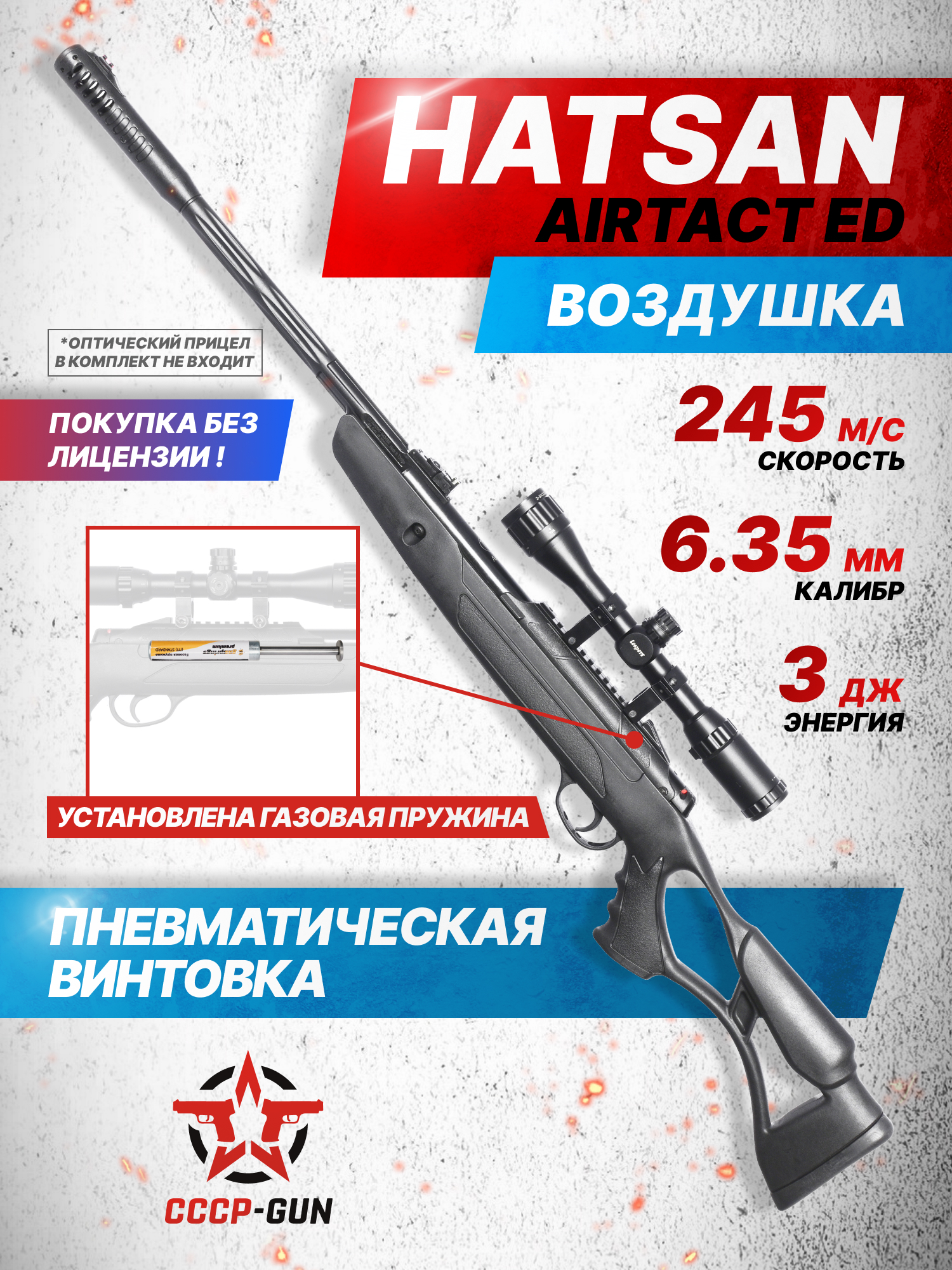 Рассматриваемая пневматическая винтовка является модифицированной вариацией переломки AirTact ED, выпущенной под свинцовые пули калибра 6.35 миллиметра. Ствольная группа изделия основана на 370-миллиметровом нарезном стволе, что вместе с упомянутой особенностью делает описываемую «воздушку» подходящей не только для развлекательных целей, но и всевозможных профессиональных направлений стрелковых дисциплин.