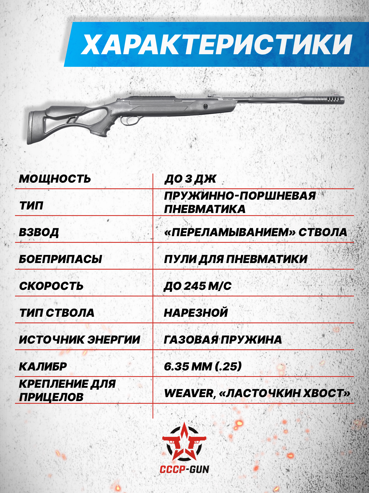 Усиленные модели винтовки, согласно замерам, способны приводить в движение стандартный по массе боеприпас и разгонять его до скорости в 300 м/с. Важно упомянуть, что для соблюдения действующего в России законодательства значение мощности выстрела ограничивается на отметке в три Дж, за счет чего приобретение пневматики не требует от стрелка оформления специализированной лицензии.