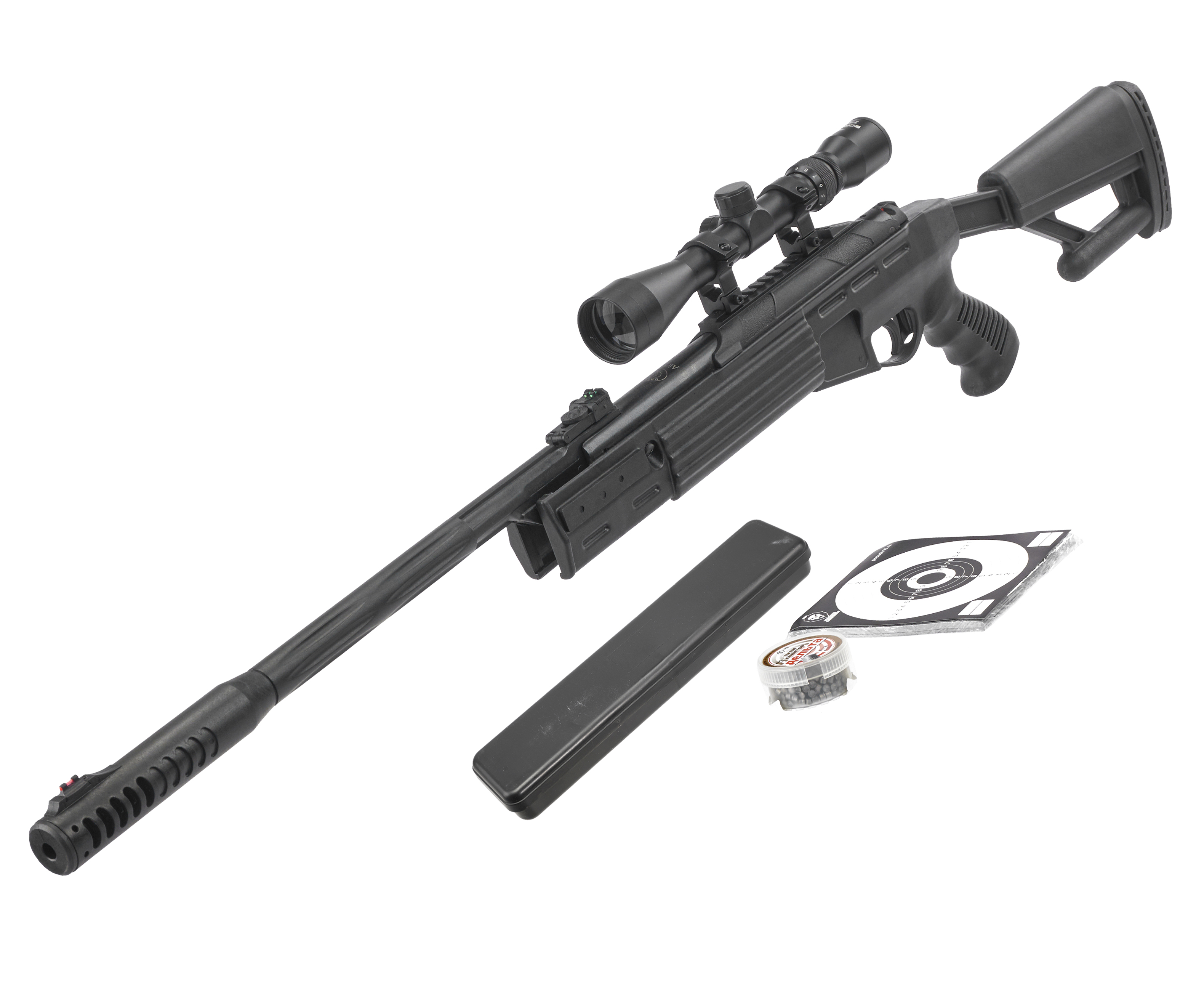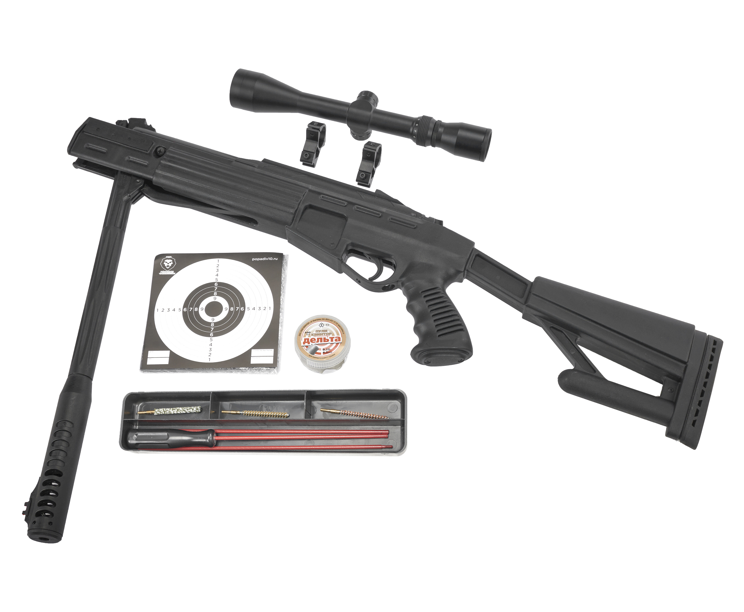 Отличающейся особенностью конструкции пневматической винтовки является наличие эргономичной пистолетной рукояти с подпальцевыми выемками и противоскользящей текстурой поверхности, которая в сочетании с тактическим прикладом формируют комфортный хват и стойкую вкладку при стрельбе.