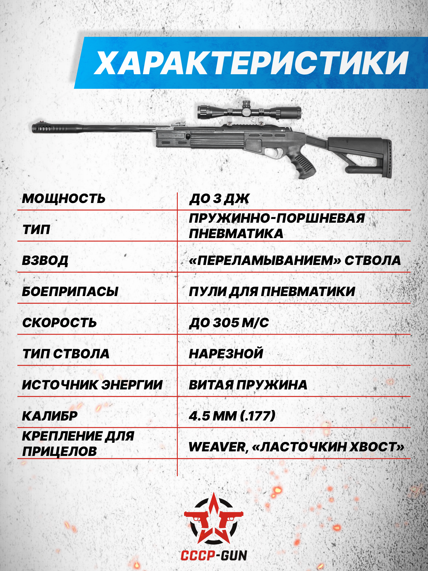 Важно отметить, что модели, поставляемые на российский гражданский рынок, имеют дульную энергию выстрела, которая ограничена значением в три Джоуля. Такой показатель, подтверждающийся сертификатом соответствия, говорит о возможности свободной покупки винтовки без предварительного оформления лицензии. При этом, усиленные модели пневматики, которые поставляются в другие страны, способны разгонять свинцовую пулю до скоростей в пределе 300-310 метров в секунду.