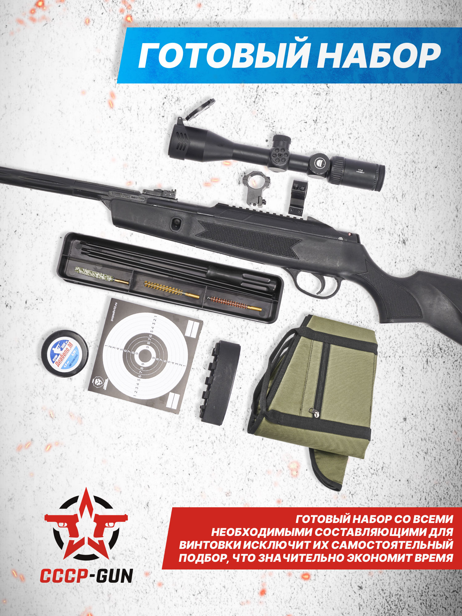 При приобретении пневматики в виде подарка для близкого человека чрезвычайно важно учитывать необходимость принадлежностей, с отсутствием которых эксплуатация оружия окажется затруднительной или вовсе невозможной. Приобрести винтовку с набором дополнительного оборудования допускается без познаний в этой области - в конкретном случае для подобных моментов разработаны комплекты Hunter Set, содержащие требуемые расходники и приспособления. Помимо решения проблем с выбором аксессуаров, готовая подборка также способствует экономии времени, что представляет ценность для новичков и опытных стрелков.