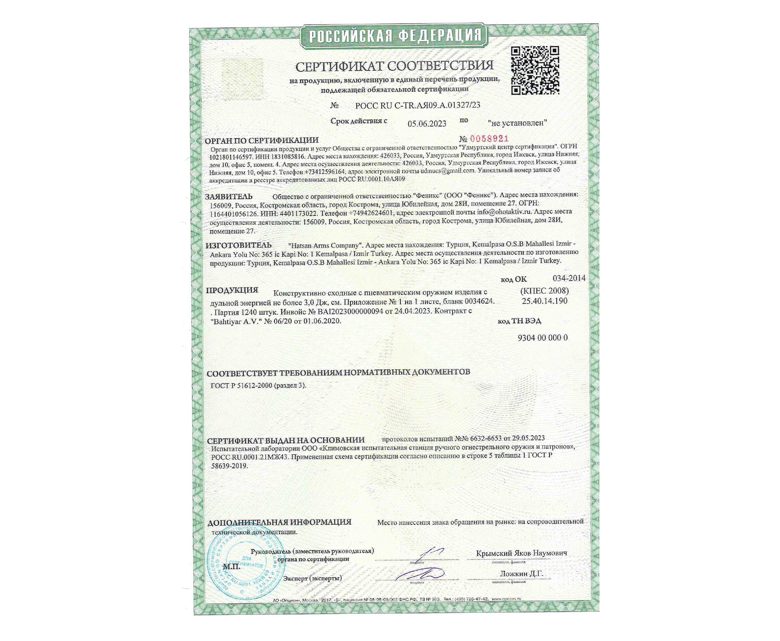 Внимание! Данная модель поставляется в разрешенной мощности для свободного приобретения на территории Российской Федерации. При этом в модели имеется возможность увеличения мощности путем замены части деталей или настройки конструкции, однако не стоит забывать о Федеральном законе «Об оружии» № 150 - ФЗ. В случае необходимости, опираясь на данный закон и руководствуясь им, возможно, потребуется получить разрешение от ЛЛР ГУ МВД России после вмешательства в конструкцию.