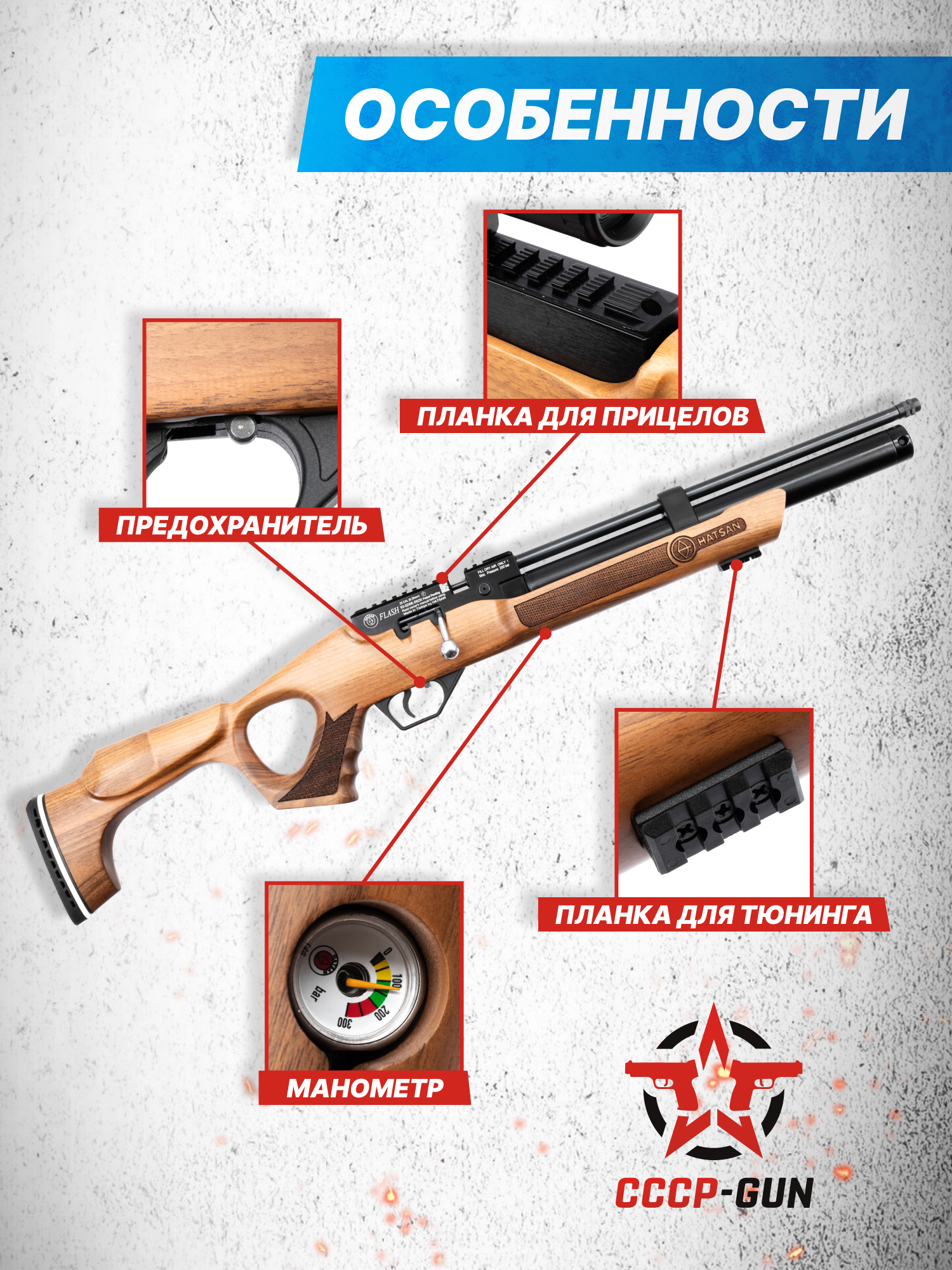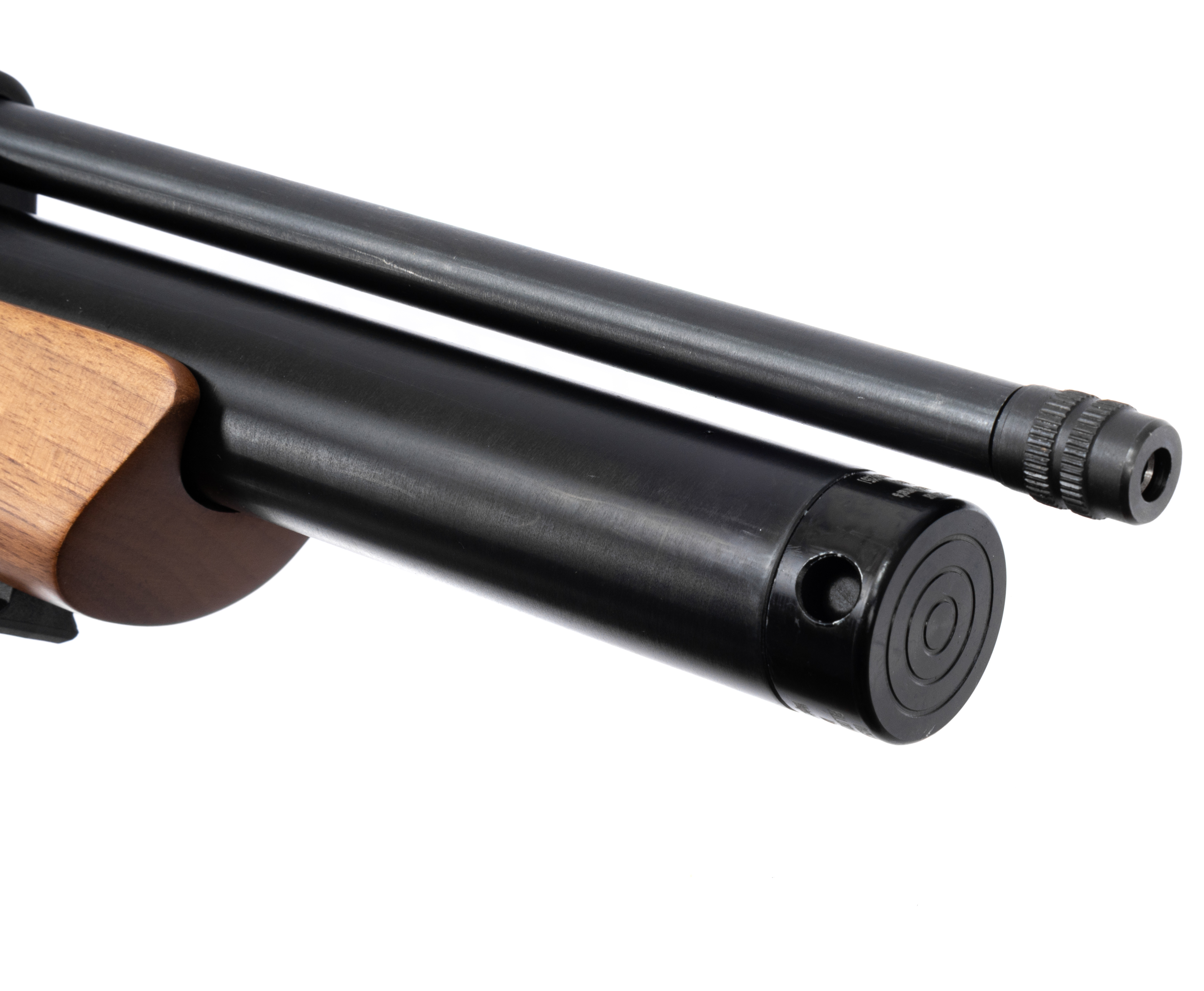 Заправляется оружие с помощью компрессора или насоса через специальный штуцер, который идет в комплекте. Объем трубчатого ресивера составляет 165 кубических сантиметров. Для корректной работы механизма винтовки, изготовитель рекомендует не переступать порог давления в 200 бар. Соблюдение этого правила с помощью штатного манометра поможет на долгие годы сохранить изделие в рабочем состоянии.
