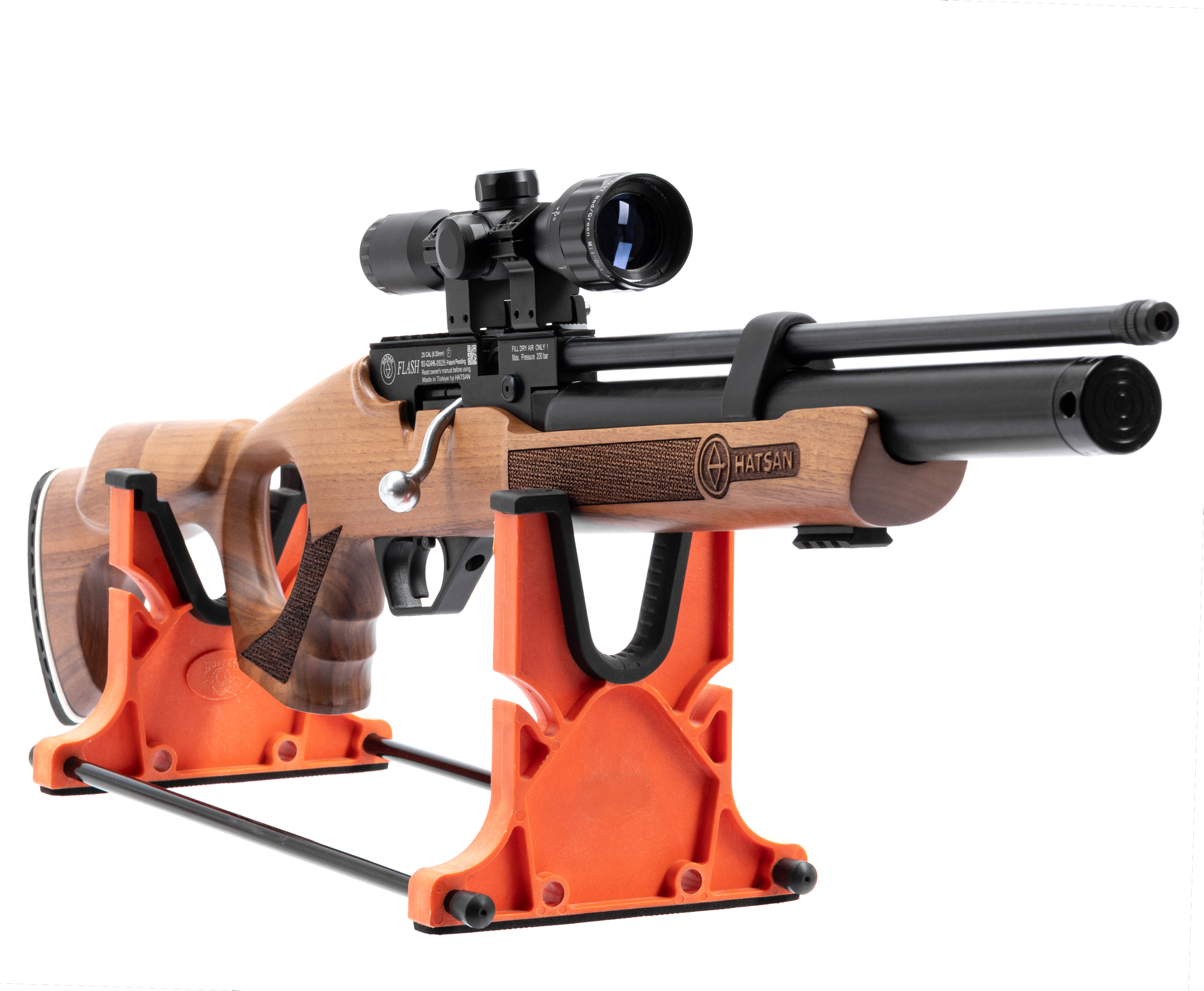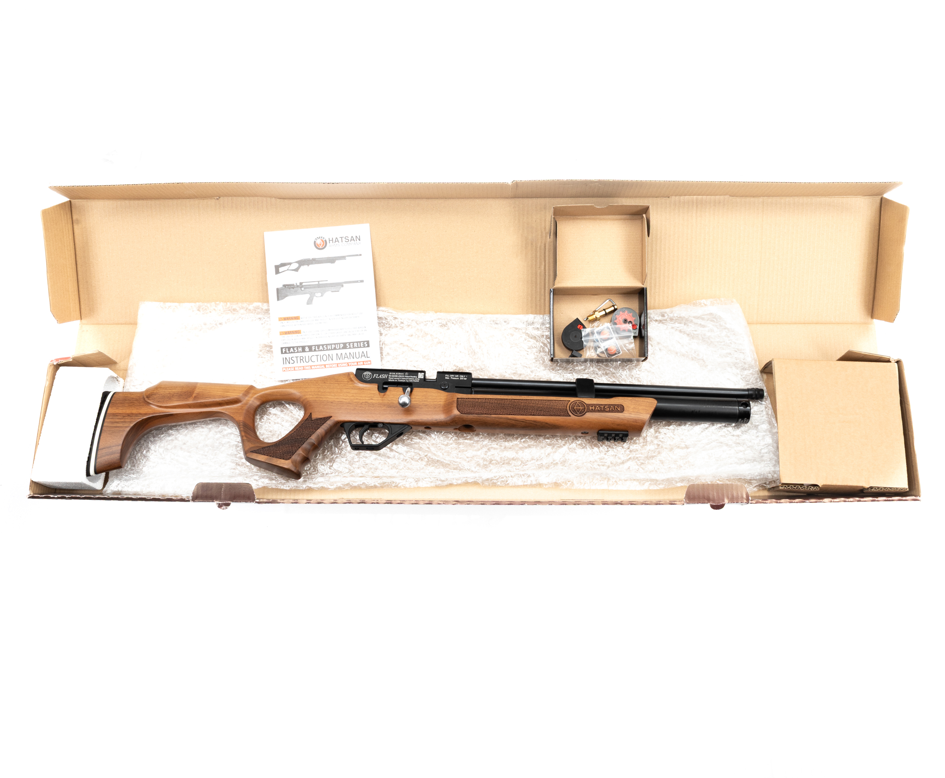Пневматическая винтовка Hatsan Flash W cal 6.35 относится к прогрессивному числу ПСП винтовок, с ортопедическим деревянным ложе. Эргономичный приклад делает вкладку удобной, при работе с винтовкой в положении лежа, сидя и стоя. С помощью пистолетной рукояти можно комфортно держать оружие в естественном положении кисти руки. Мягкий резиновый тыльник не дает оружию выскальзывать при упоре в плечо.
