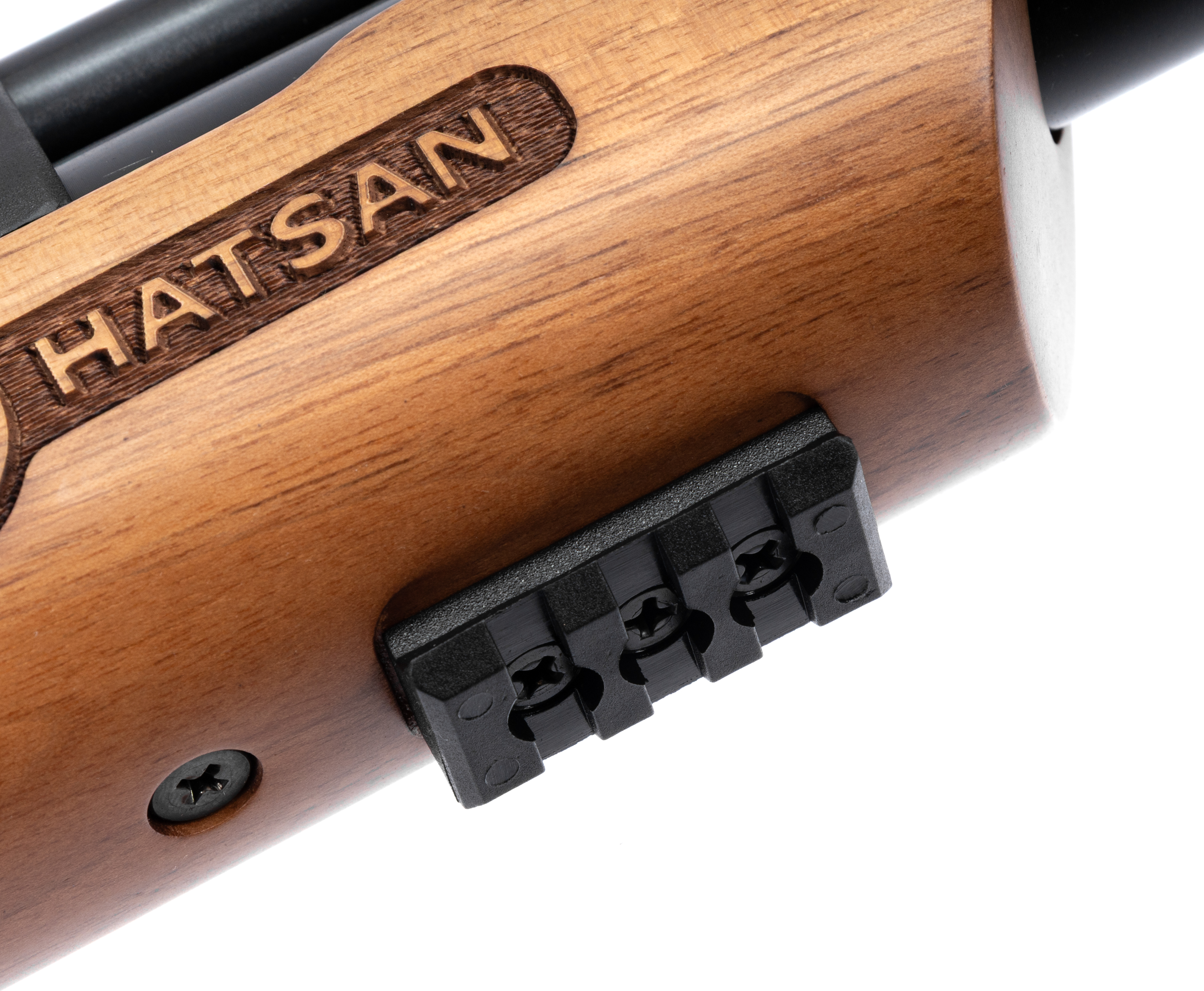 Профессиональным стрелкам понравится то, что эта пневматика хорошо поддается усилению, после чего скорость полета пули возрастает до 285 метров в секунду. Нарезной, спроектированный компанией Hatsan, ствол положительно влияет на точность при стрельбе на дальние дистанции. Благодаря этим характеристикам винтовку часто используют для спортивных соревнований.