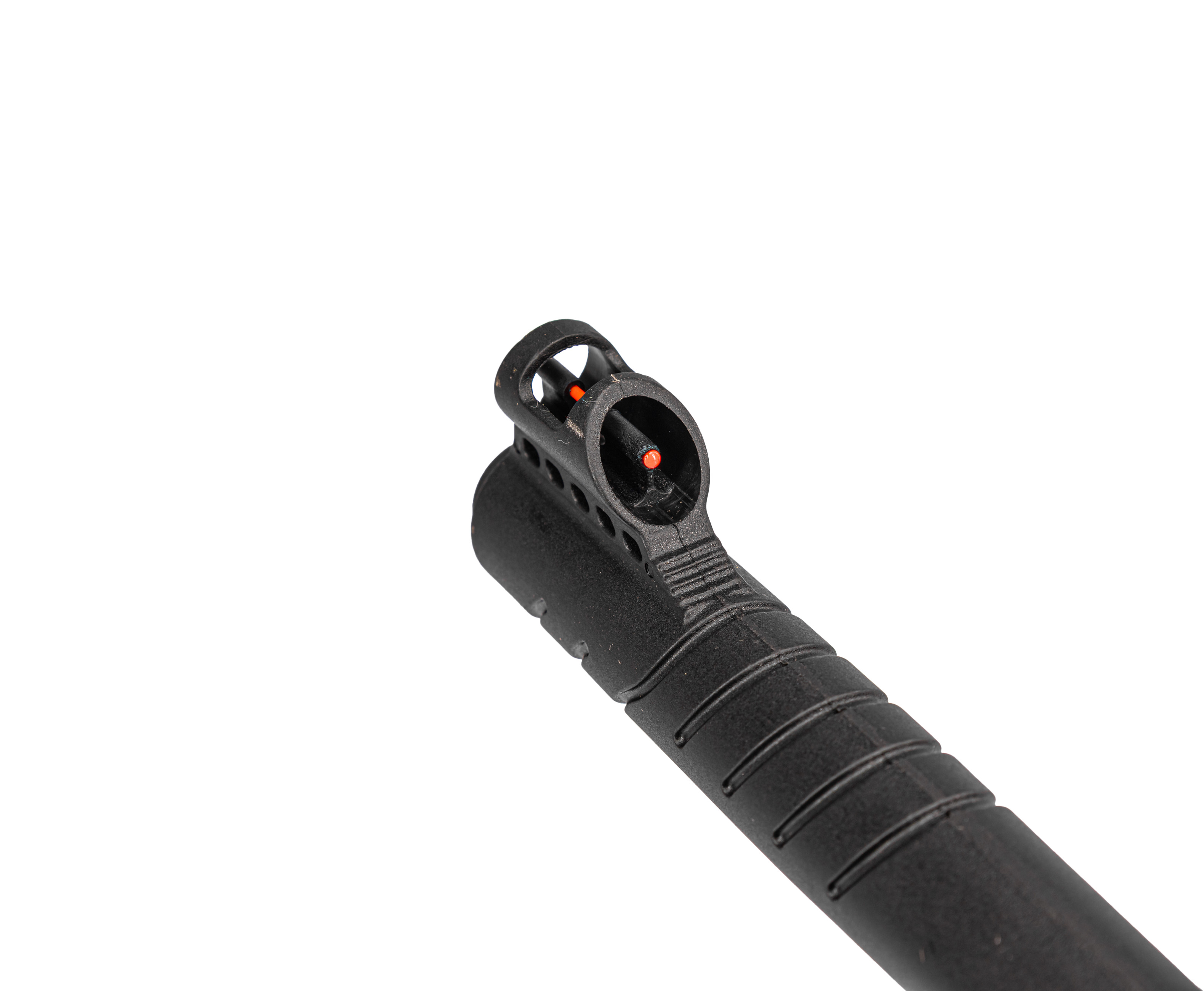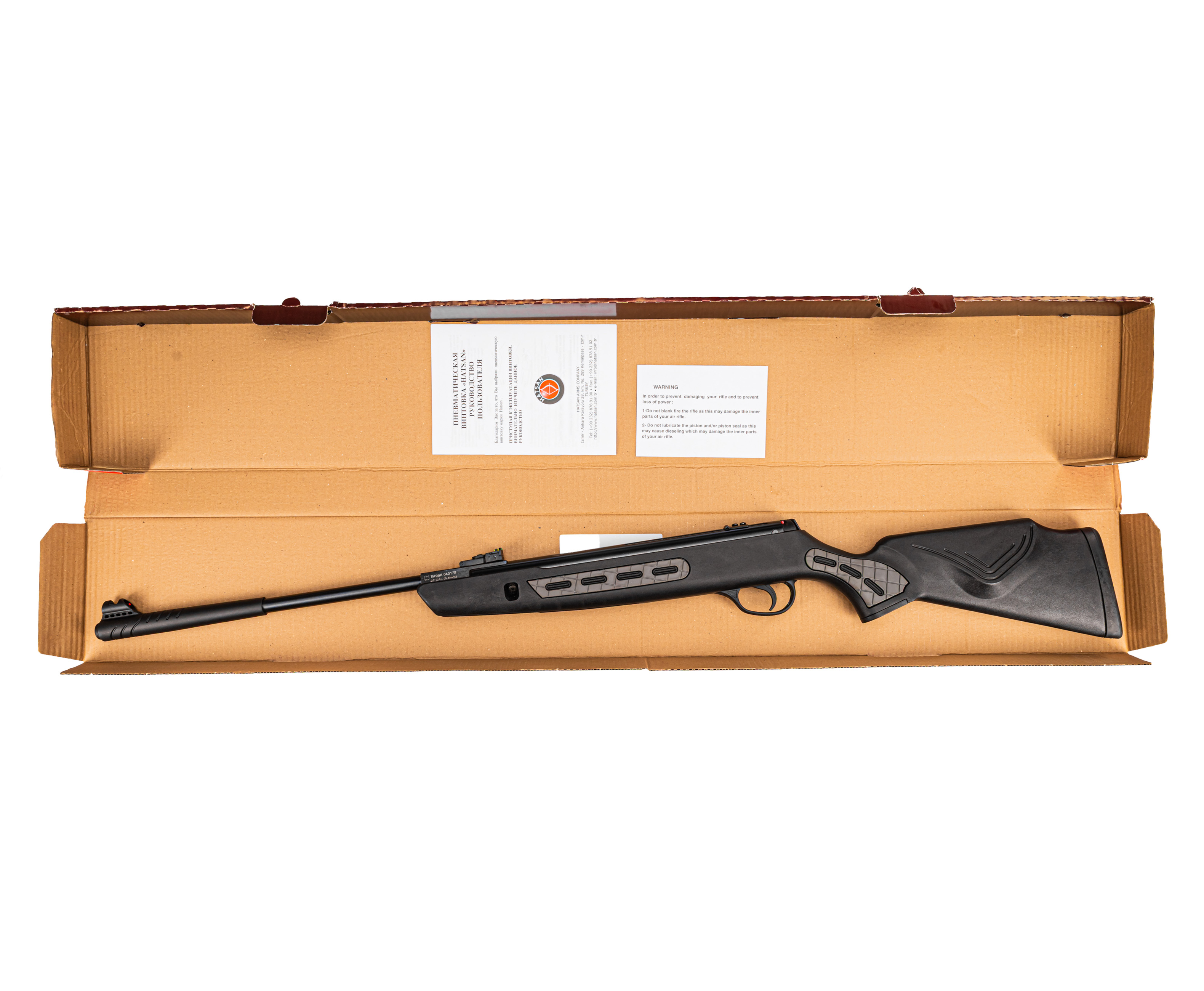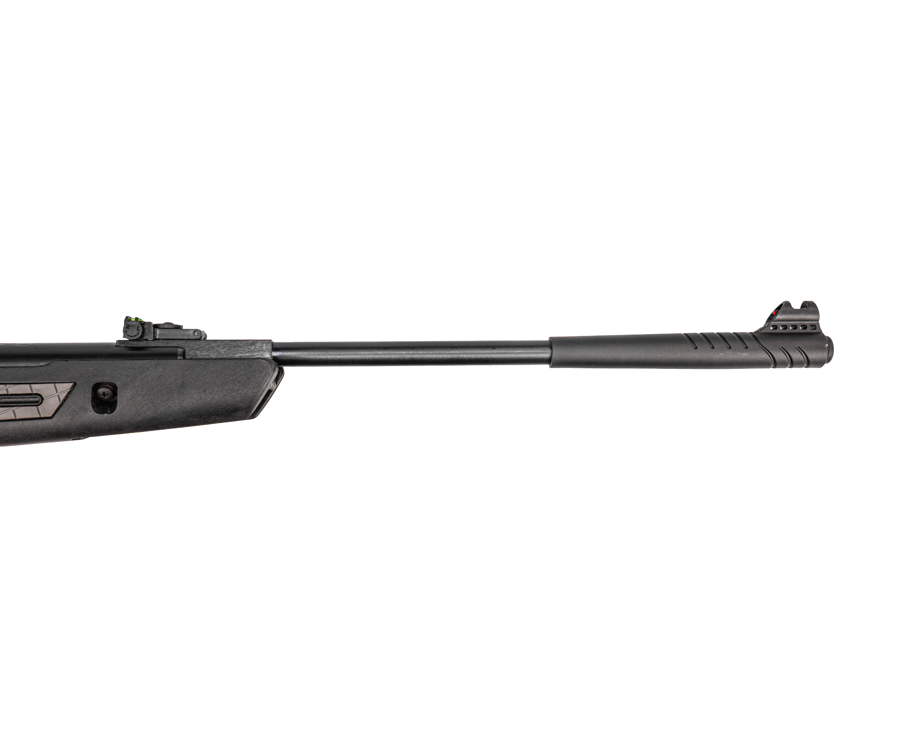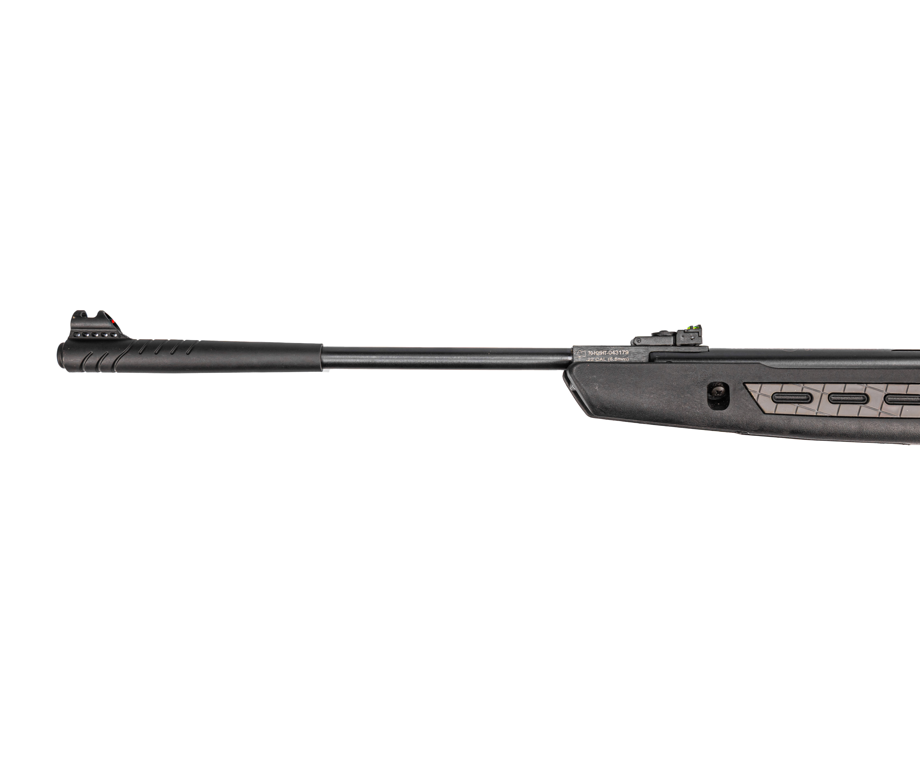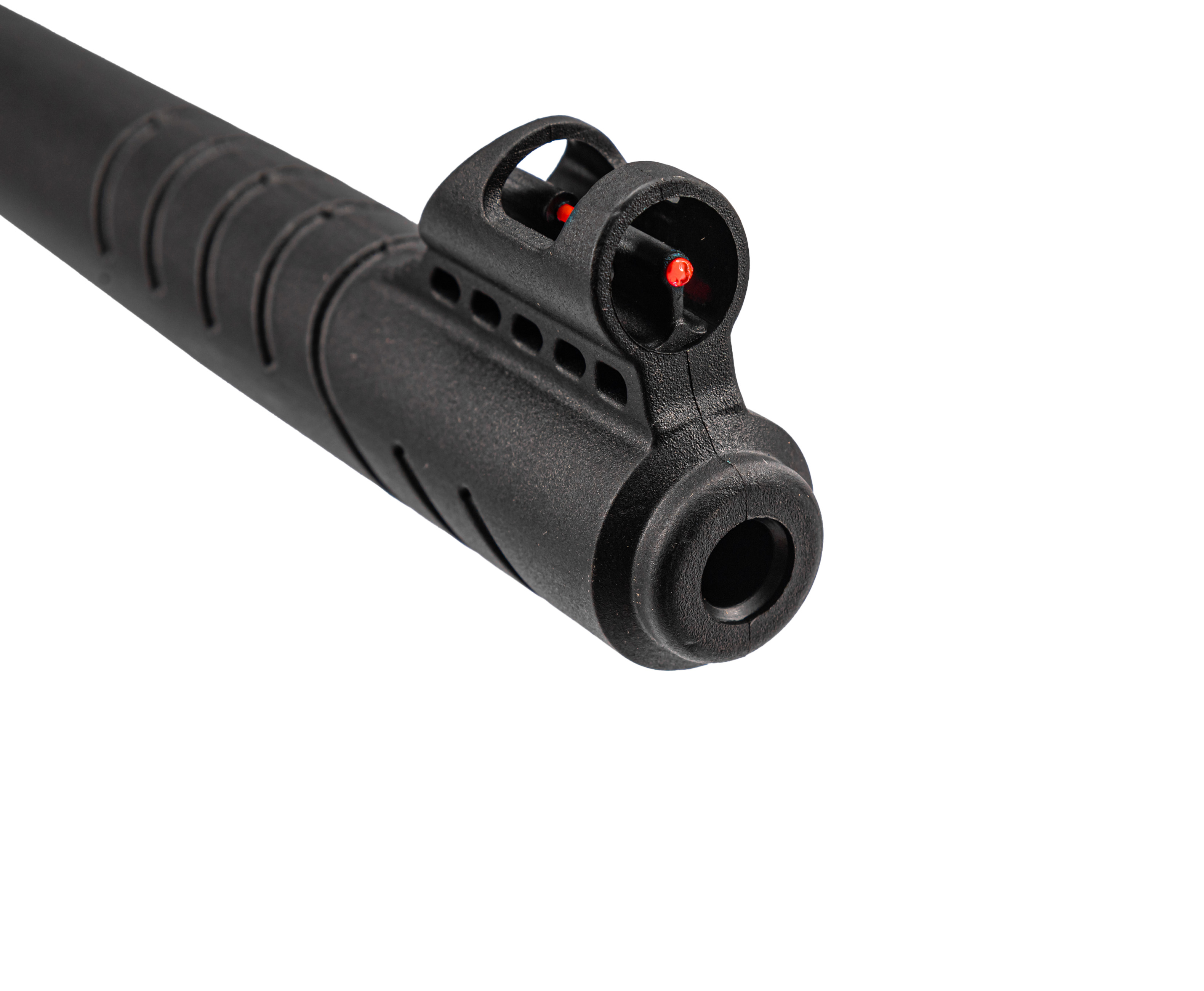 Ствол Хатсан 5.5 мм калибра и длиной 450 мм выполнен с нарезами, придающими настильную траекторию полета и плотную кучность. Диаметр подходит как для бумажных мишеней, так и для работы по легким металлическим целям.