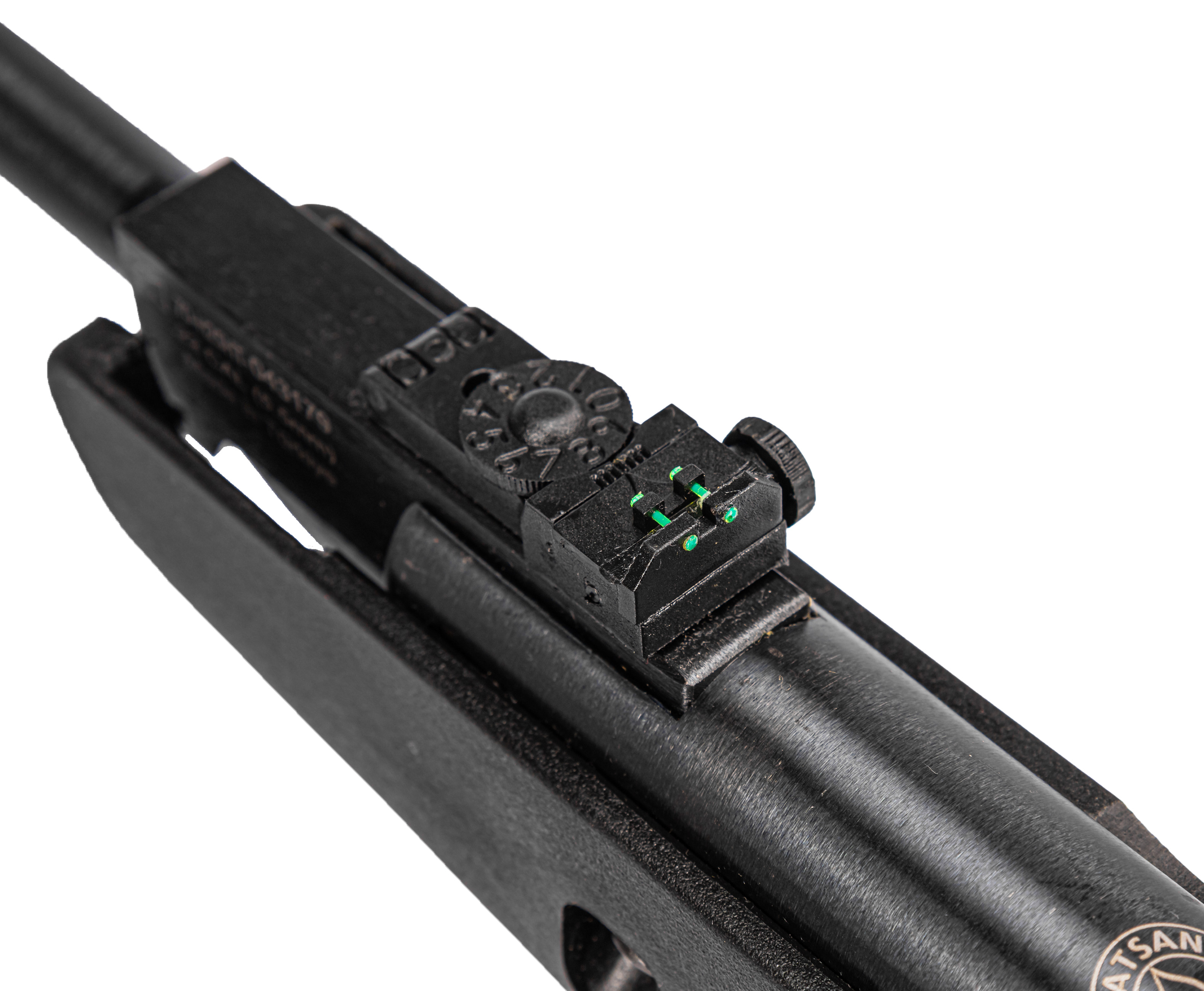 Для комфортного наведения на Хатсан предусмотрена механическая прицельная линия. Открытые приспособления включают мушку с капюшоном и регулируемый целик, оба элемента оснащены волоконно-оптическими вставками. Они дают яркую контрастную точку, которая облегчает нацеливание в условиях недостаточной освещенности.