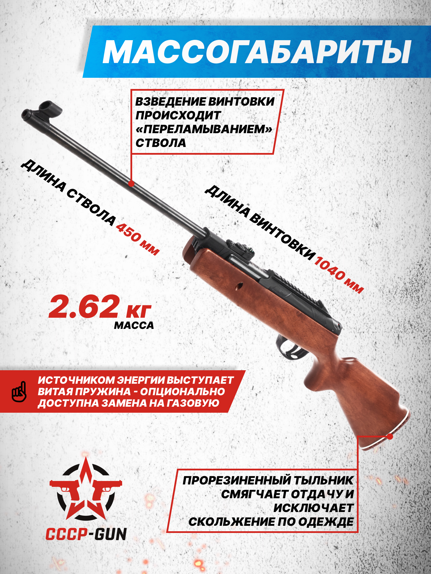 Стоит отметить, что перед выстрелом изделие требуется взвести, переломив ствольный бланк для зарядки снаряда в открывшийся отсек и вернув конструкцию в исходное положение. Благодаря такой системе, не требующей дополнительных расходников, пневматика становится автономным и экономичным изделием. Максимальная скорость полета пули после возвращения винтовки к заводским параметрам будет составлять порядка 250 метров в секунду.