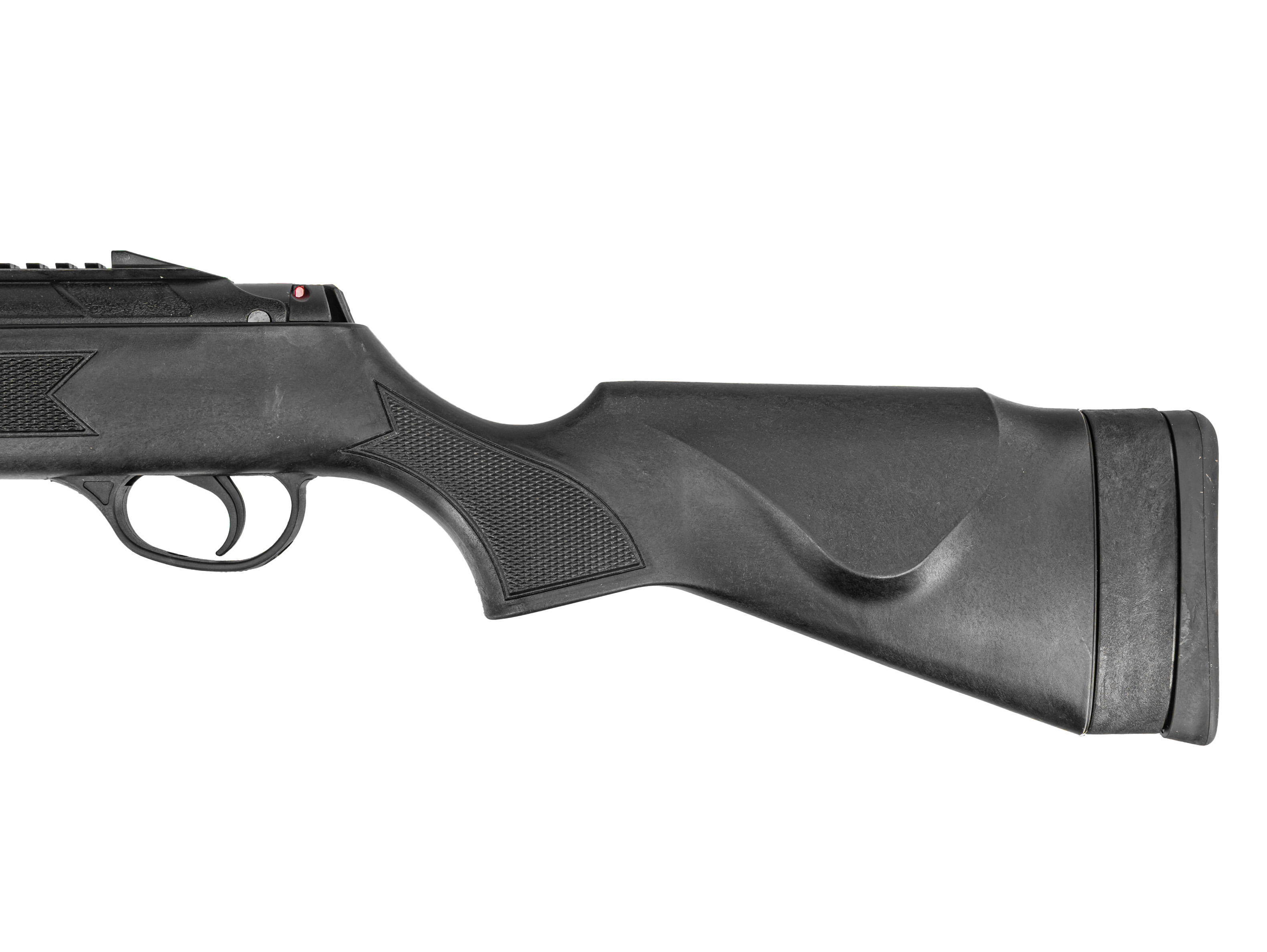 Ложе выполнено из ударопрочного полимера с устойчивостью к температурным и механическим повреждениям. Тыльник приклада Монте-Карло оснащен амортизирующей резиновой накладкой, снижающей отдачу и повышающей комфорт при стрельбе. Его конфигурация обеспечивает легкую вкладку при прицеливании как с открытых, так и с оптических приспособлений.