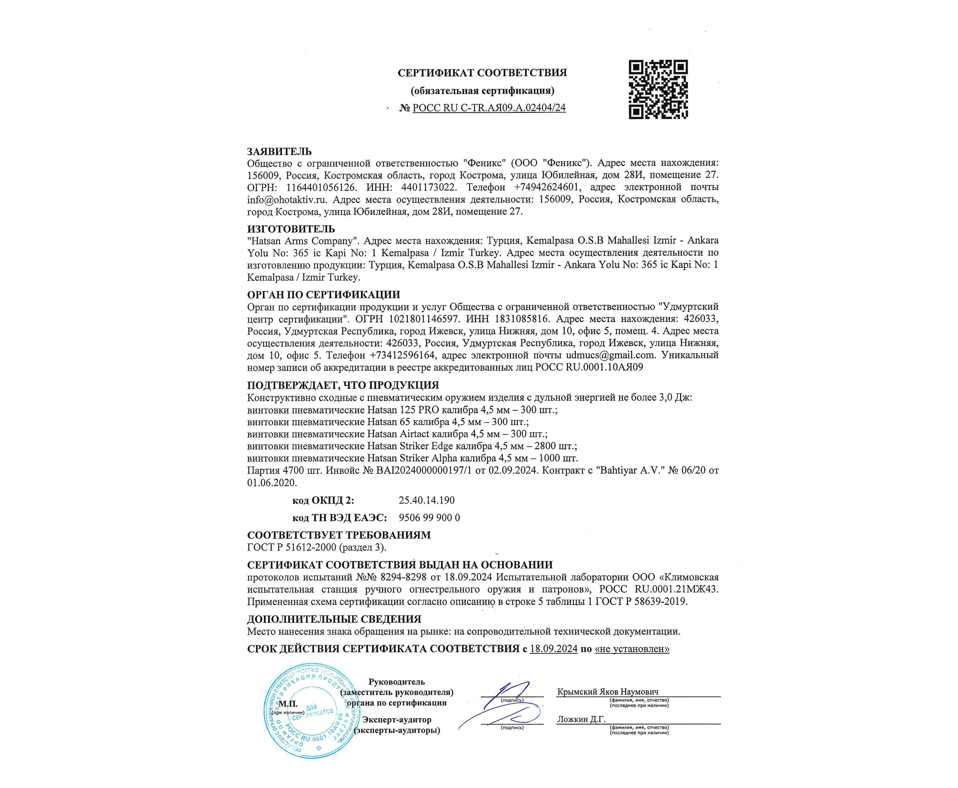 Заявленная производителем начальная скорость свинцового снаряда может достигать 305 метров в секунду, гарантируя поражение целей на значительном удалении. Однако требуется подчеркнуть, что рассматриваемая воздушка Hatsan подверглась конструктивной адаптации - мощность дульной энергии намеренно ограничена до разрешенных законодательством 3 Джоулей. Такое решение снимает необходимость оформления разрешительных документов при покупке.