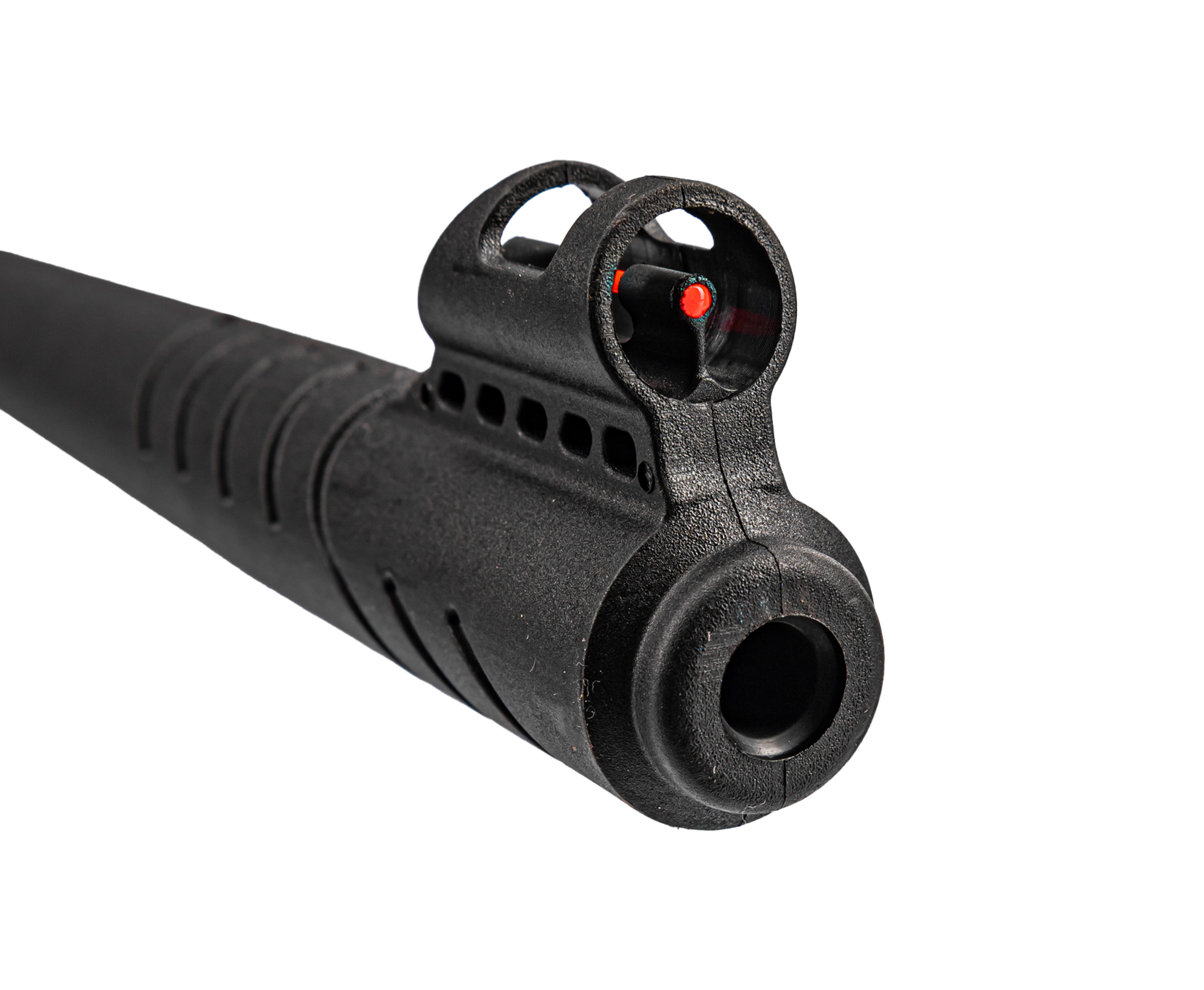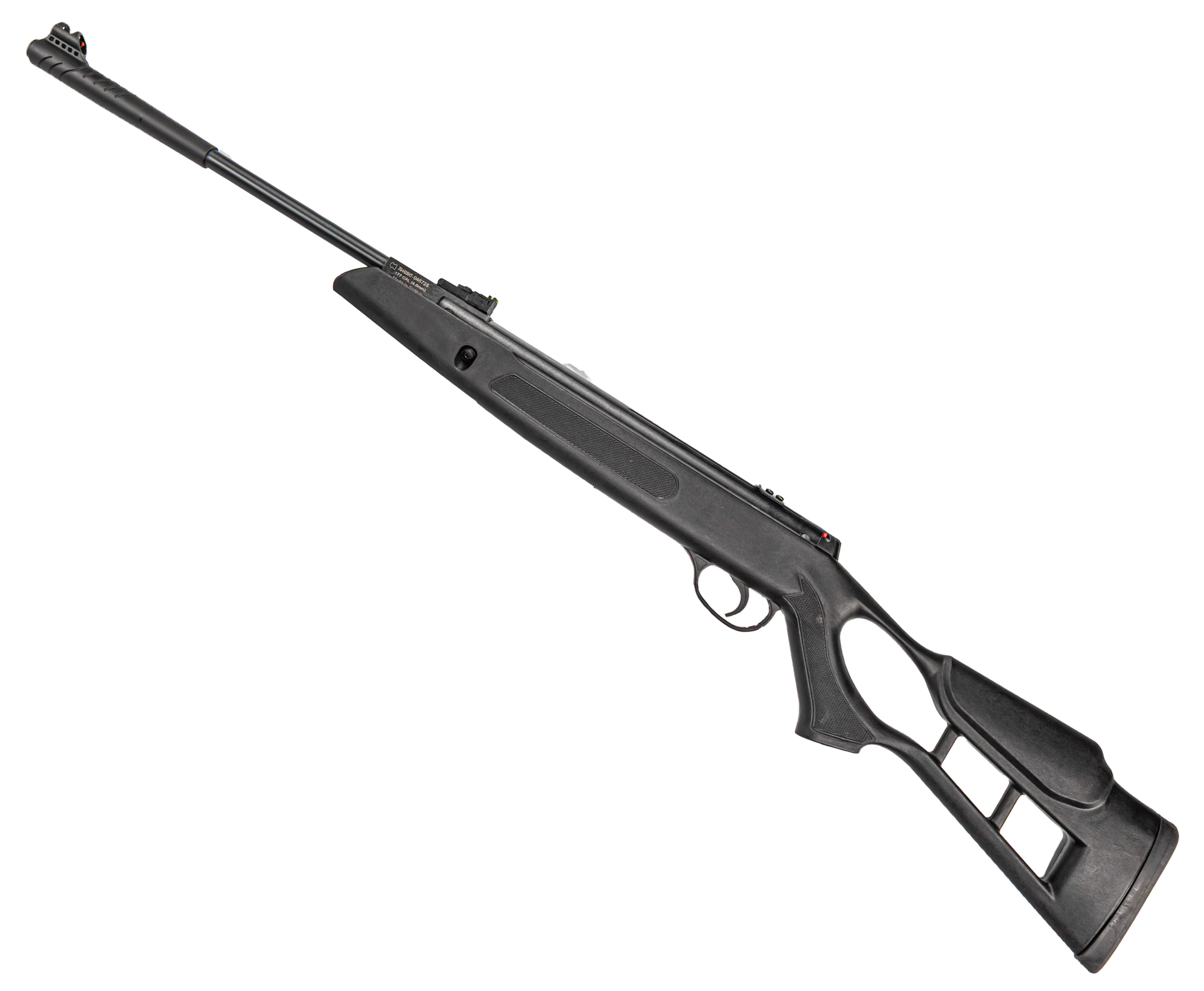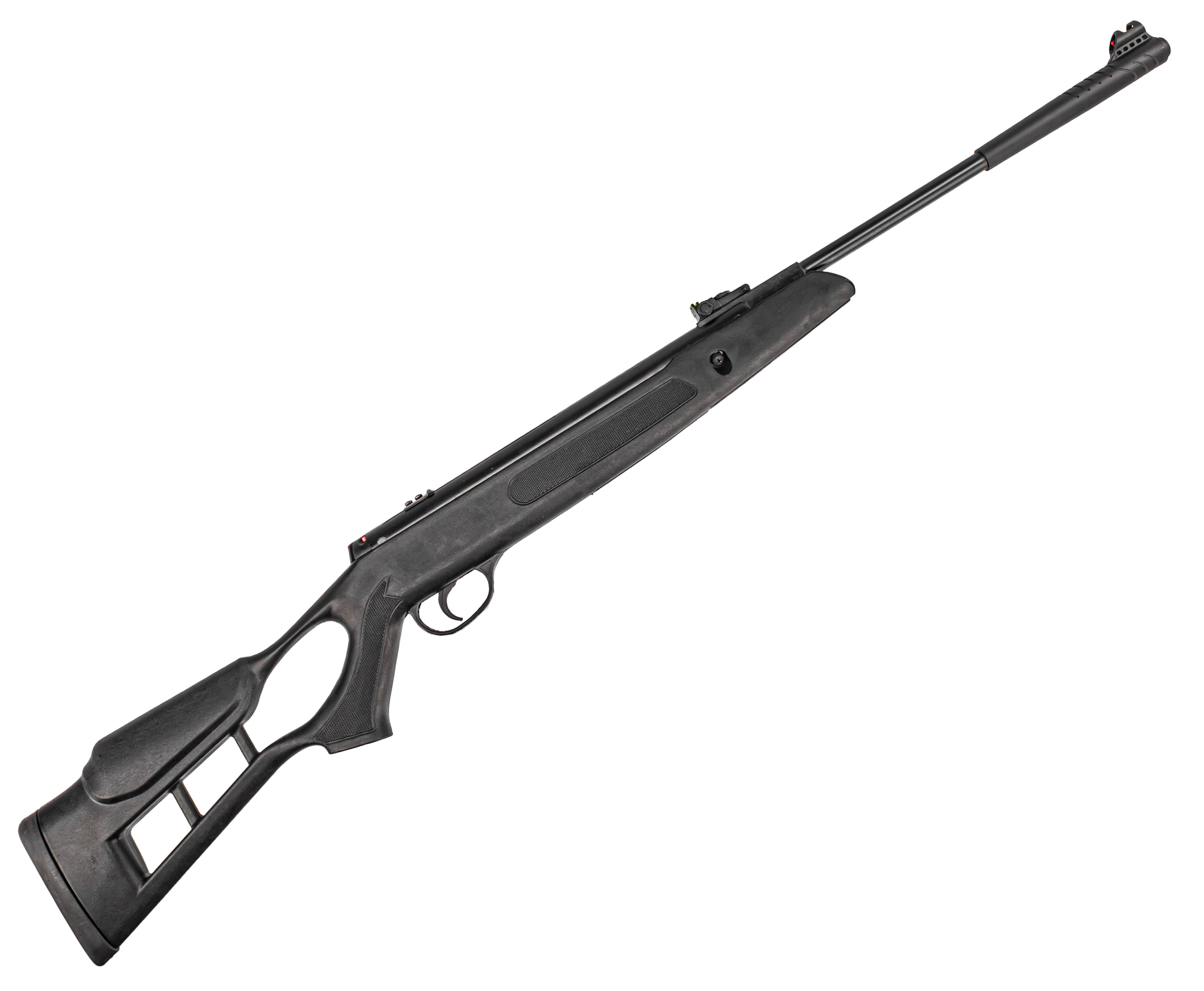 Пневматика Хатсан Страйкер Эйдж предусматривает облегченный приклад с прорезиненным тыльником - такой компонент эффективно демпфирует импульс отдачи, передаваемый на корпус стрелка, обеспечивая комфорт даже при продолжительной стрельбе сериями. Ложа образца изготовлена из черного полимерного материала - вес изделия составил 3 килограмма.