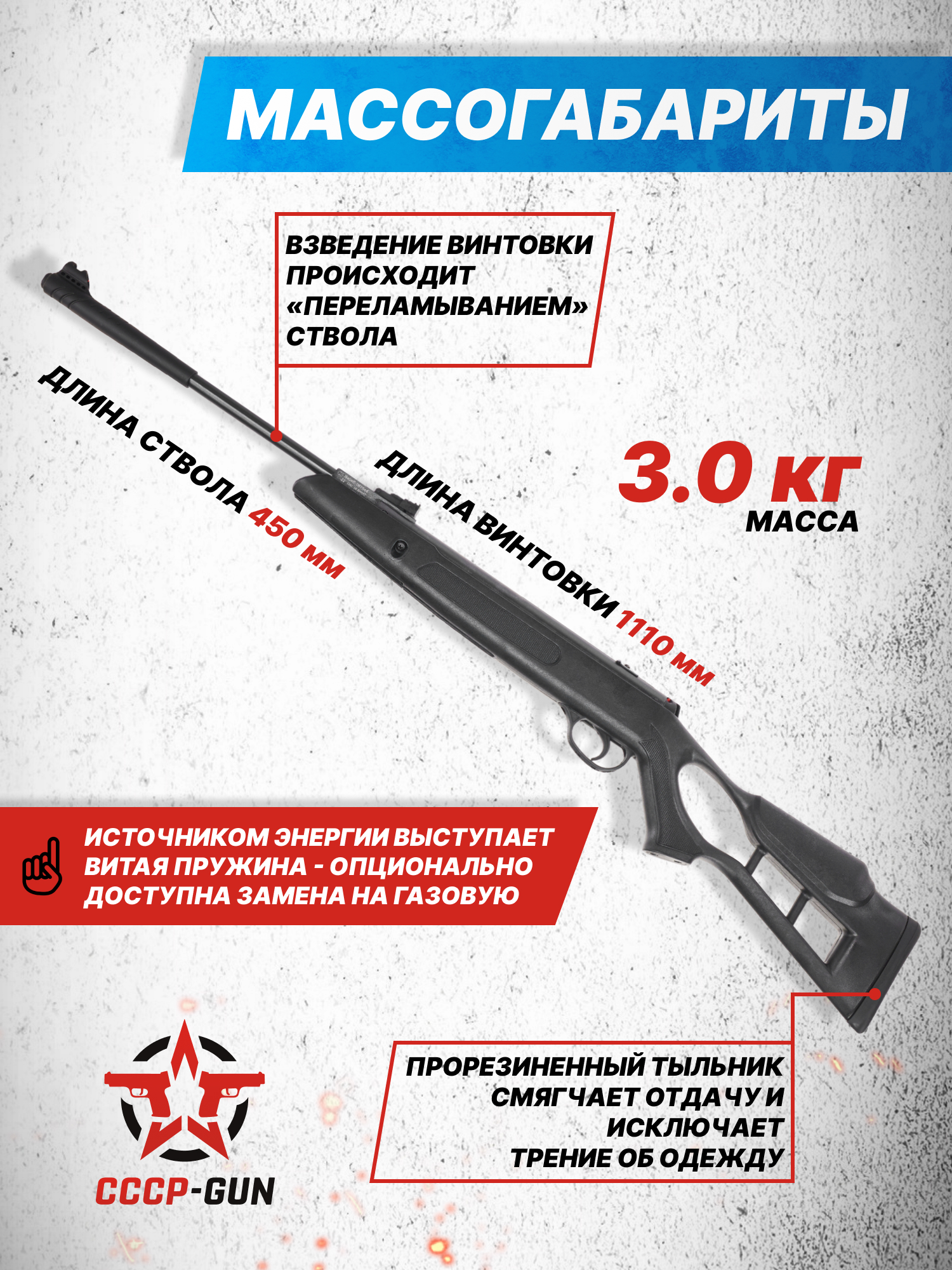 Общая длина экземпляра составляет 1110 мм, при этом вес модели находится на уровне 3 килограммов. Балансировка винтовки позволяет вести стрельбу с рук, не испытывая лишнего напряжения. Конструкция хорошо подходит для тех, кто ищет надежную базу для дальнейших улучшений.