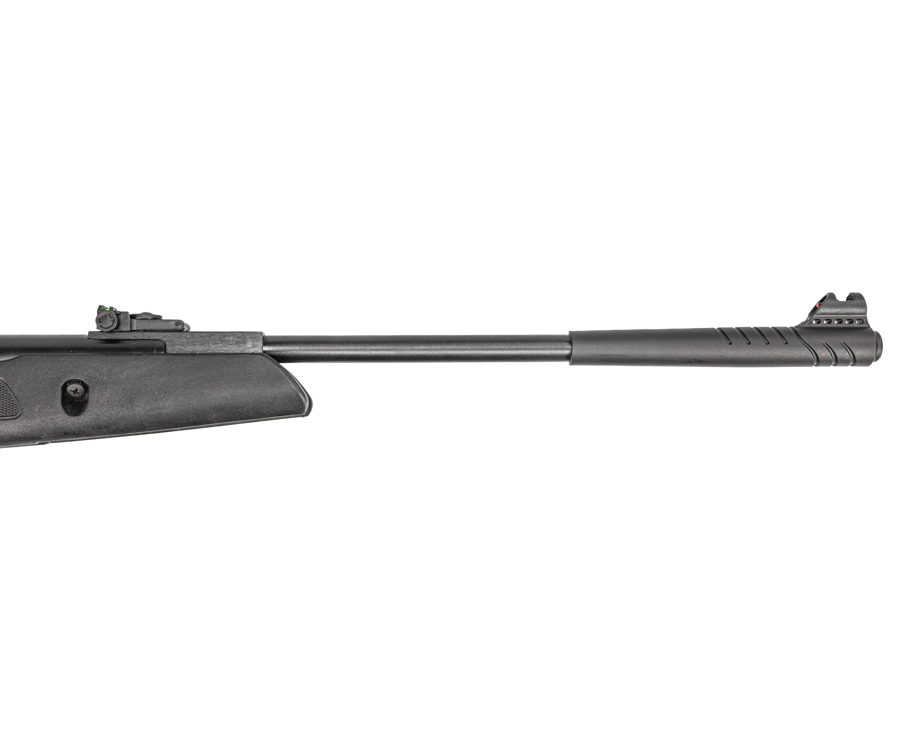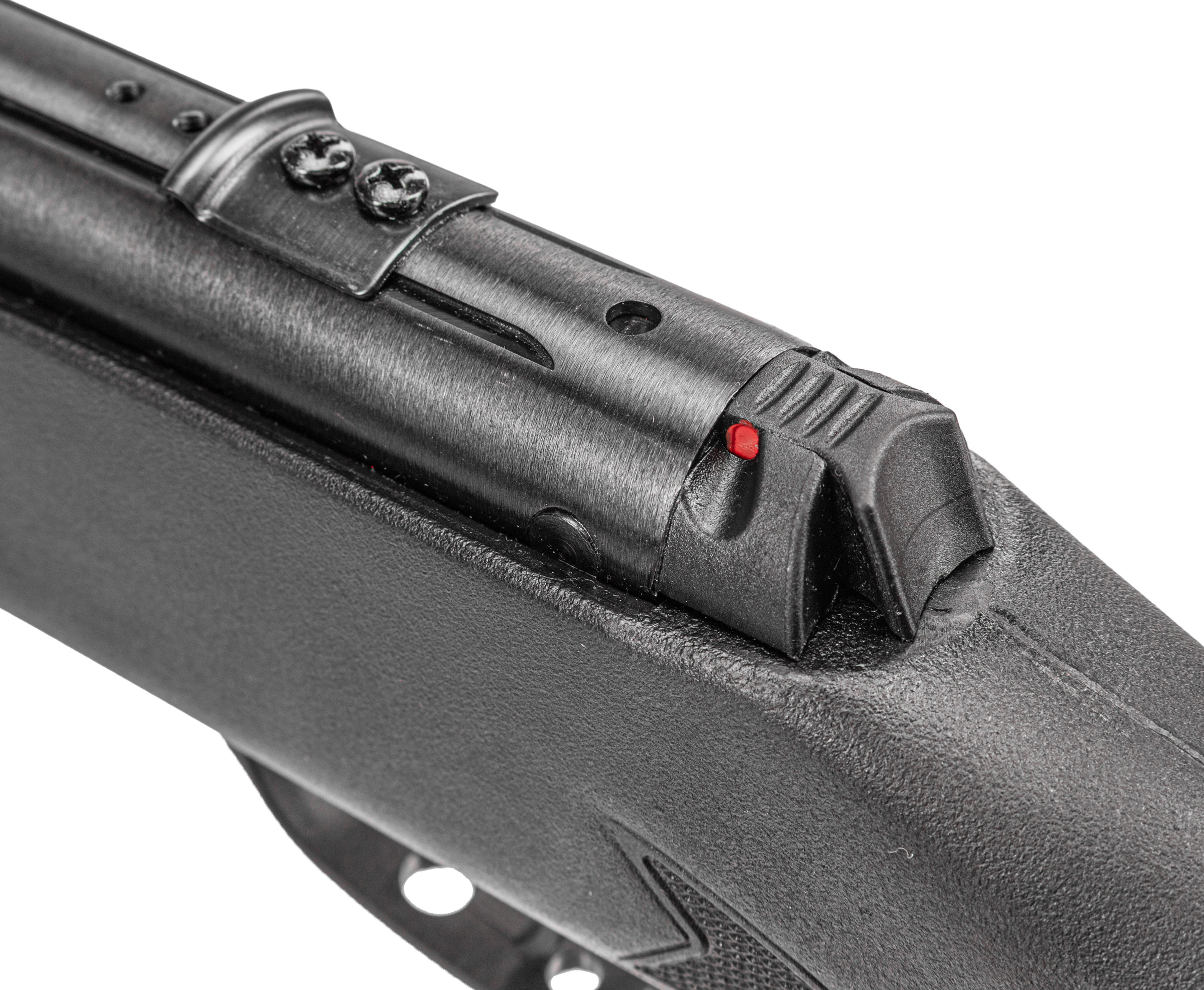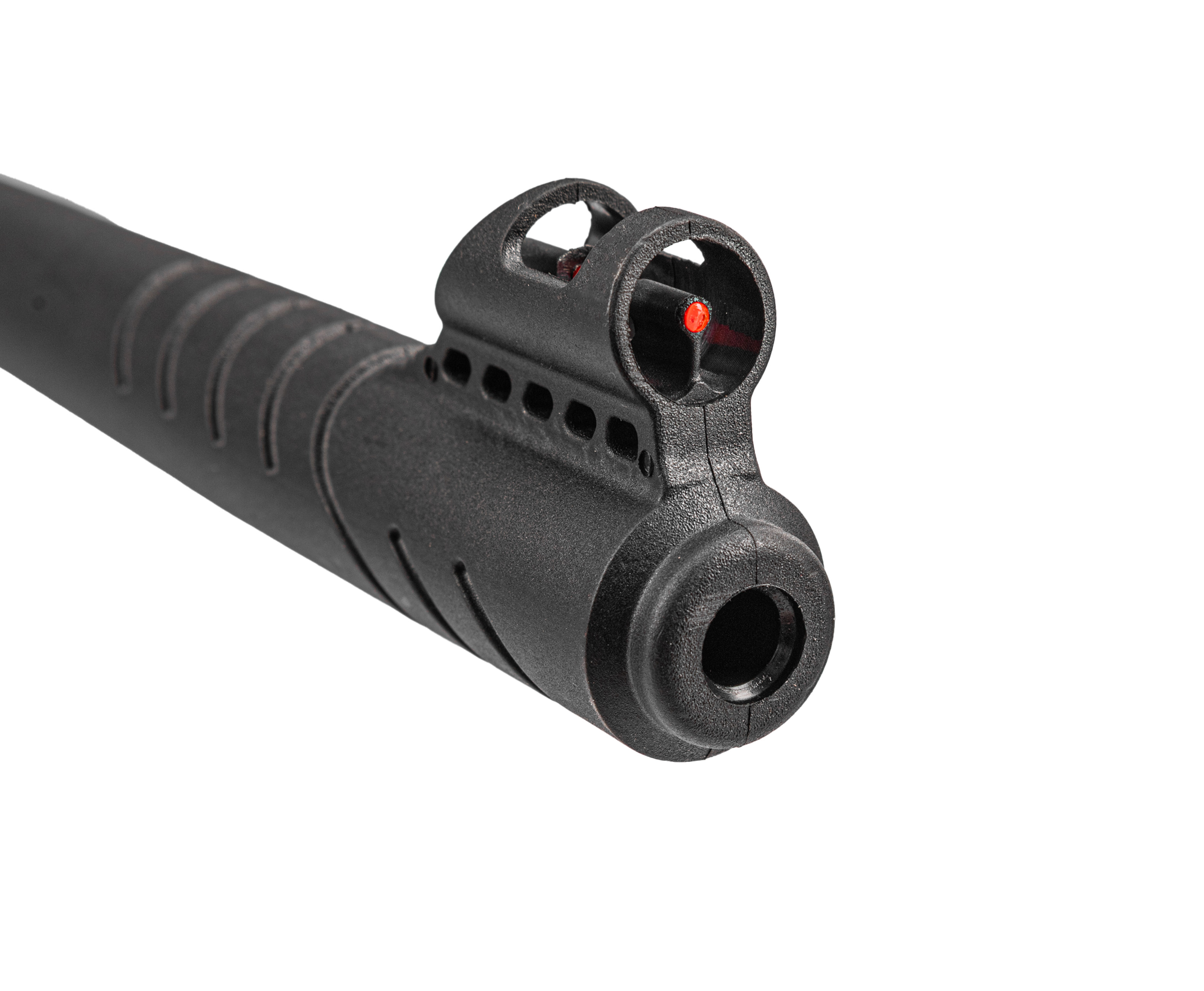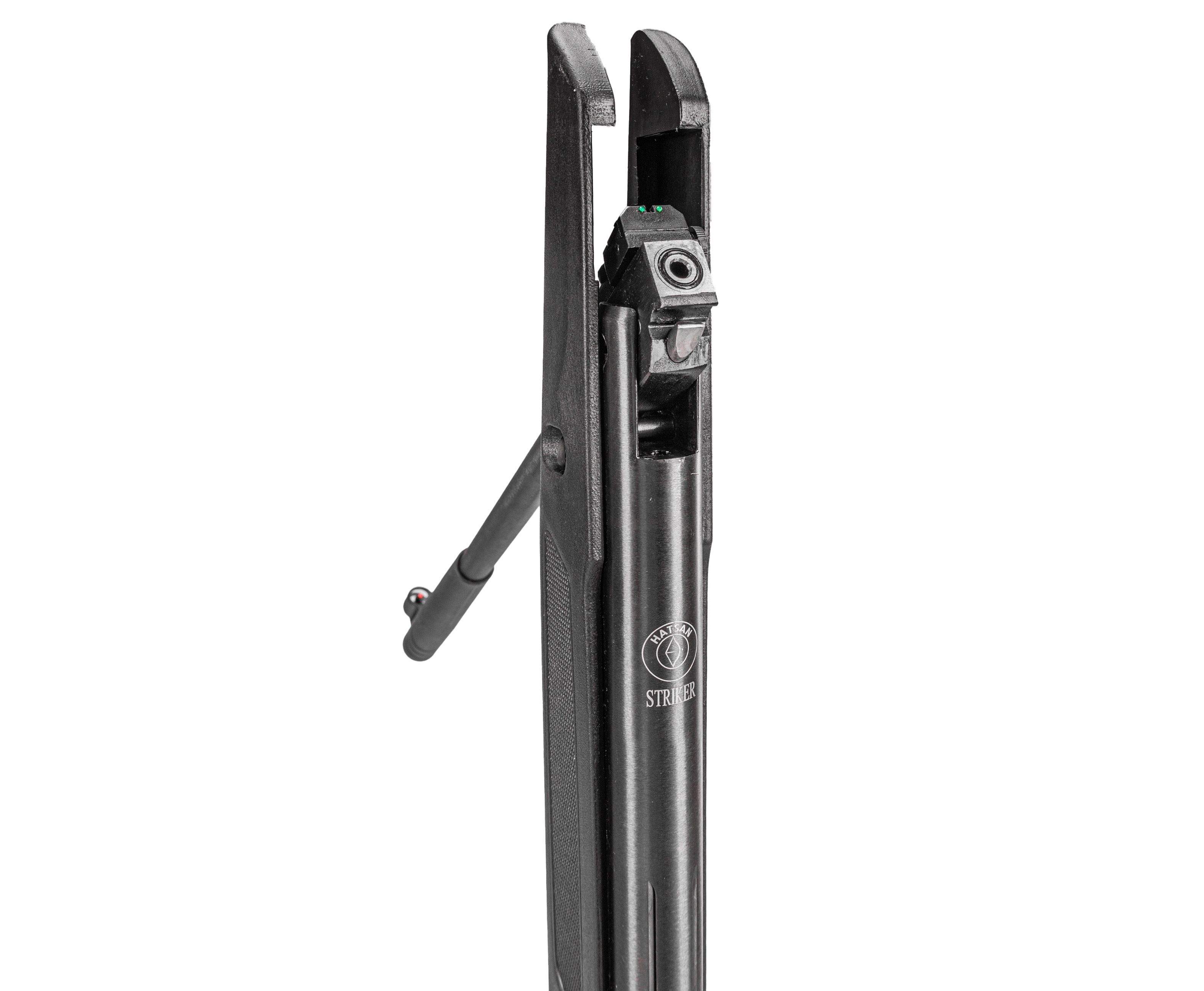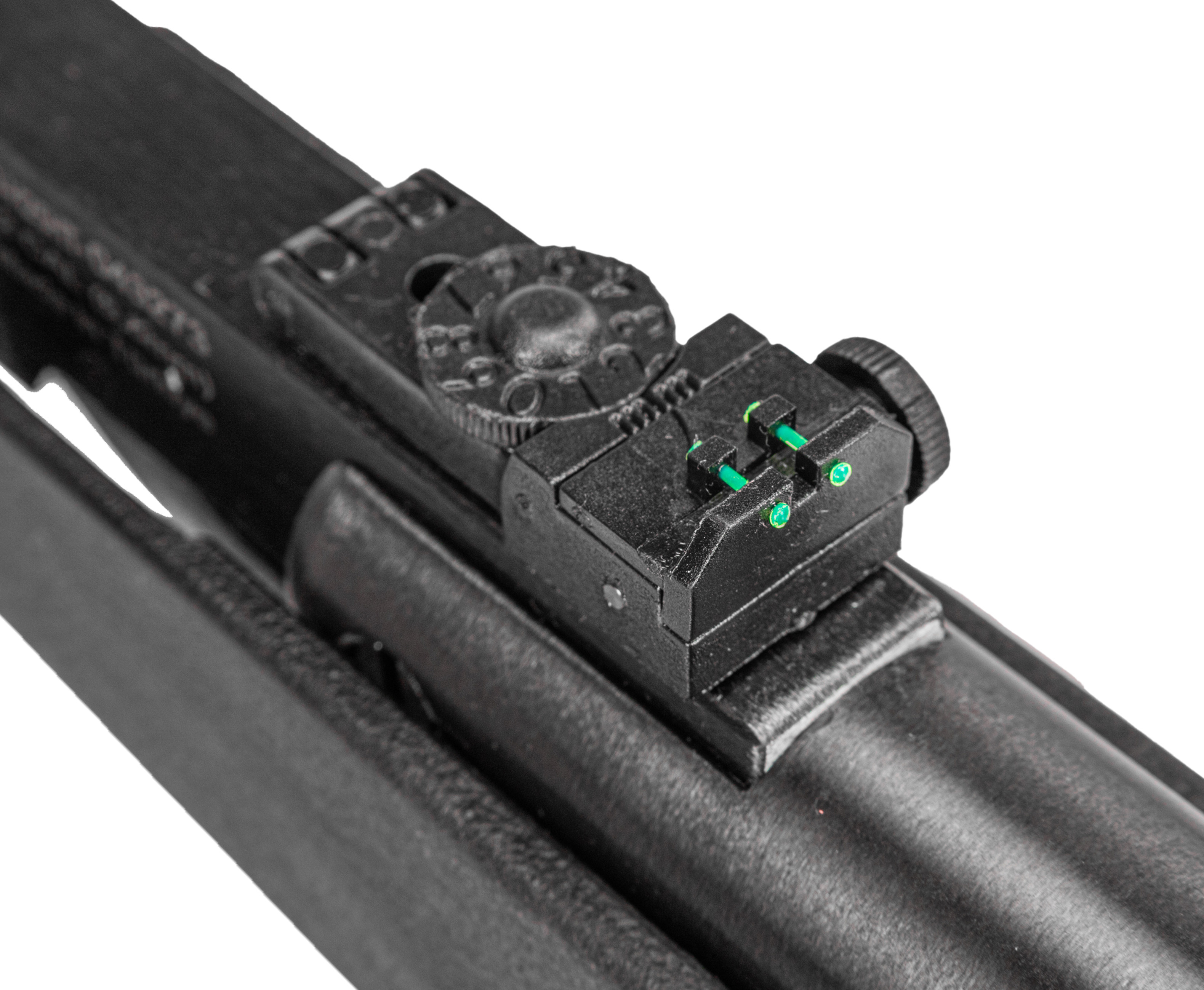 Пневматическая винтовка Hatsan Striker Edge 5.5 мм комплектуется открытыми прицельными приспособлениями. Мушка с защитным капюшоном и регулируемый целик оборудованы волоконно-оптическими вставками, обеспечивающими хорошую видимость даже в сумерках. Такая система наведения позволяет уверенно стрелять без оптики на ближних и средних дистанциях.