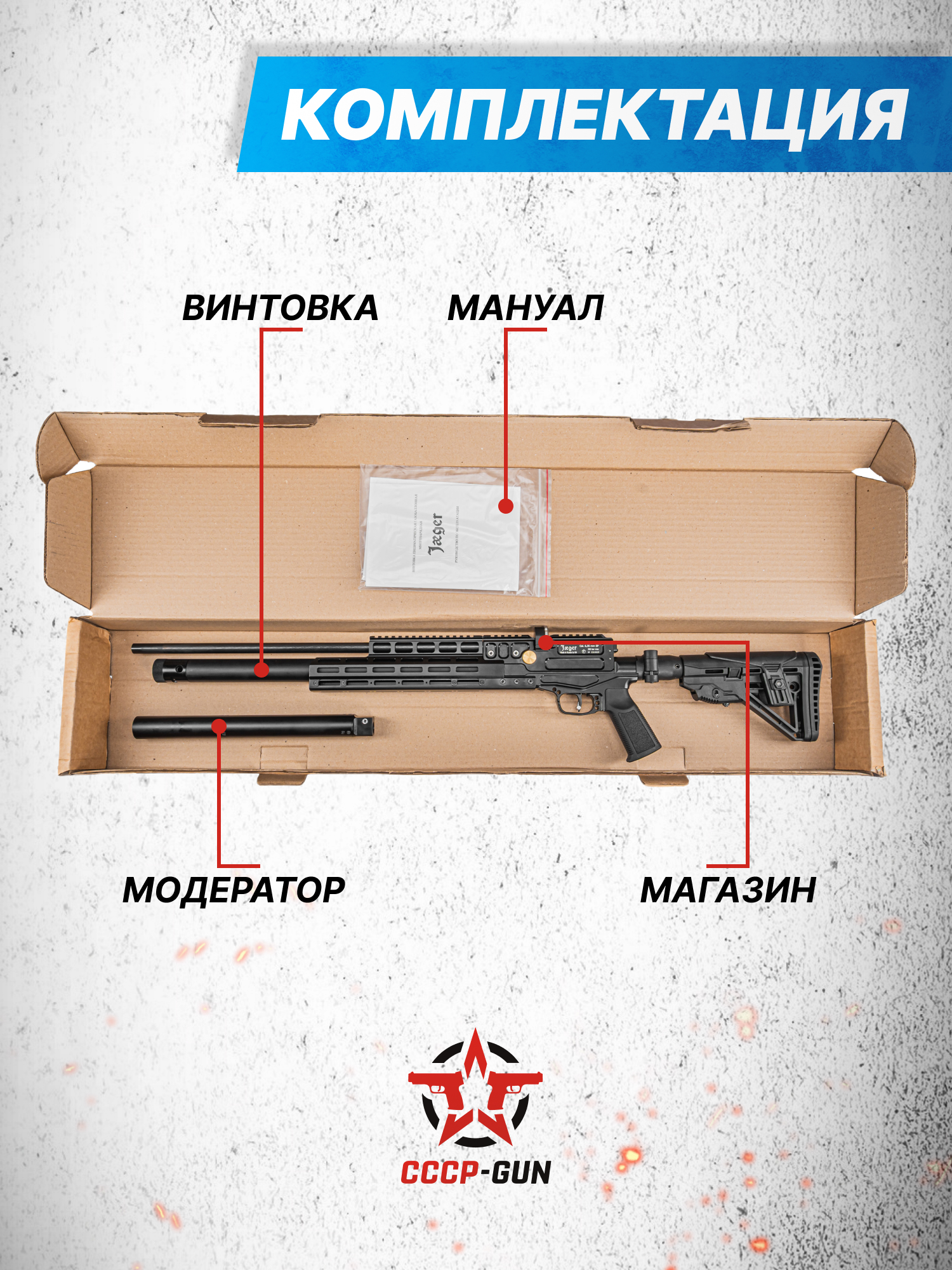 Внимание! Данная модель поставляется в разрешенной мощности для свободного приобретения на территории Российской Федерации. При этом в модели имеется возможность увеличения мощности путем замены части деталей или настройки конструкции, однако не стоит забывать о Федеральном законе «Об оружии» № 150 - ФЗ. В случае необходимости, опираясь на данный закон и руководствуясь им, возможно, потребуется получить разрешение от ЛЛР ГУ МВД России после вмешательства в конструкцию.