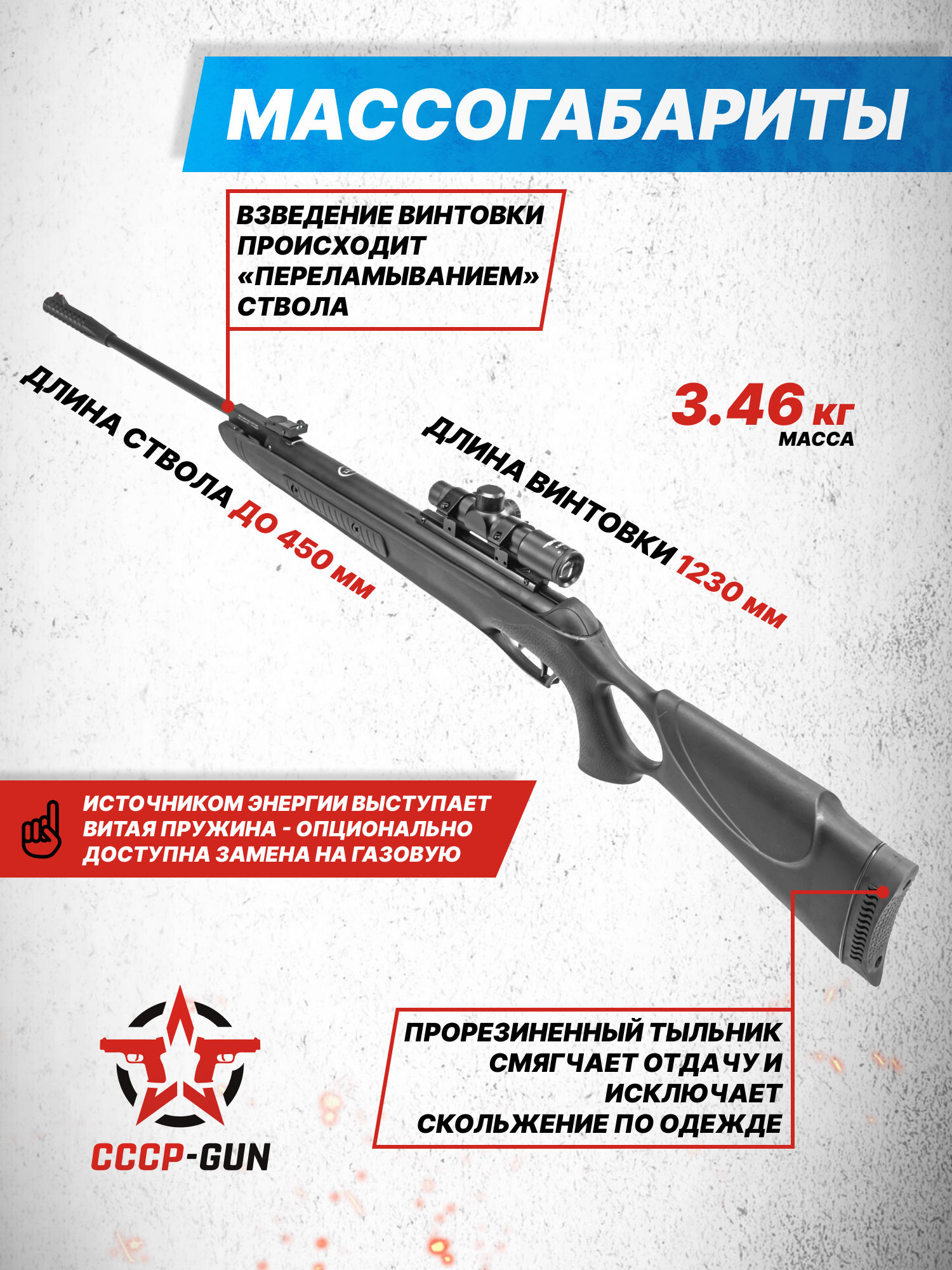 Внимание! Данная модель поставляется в разрешенной мощности для свободного приобретения на территории Российской Федерации. При этом в модели имеется возможность увеличения мощности путем замены части деталей или настройки конструкции, однако не стоит забывать о Федеральном законе «Об оружии» № 150 - ФЗ. В случае необходимости, опираясь на данный закон и руководствуясь им, возможно, потребуется получить разрешение от ЛЛР ГУ МВД России после вмешательства в конструкцию.